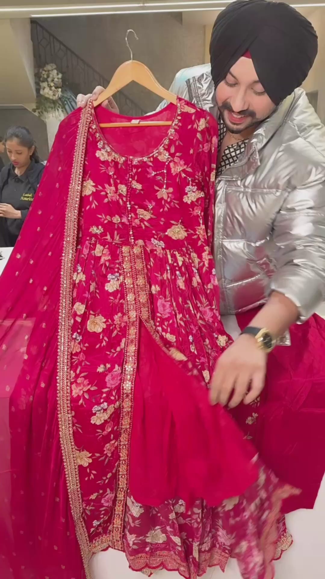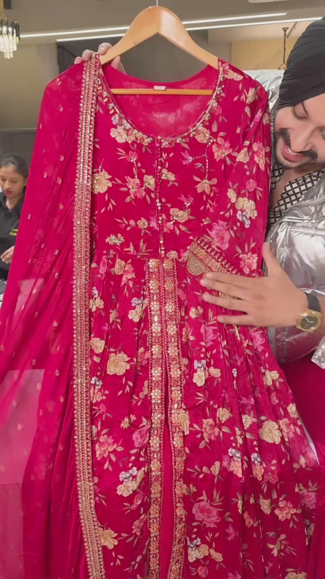 Anaari Pink Chinon Front slit Anarkali suit with Beautiful Duppata