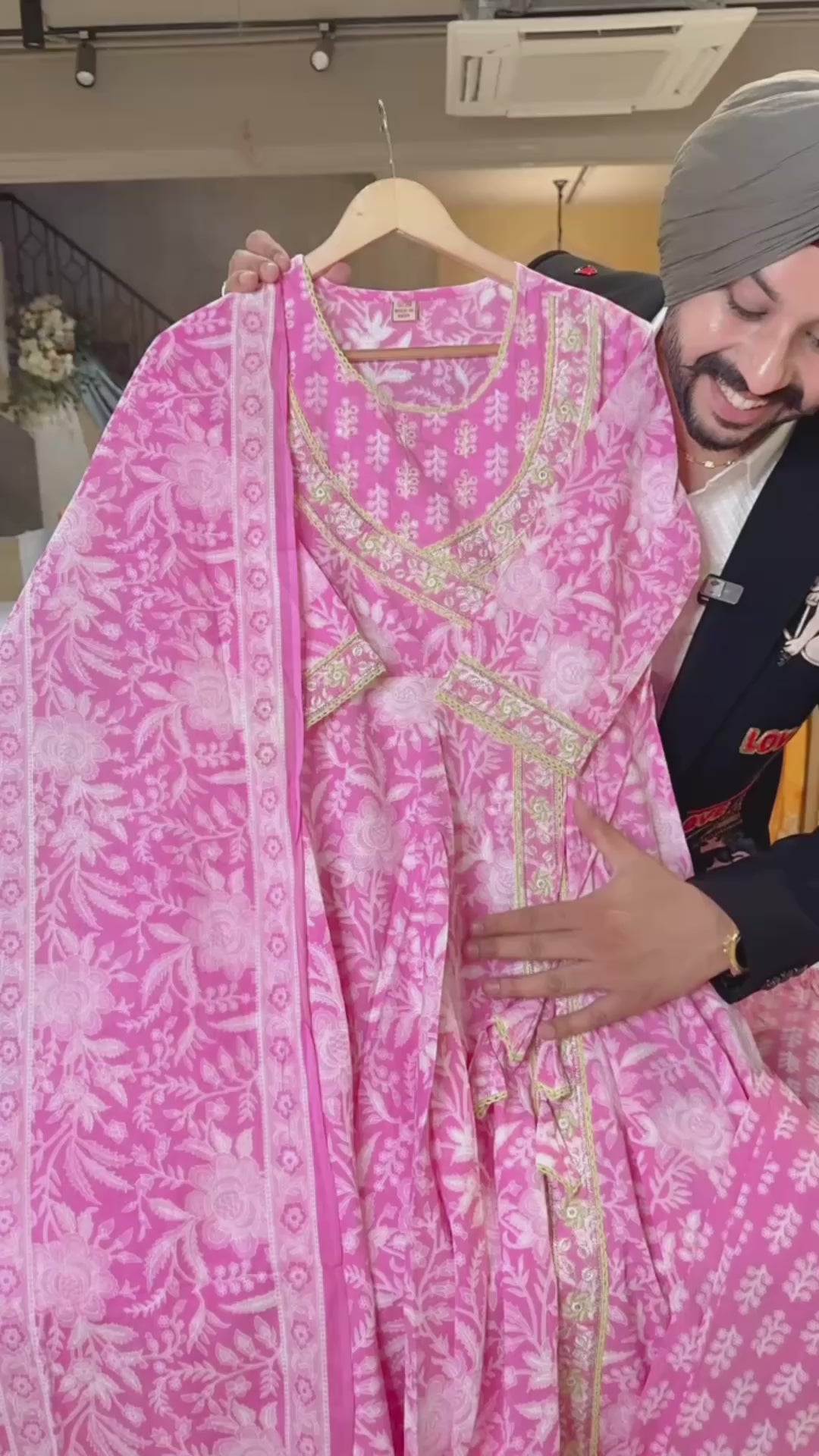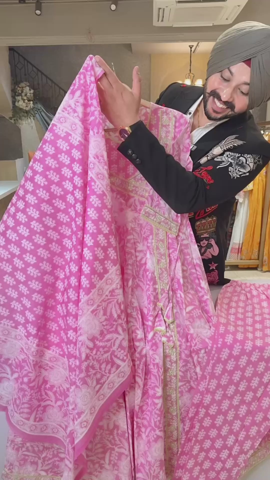 Rose pink Pure Cotton Embroidered Angrakha Full Flair Anarkali suit with Beautiful Dupatta