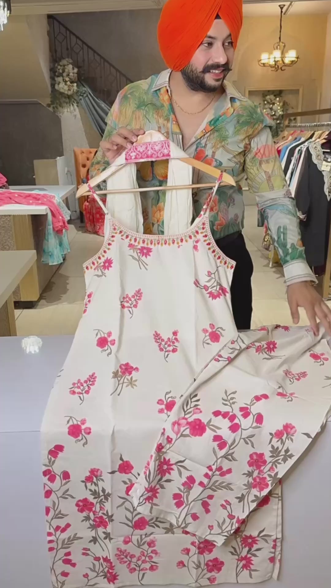 Off white & pink Soft khaadi Noodle Sleeves Indowestern Suit with Sleek Necklace Duppata