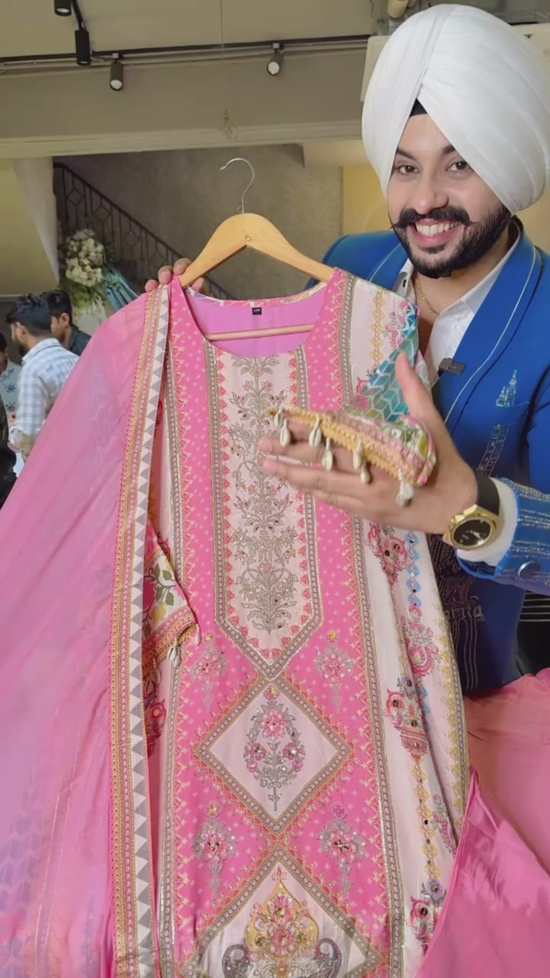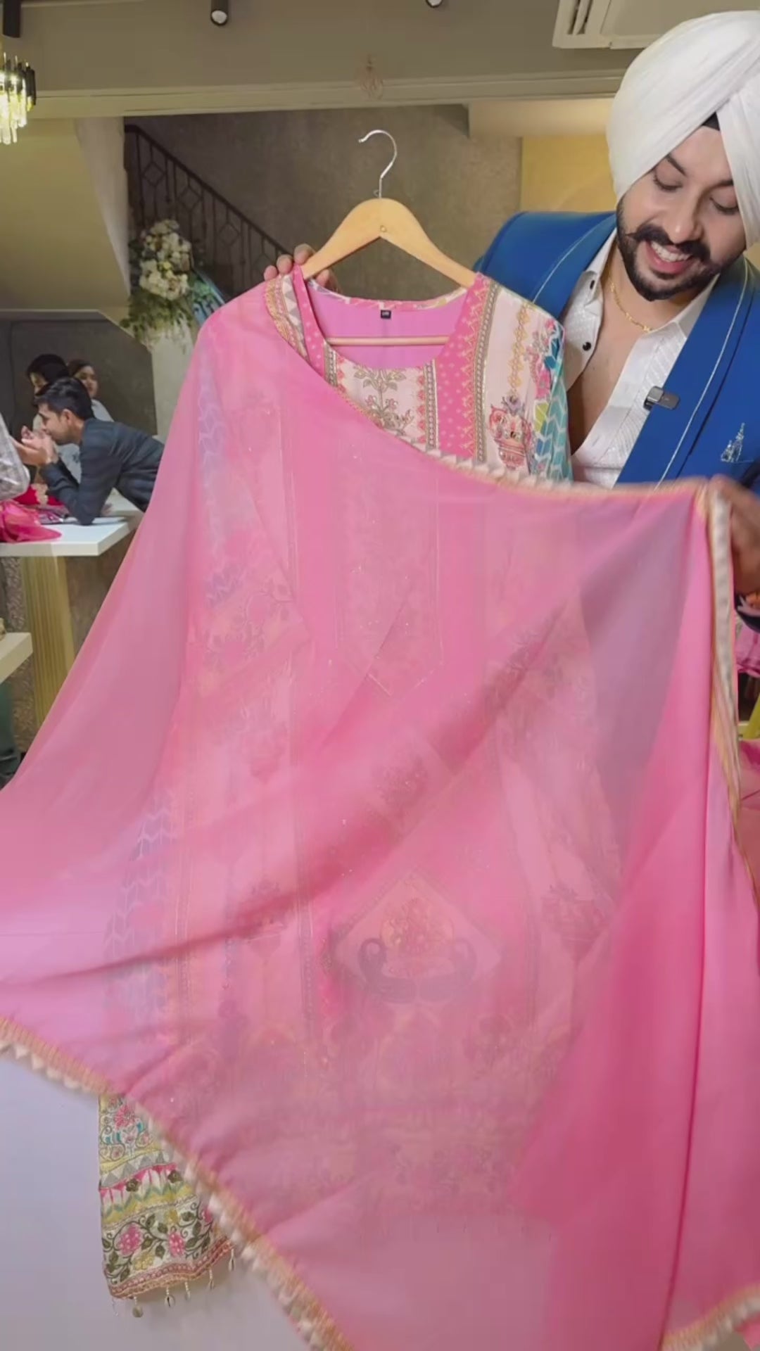 Pastel Pink Soft Crepe Heavy embroidered & Shell Hangings A-line Suit with Chiffon Duppata