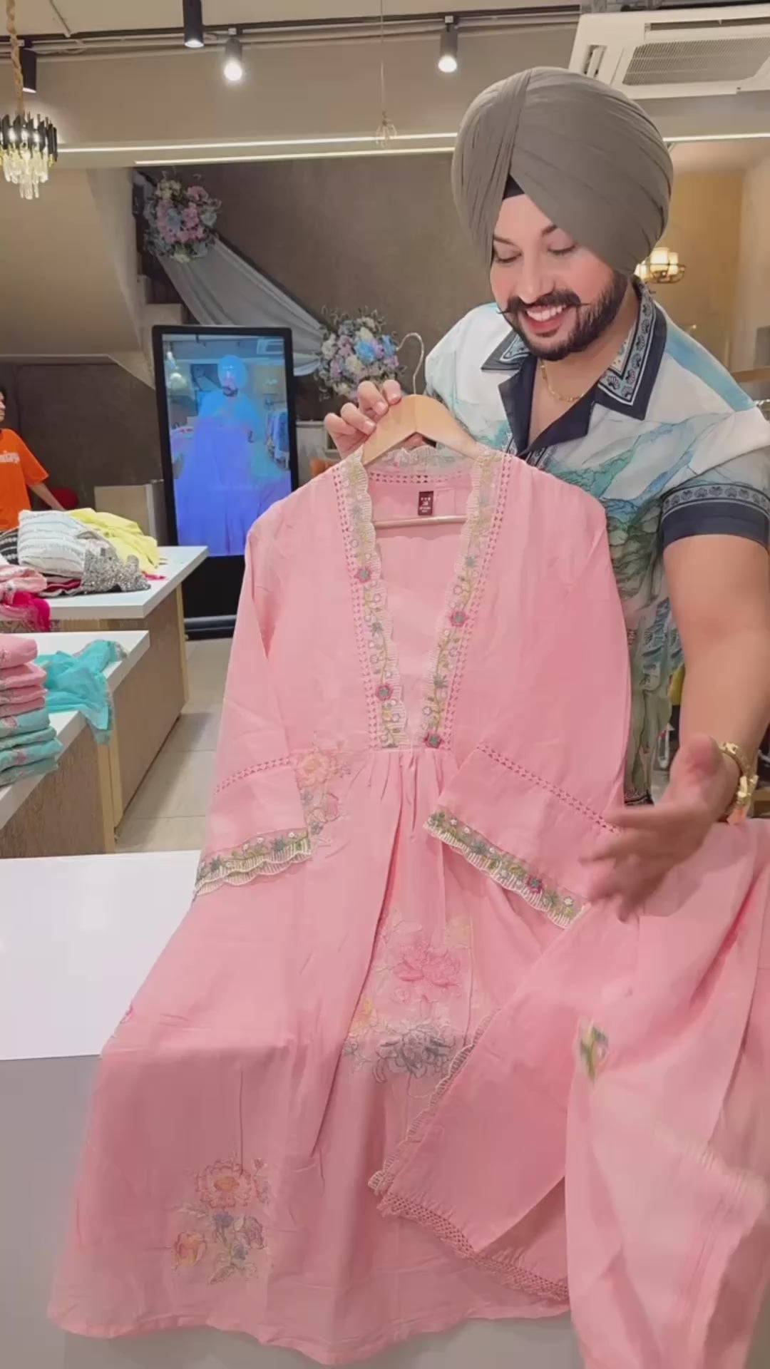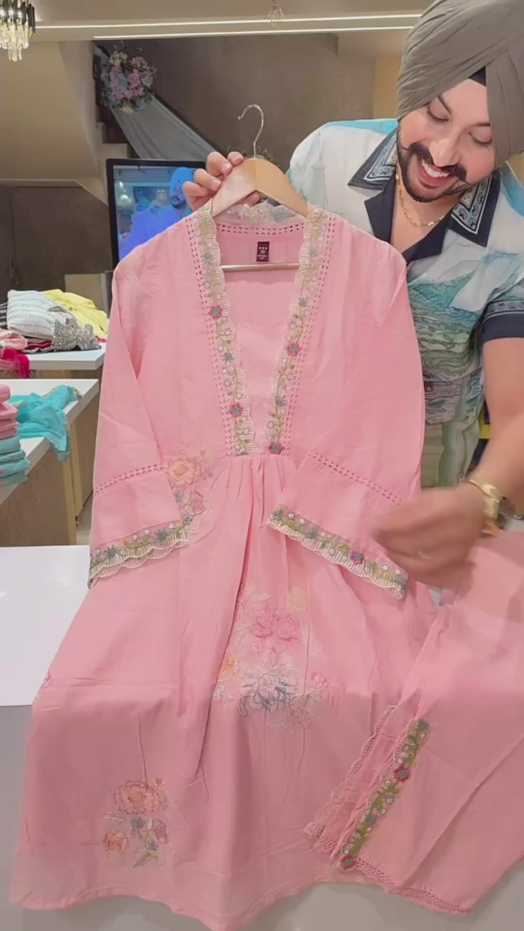Light pink Mal Cotton Embroidered Coord set with Side Slit pants