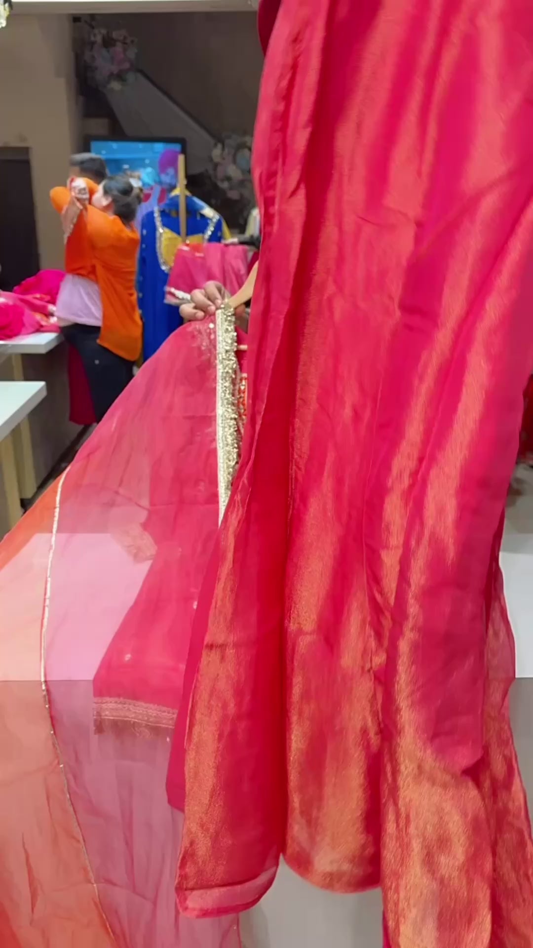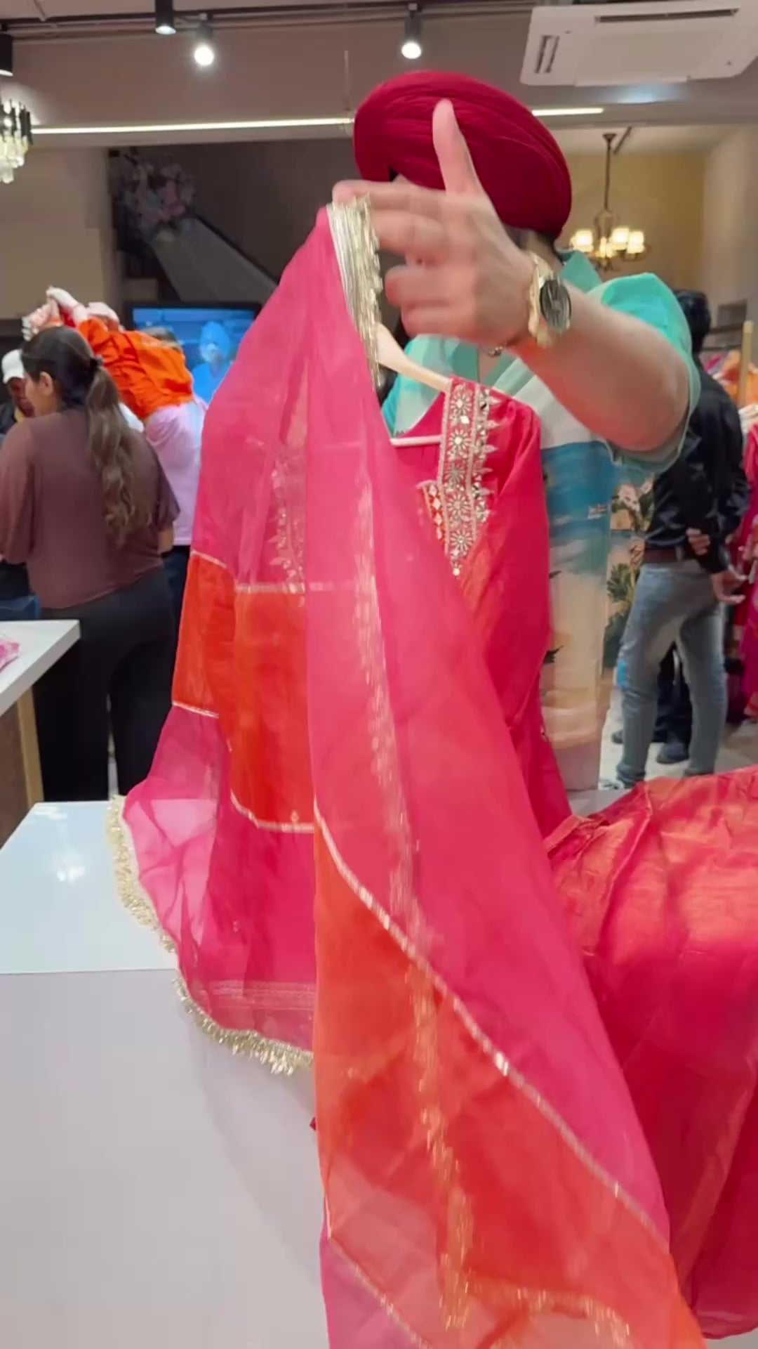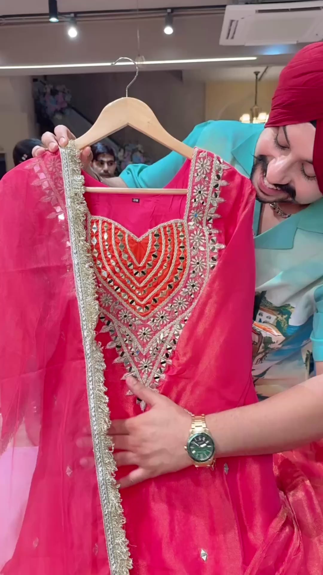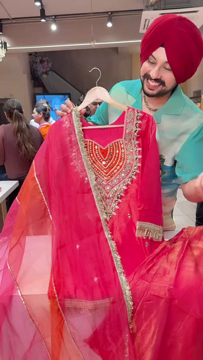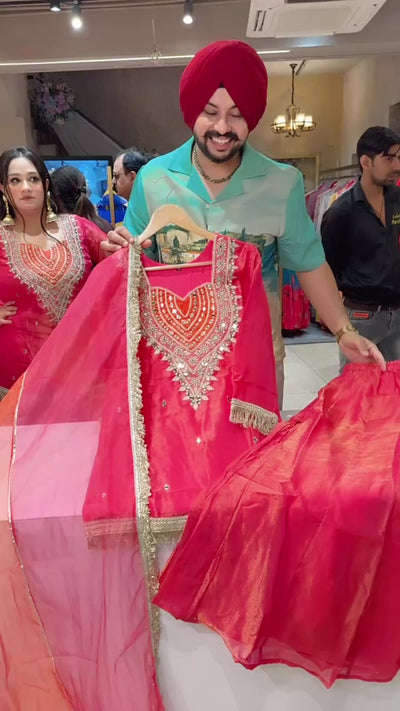 Gajri pink Shimmer Organza Bell Bottom Sharara Set With Heavy Embroidered & mirror Work on it