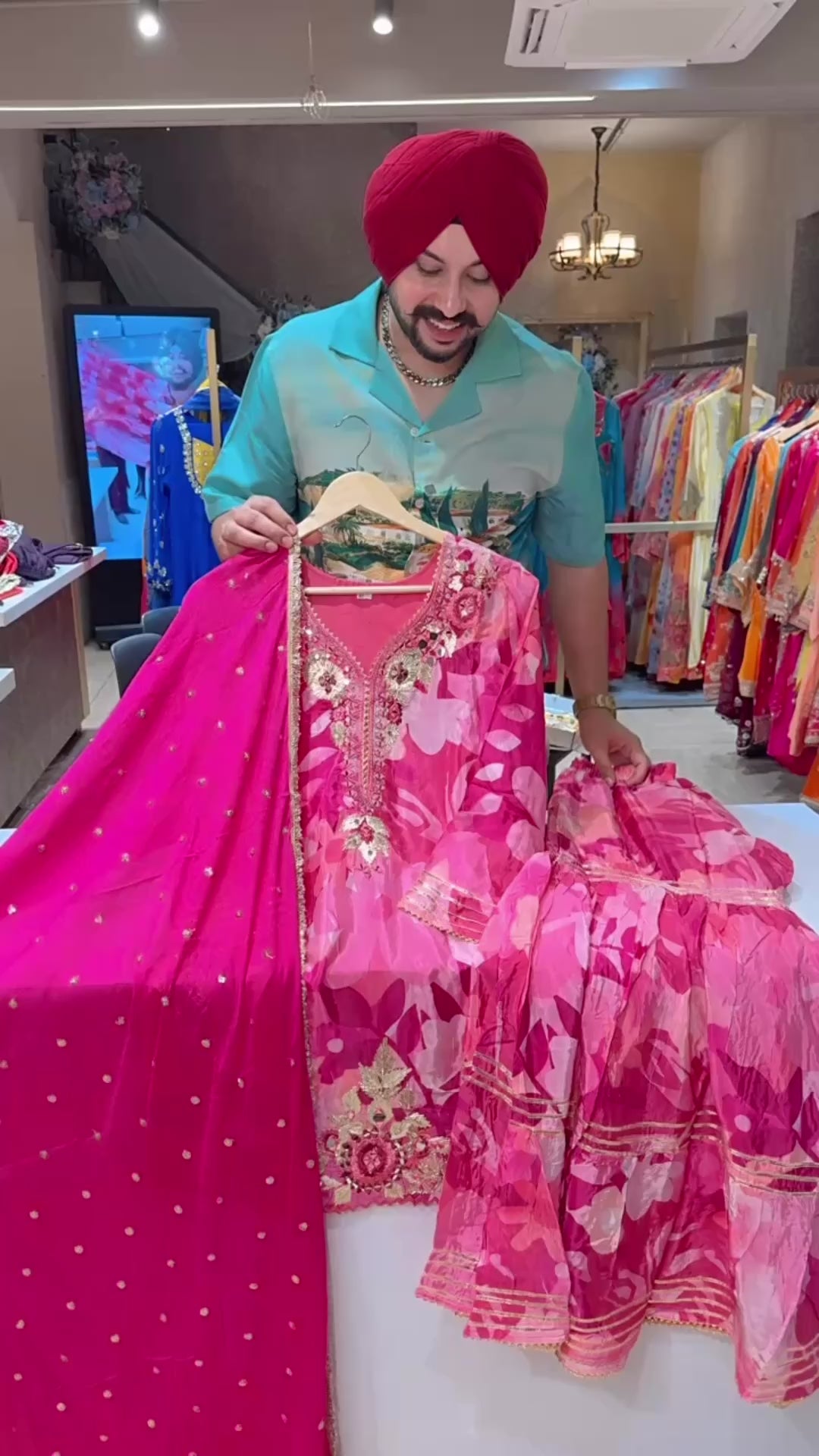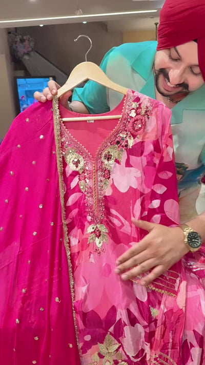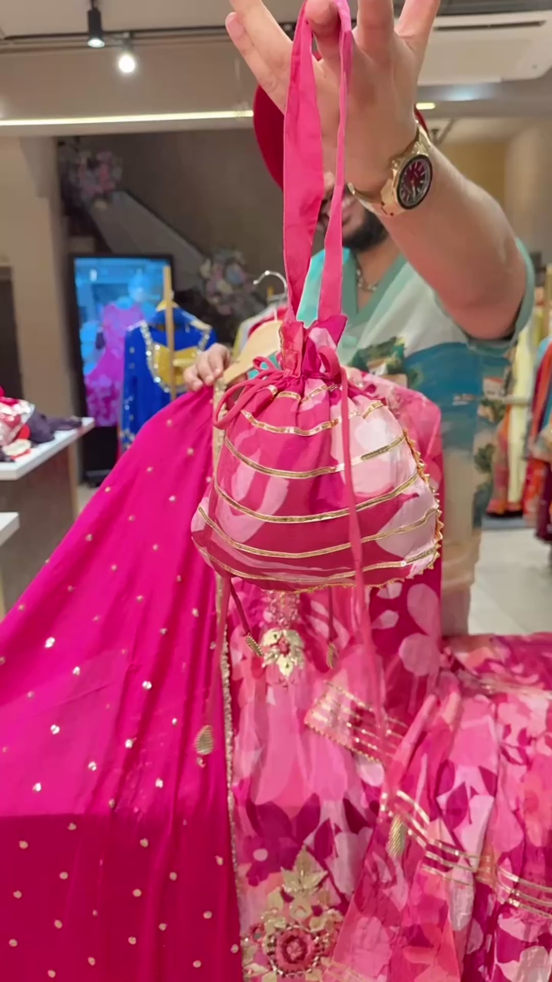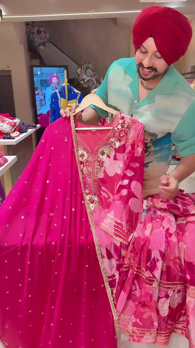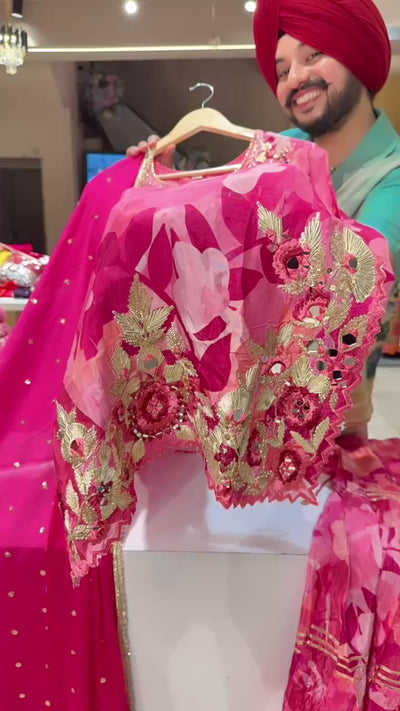 Pink Crepe heavy Embroidered Full Flair Garara set with Cute Potli & Chinon Sequins Work Duppata