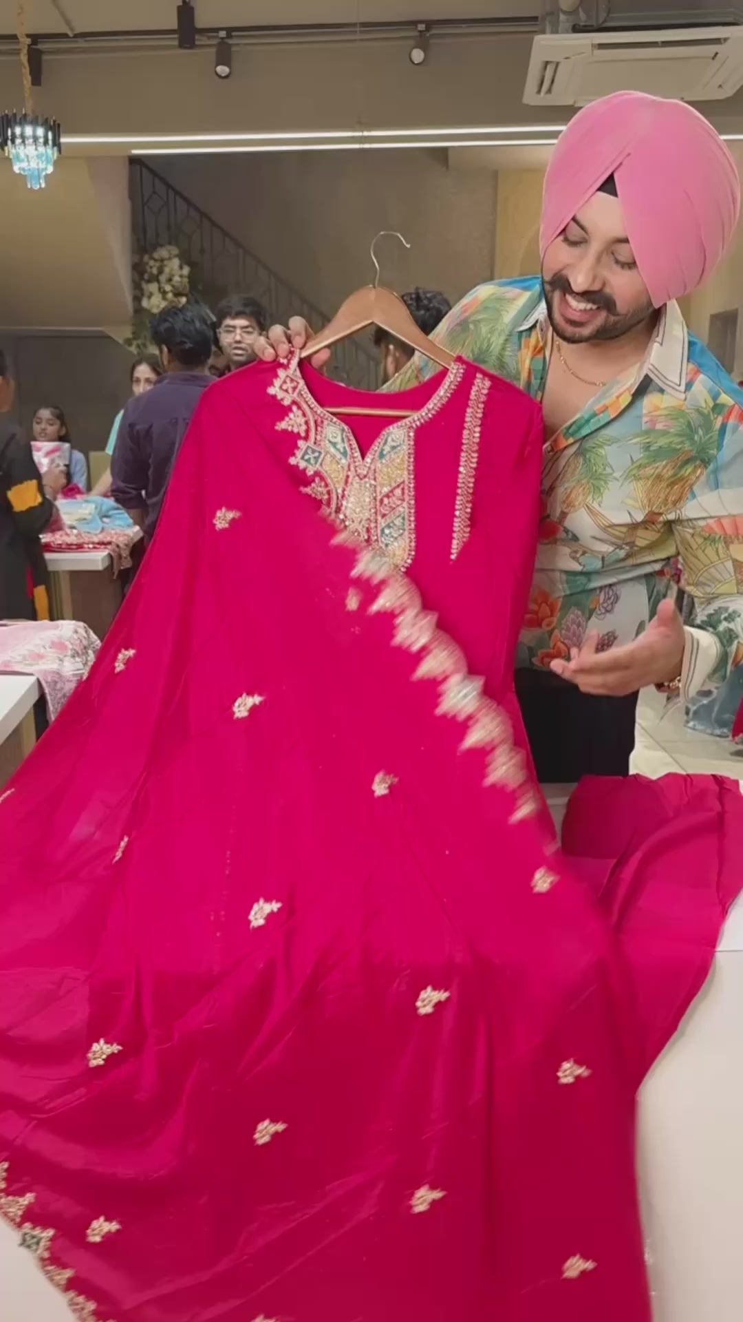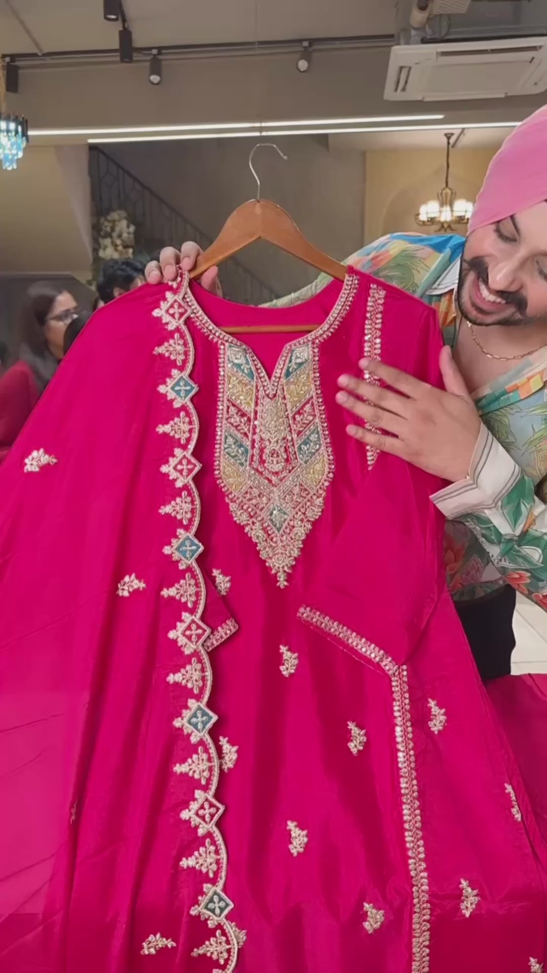 Rani pink Chinon embroidered Straight suit with Beautiful Duppata