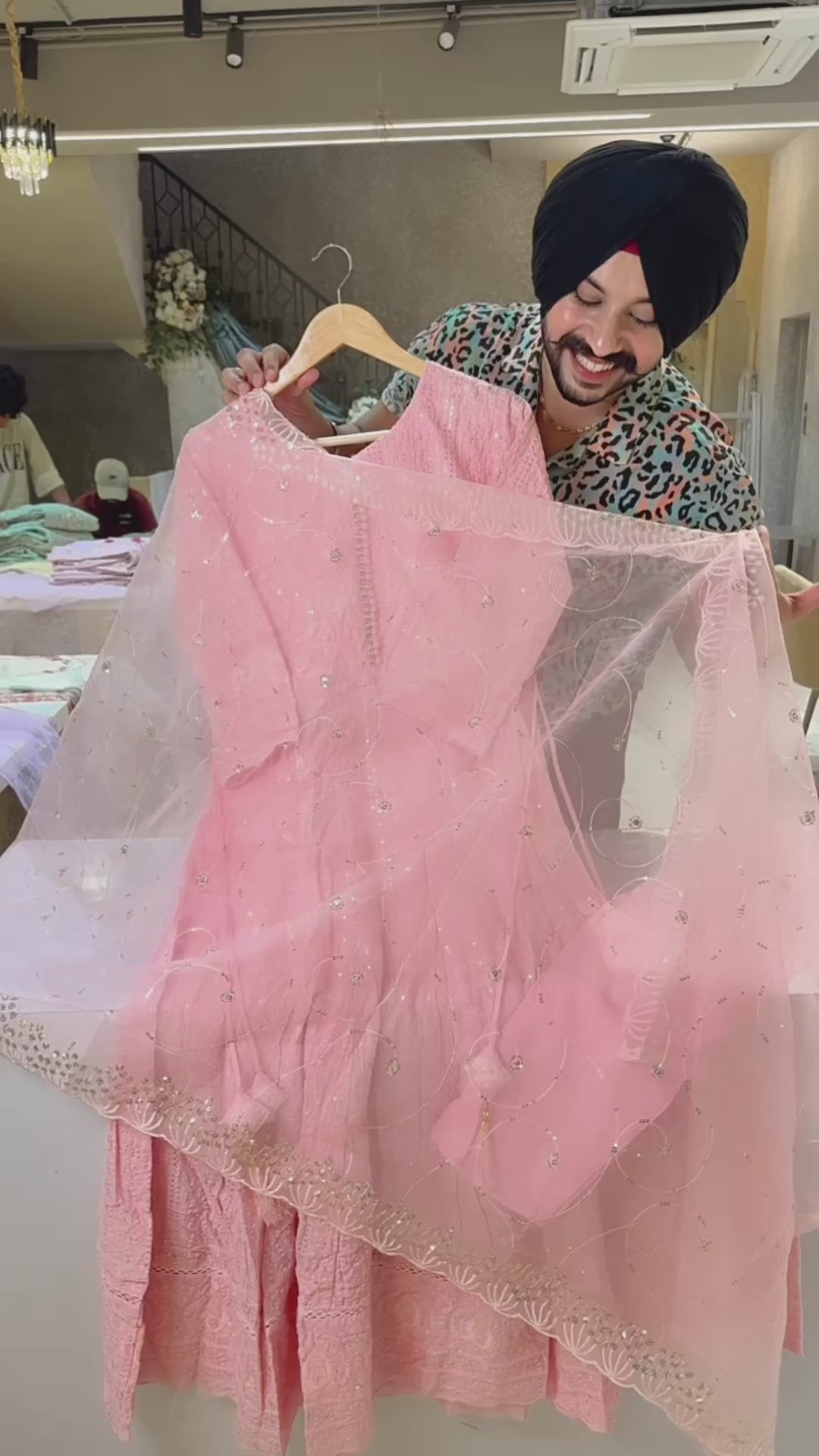 Pink Pure Cotton Fully embroidered Anarkali Suit with Beautiful Organza Duppata