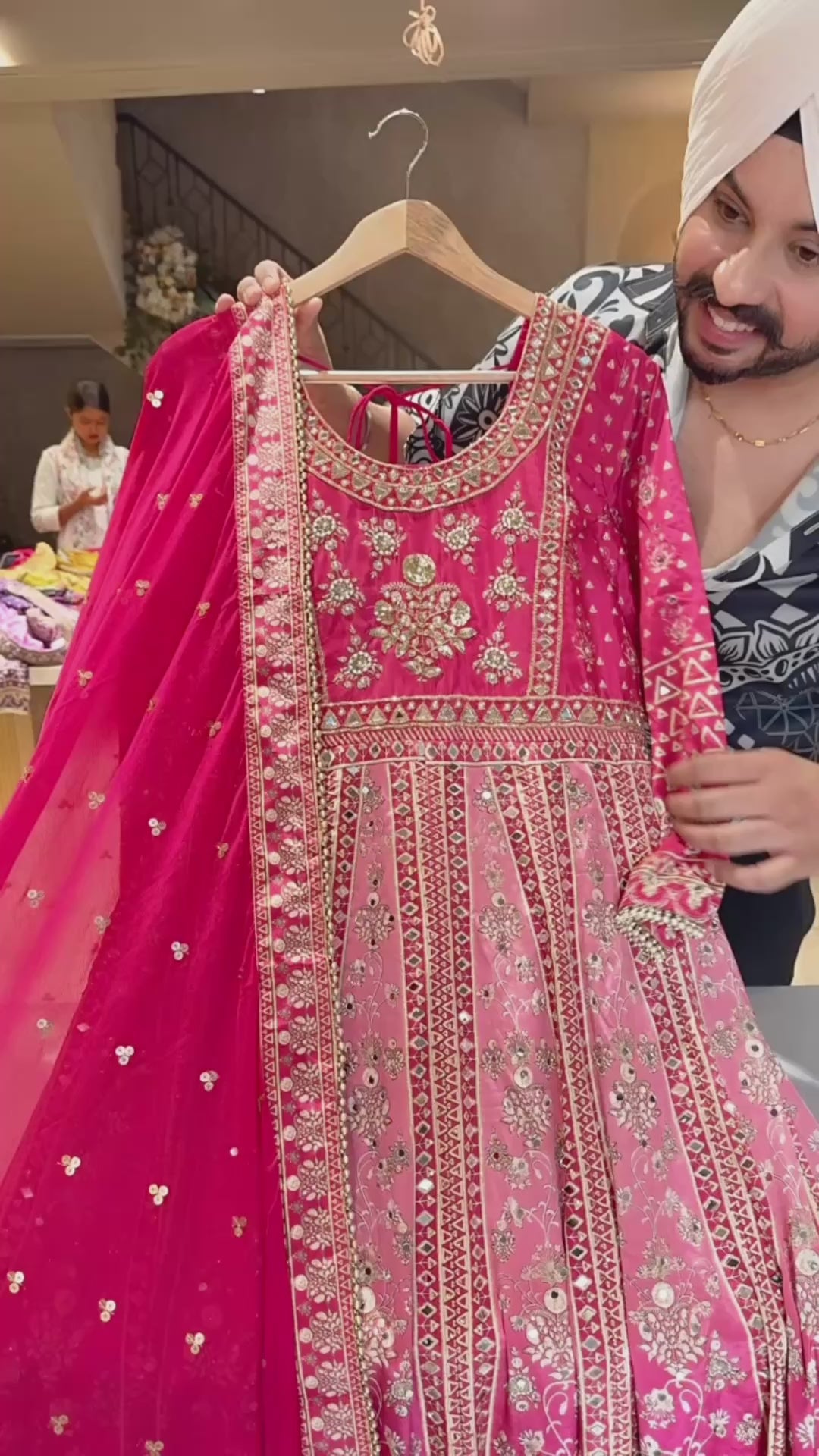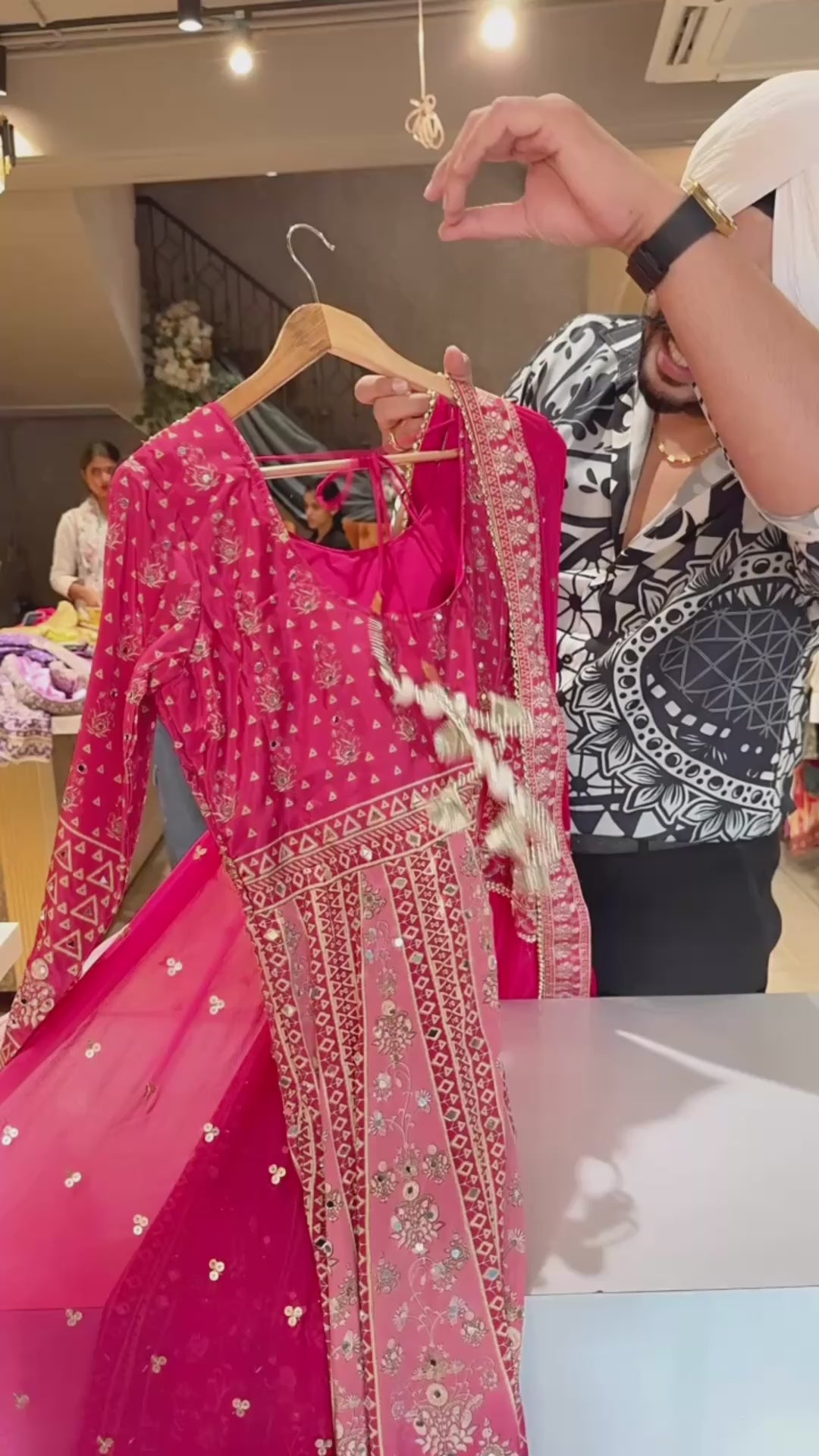 Pink Crepe Tie & die Heavy embroidered & mirror pasting Anarkali Gown with Beautiful Duppata