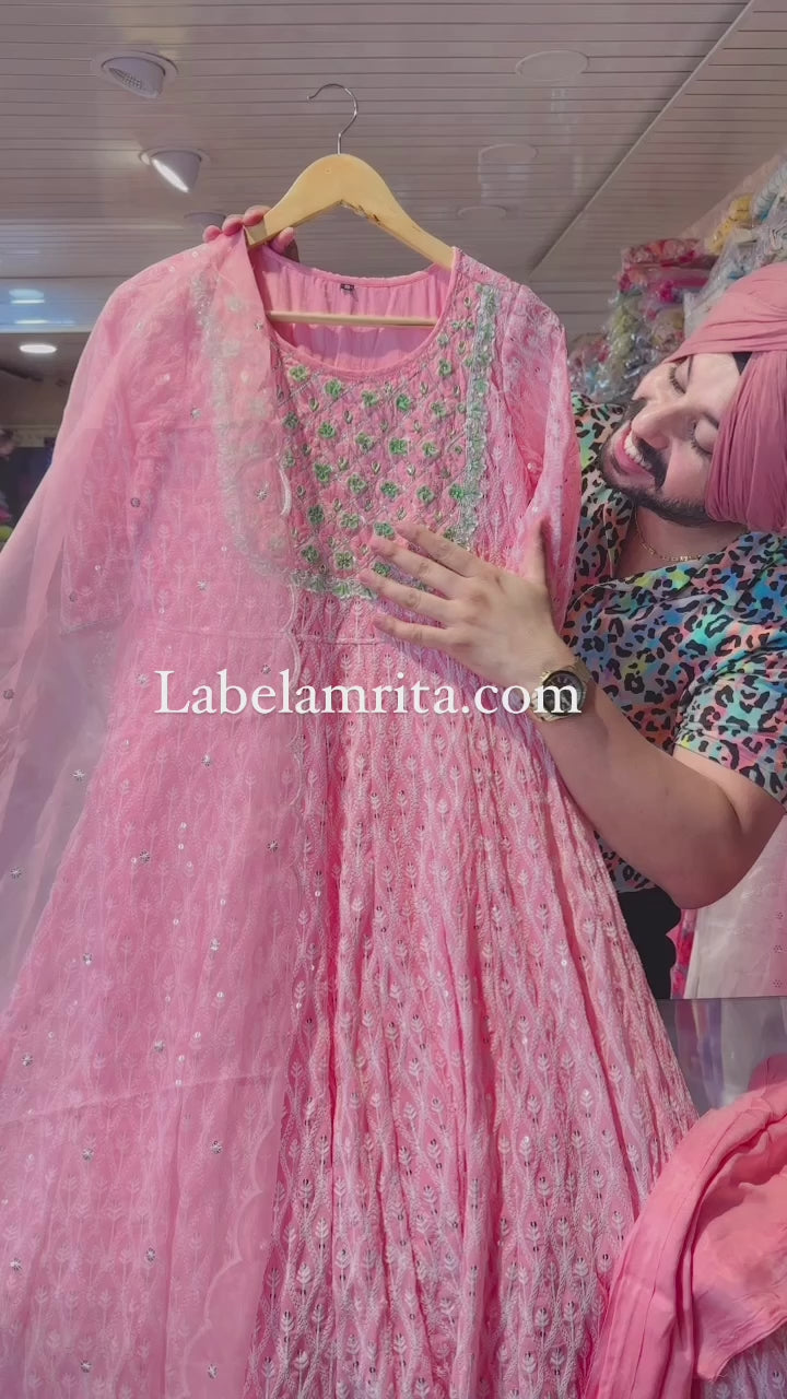 Pink Georgette Fully embroidered Anarkali suit with Beautiful handwork on neck