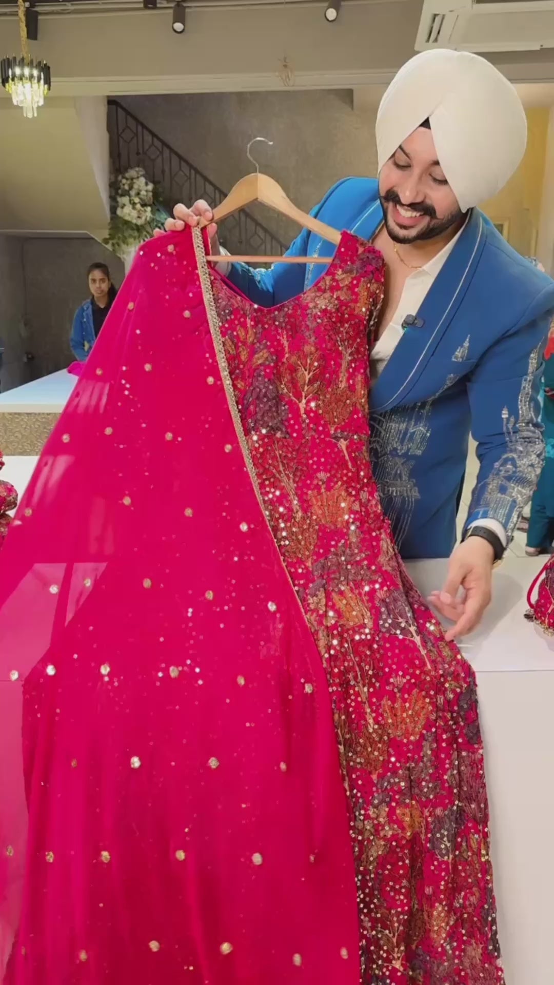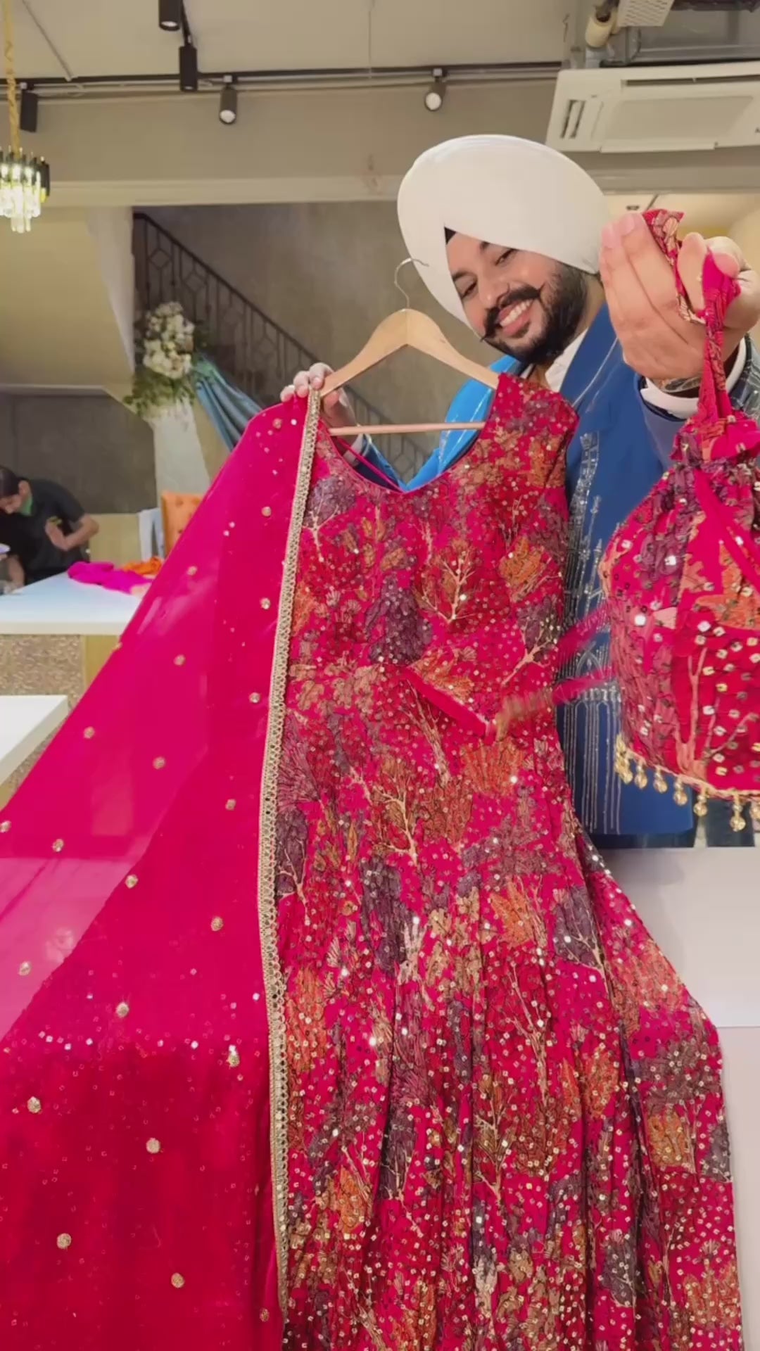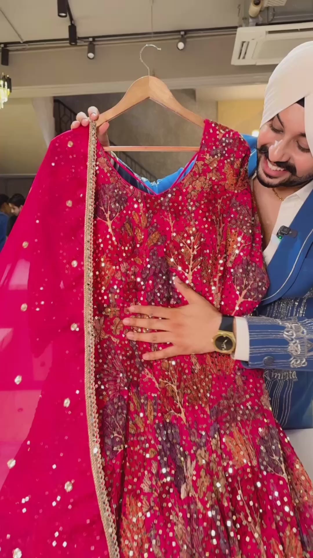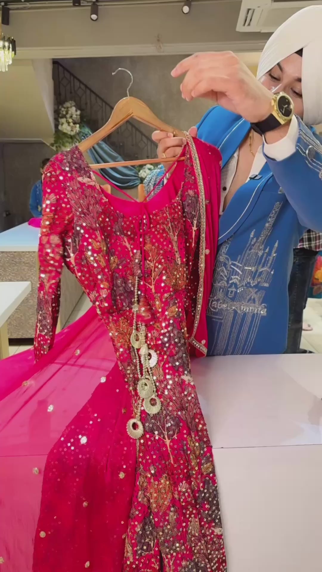 Rani pink Indowestern Heavy sequins work Anarkali gown with Polti & beautiful Duppata