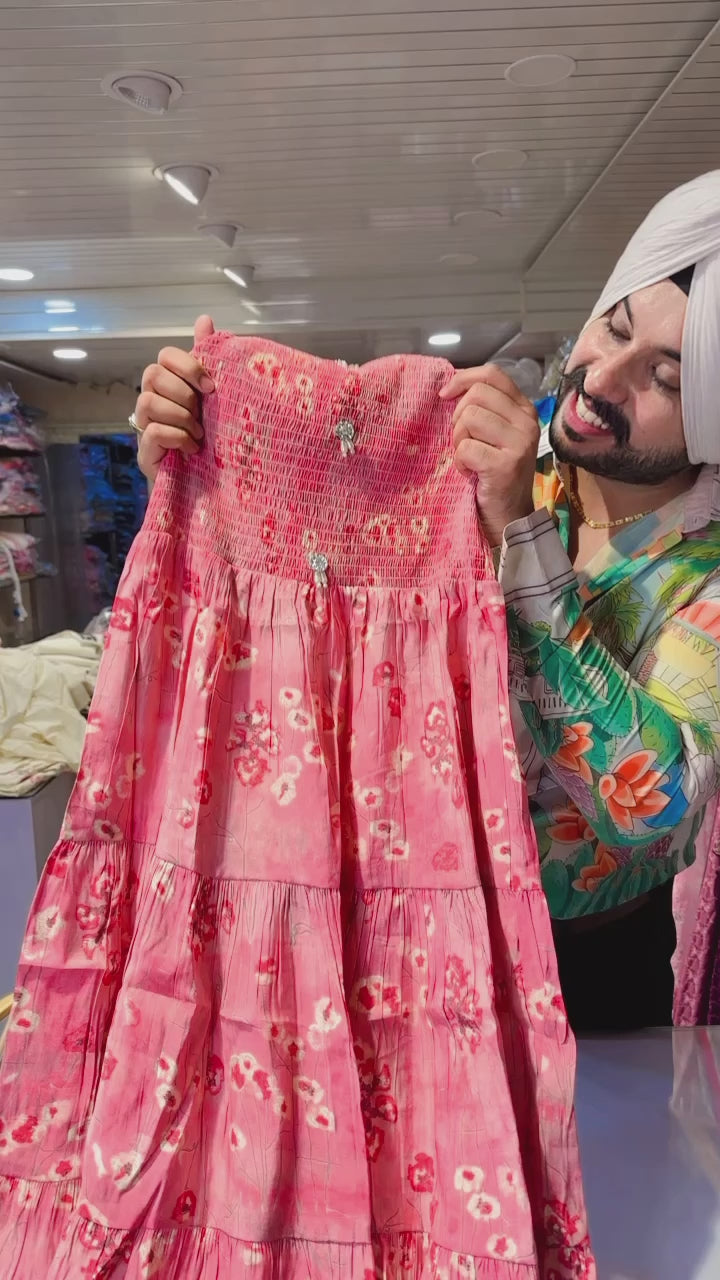 Pink muslin silk Indowestern dress with off white embroidered shrug