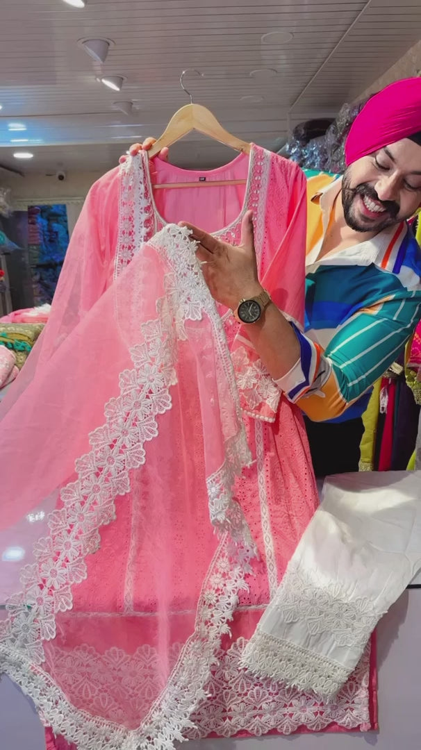 Pink pure Cotton Heavy Pakistani Suit with Organza Duppata