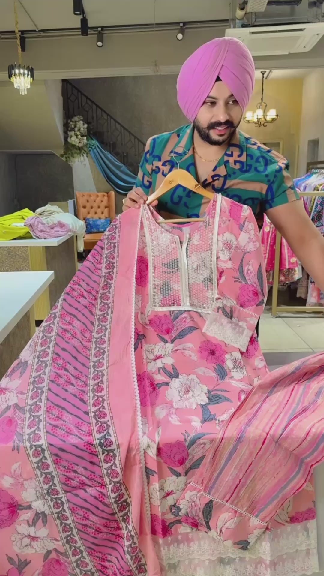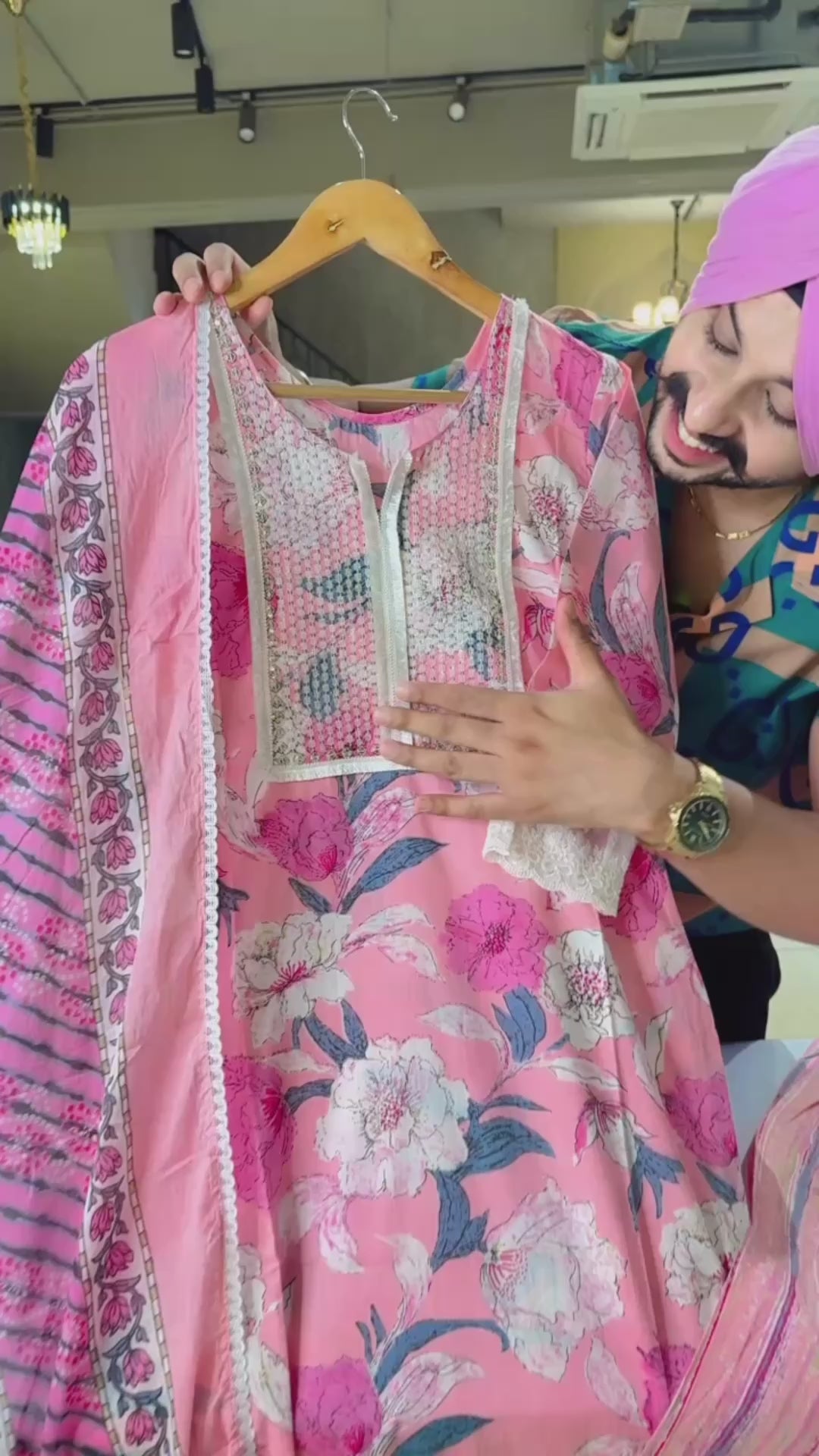 Pink Pure Cotton office Wear Suit with Sequins Work on neck
