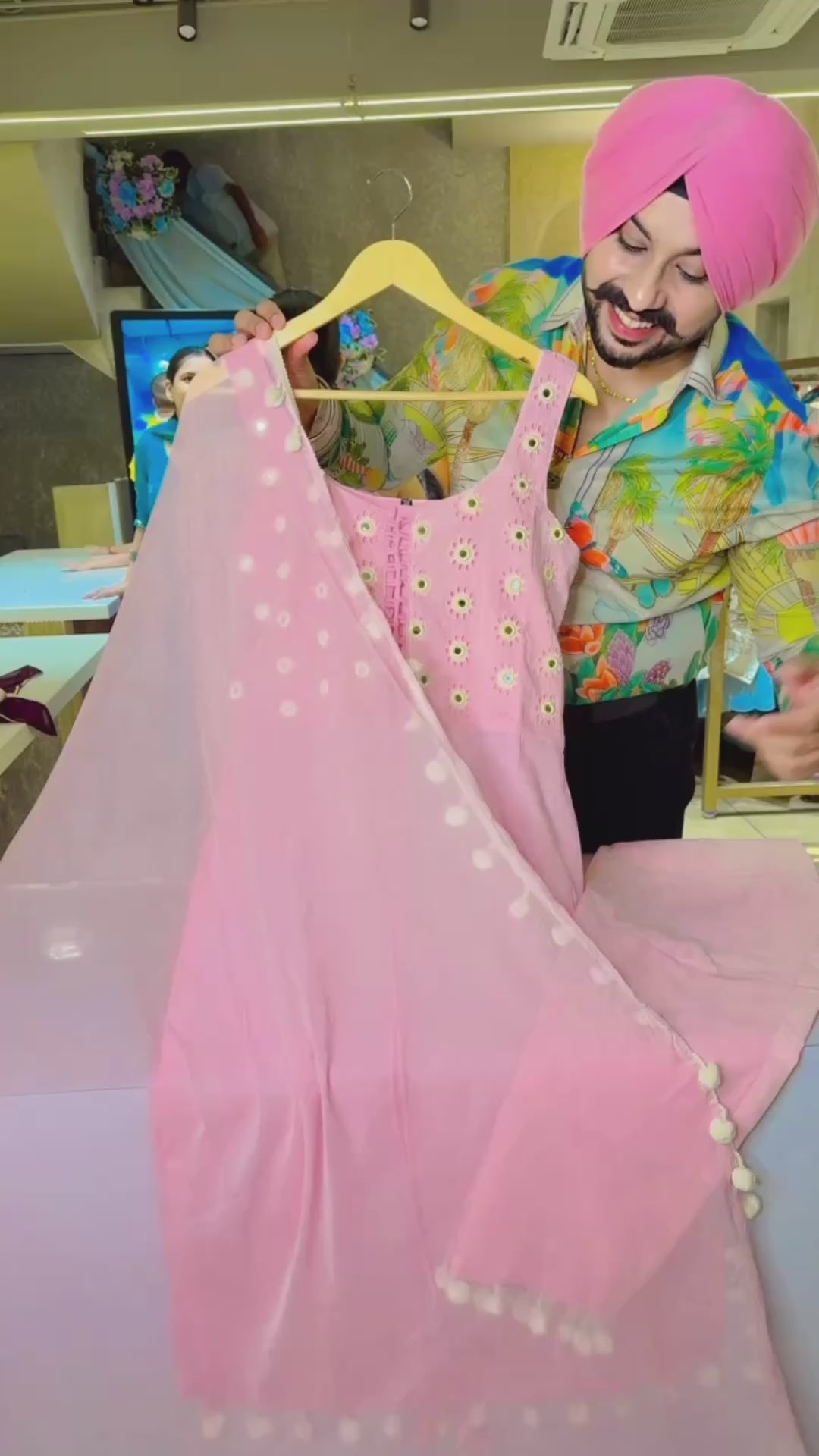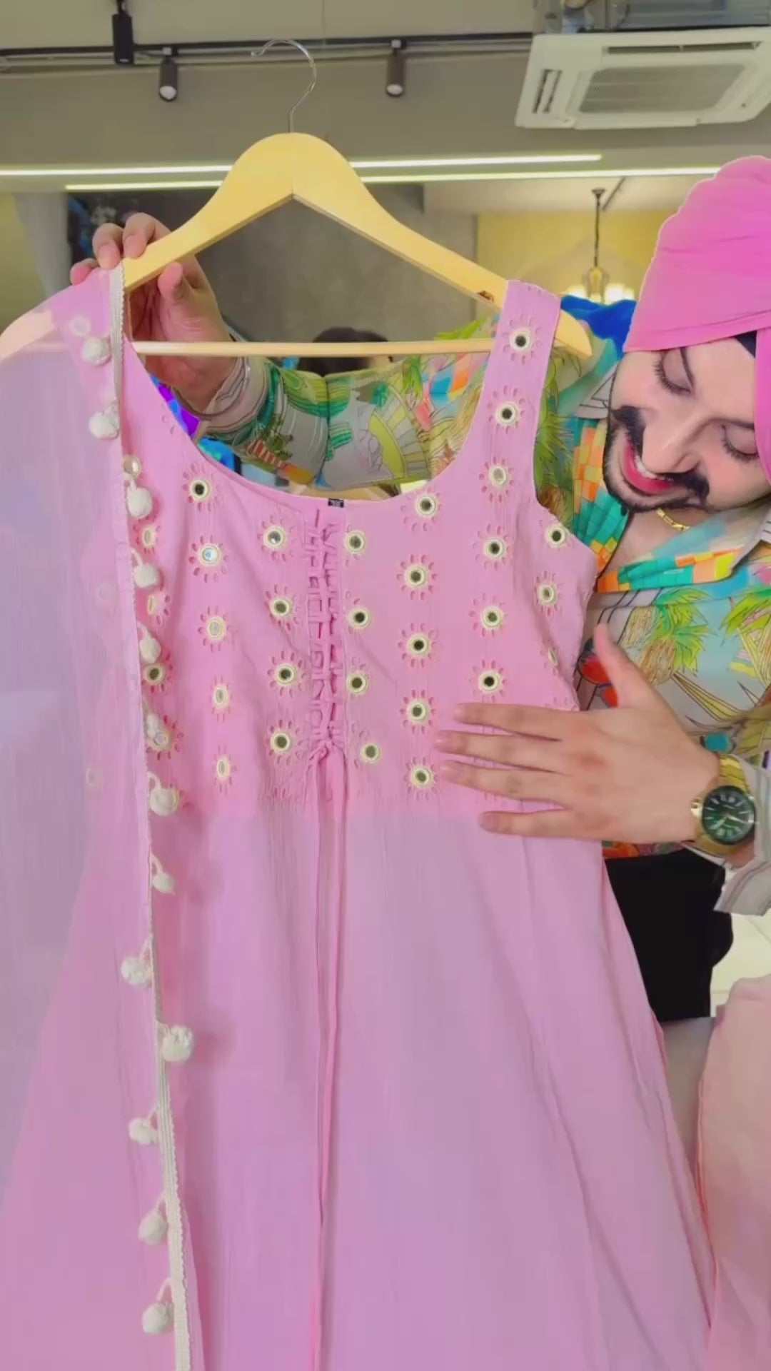 Pink Soft Cotton Cut Sleeves Pom Pom suit With Beautiful Chiffon Duppata
