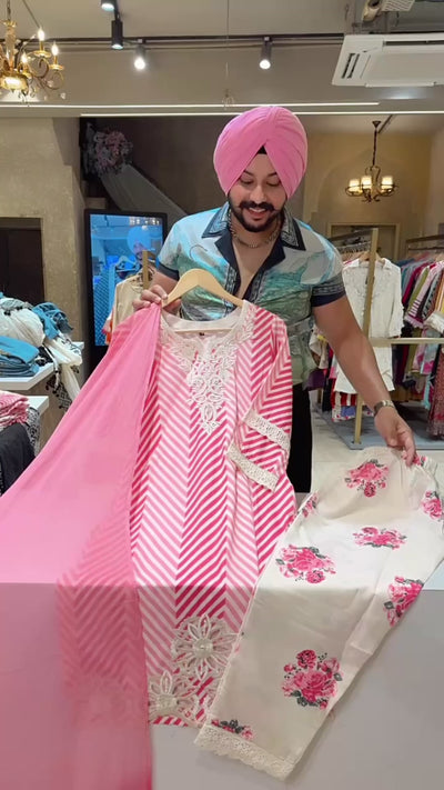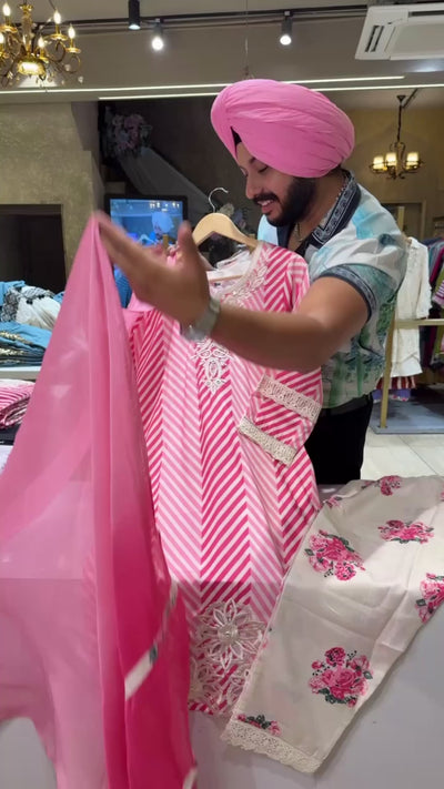 Pink Soft Silk Embroidered & Applique Cut work Indowestern Suit