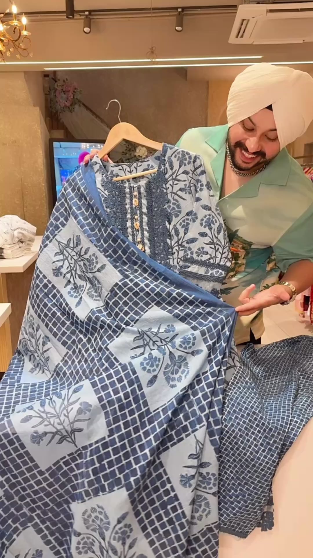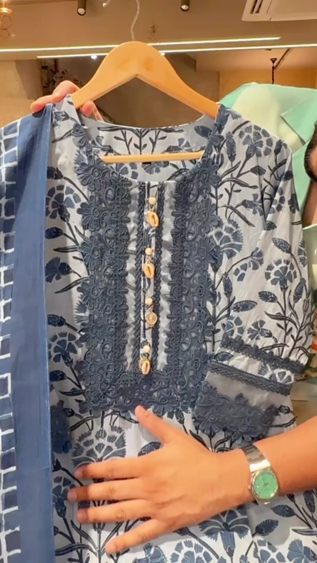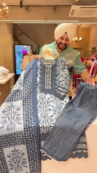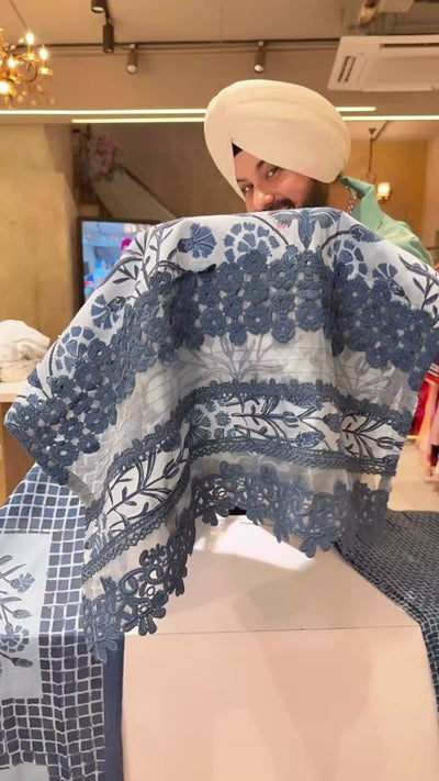 Powder Blue pure Cotton Crochet Laces premium Straight Suit