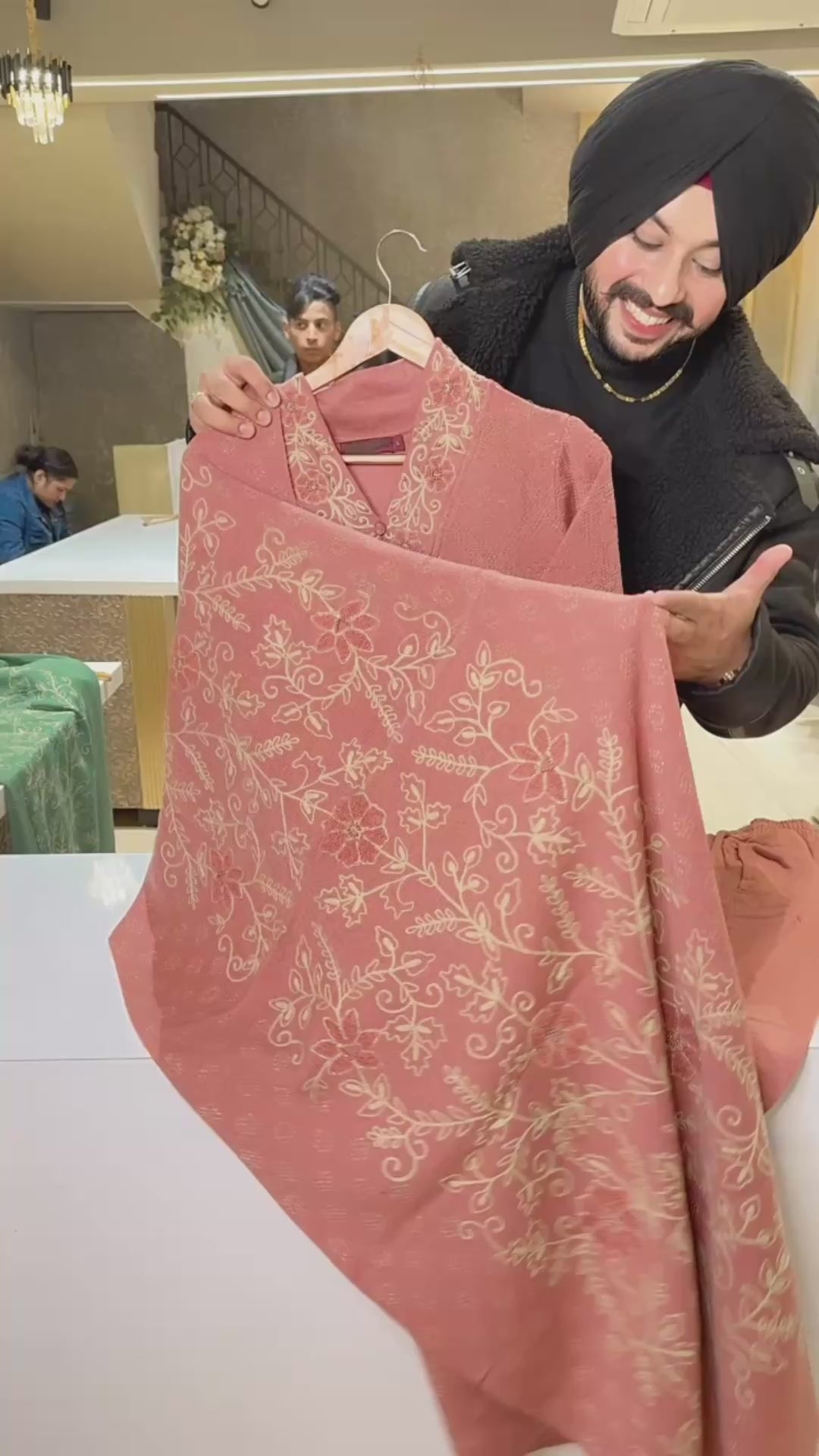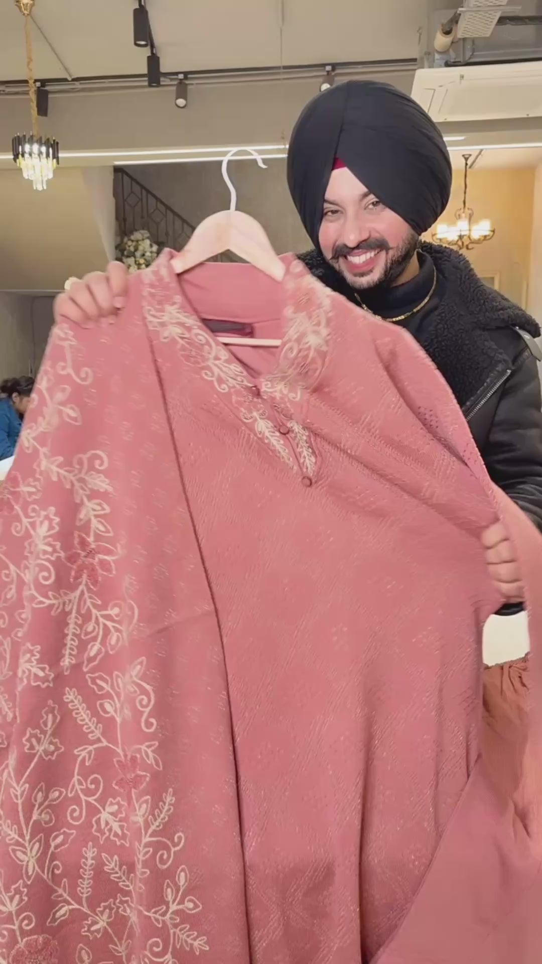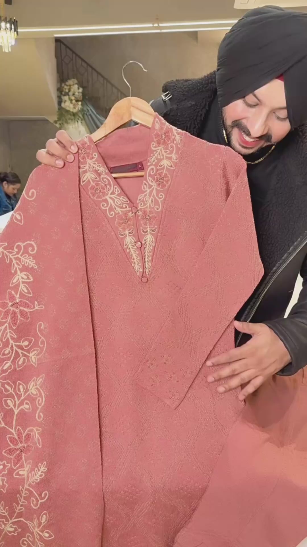 Peachish pink Premium Shimmer Nitting Woolen Suit with Heavy embroidered Duppata