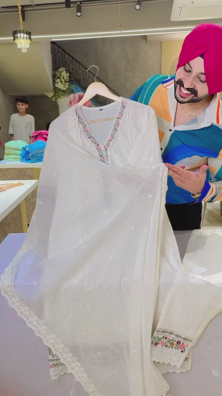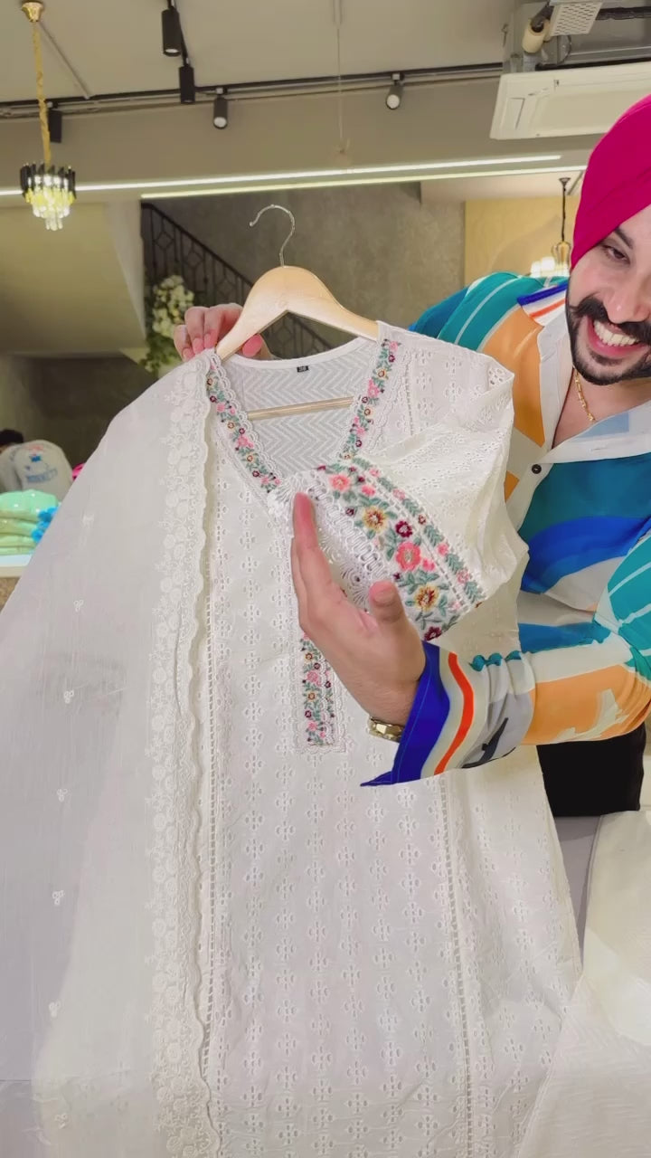 Moon white Pure cotton Pakistani Straight suit with beautiful Shifli work