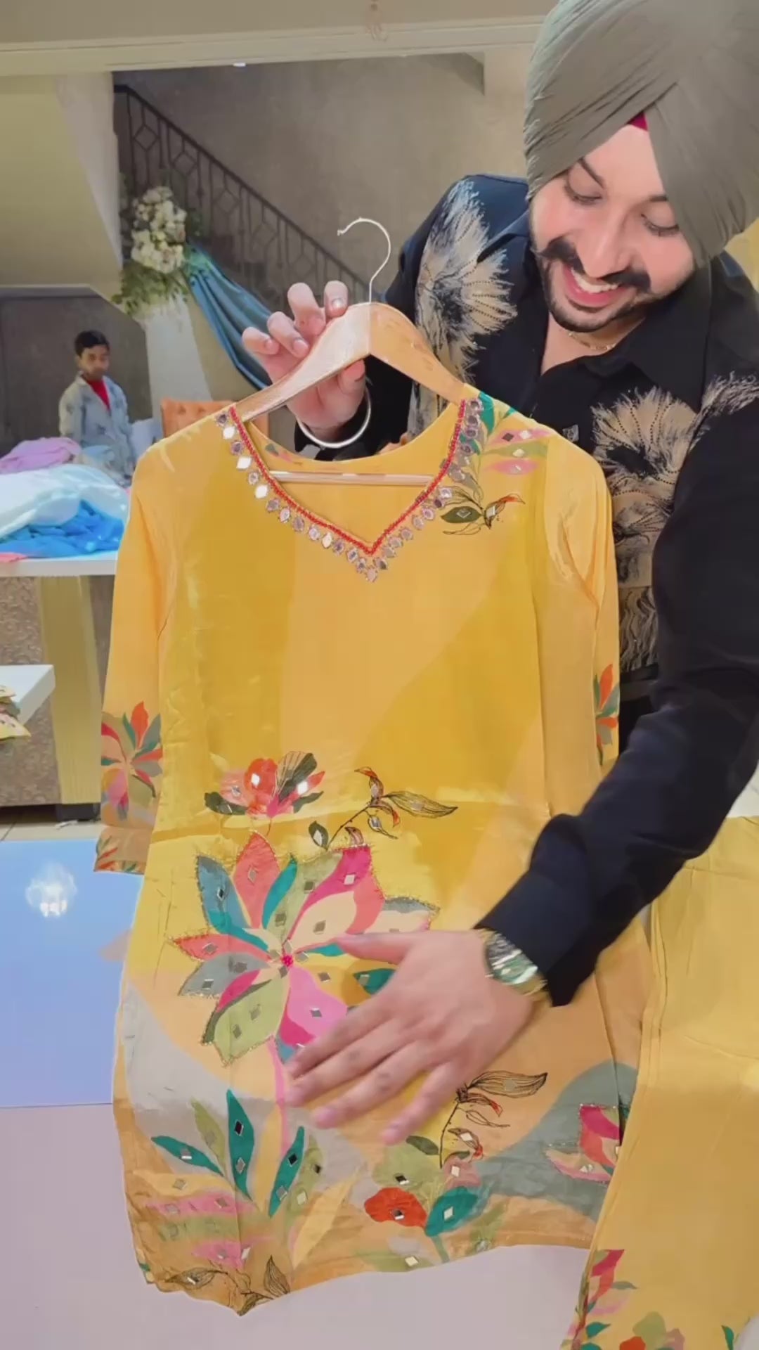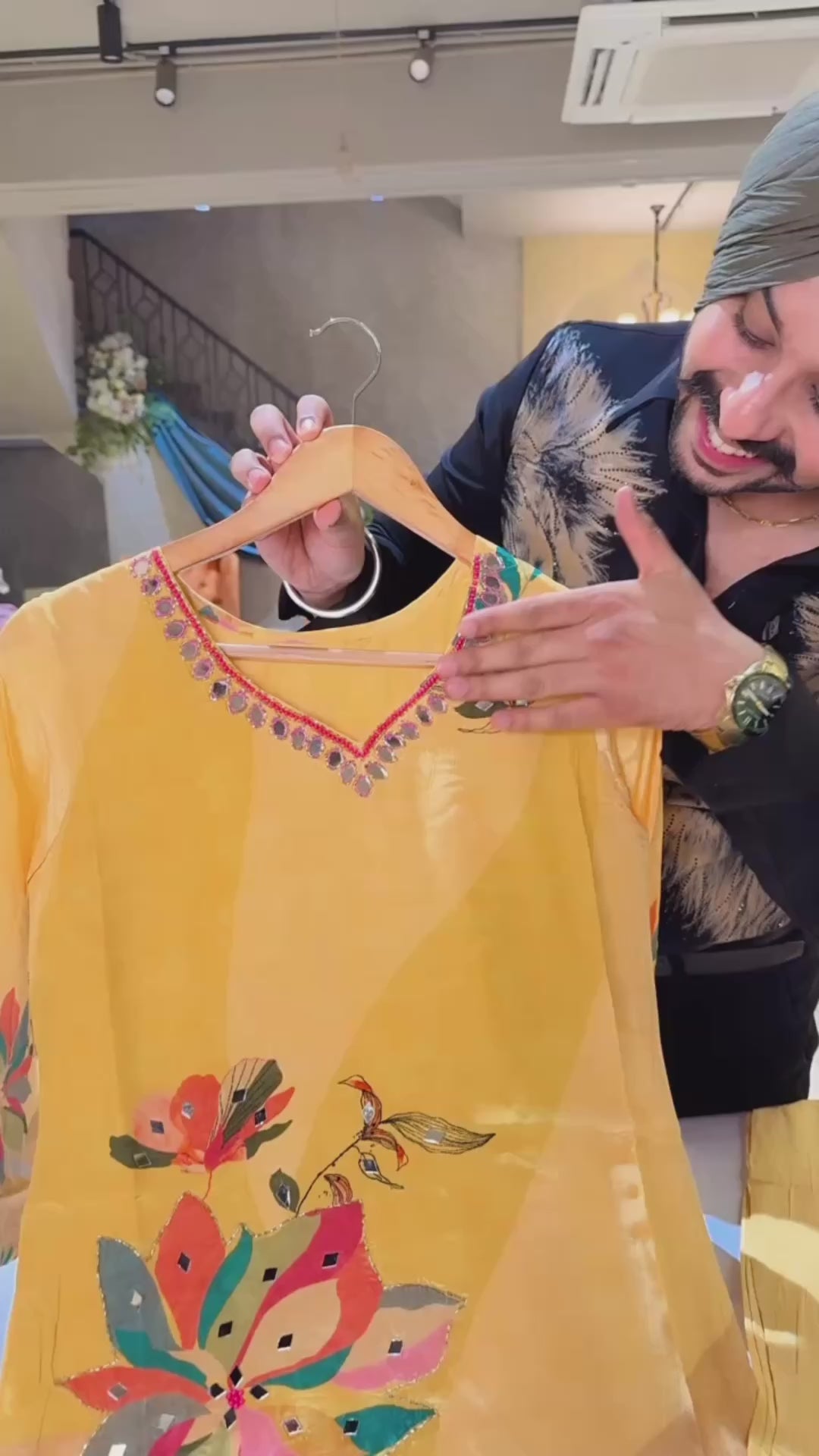 Yellow Premium Crepe hand Embroidered Coord set