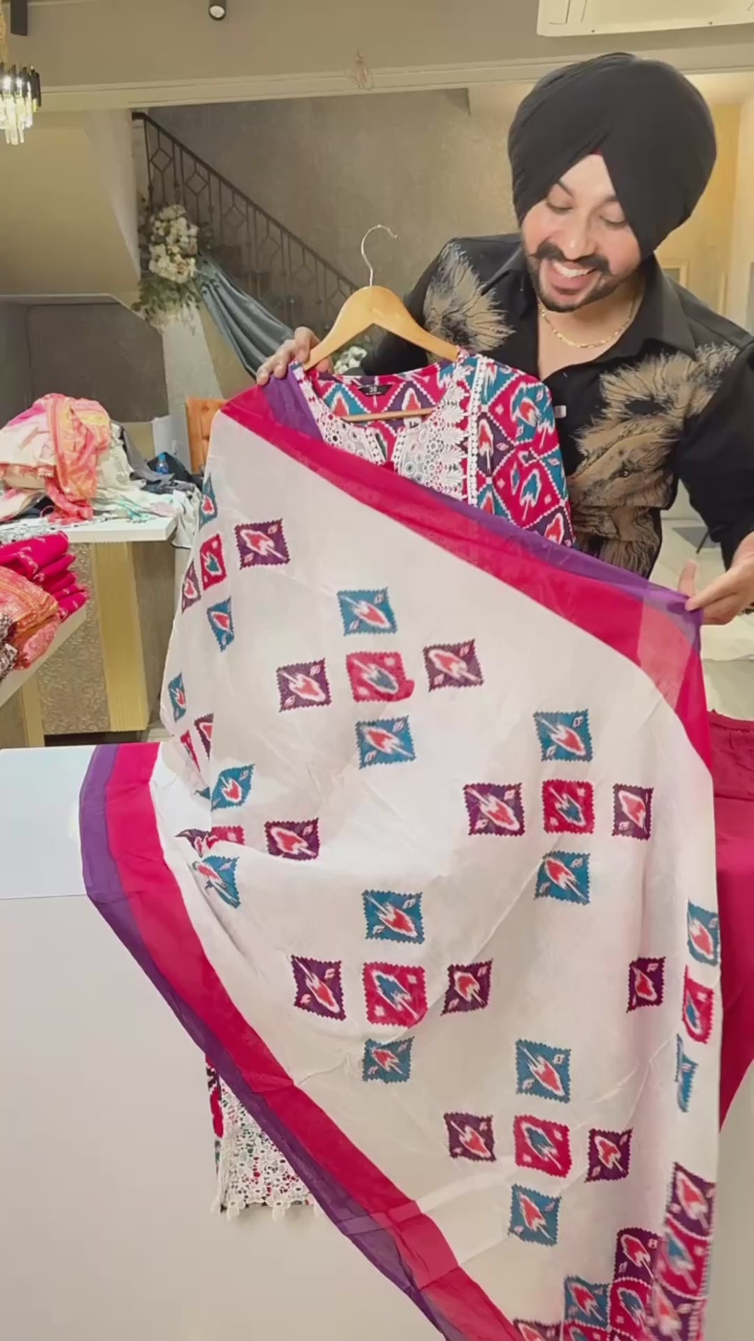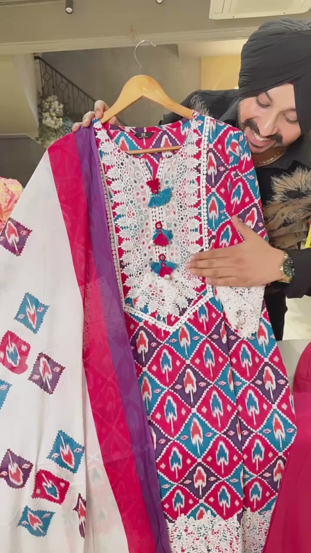Rani pink Pure Cotton Crochet Lace Work Pakistani Suit with Beautiful Duppata