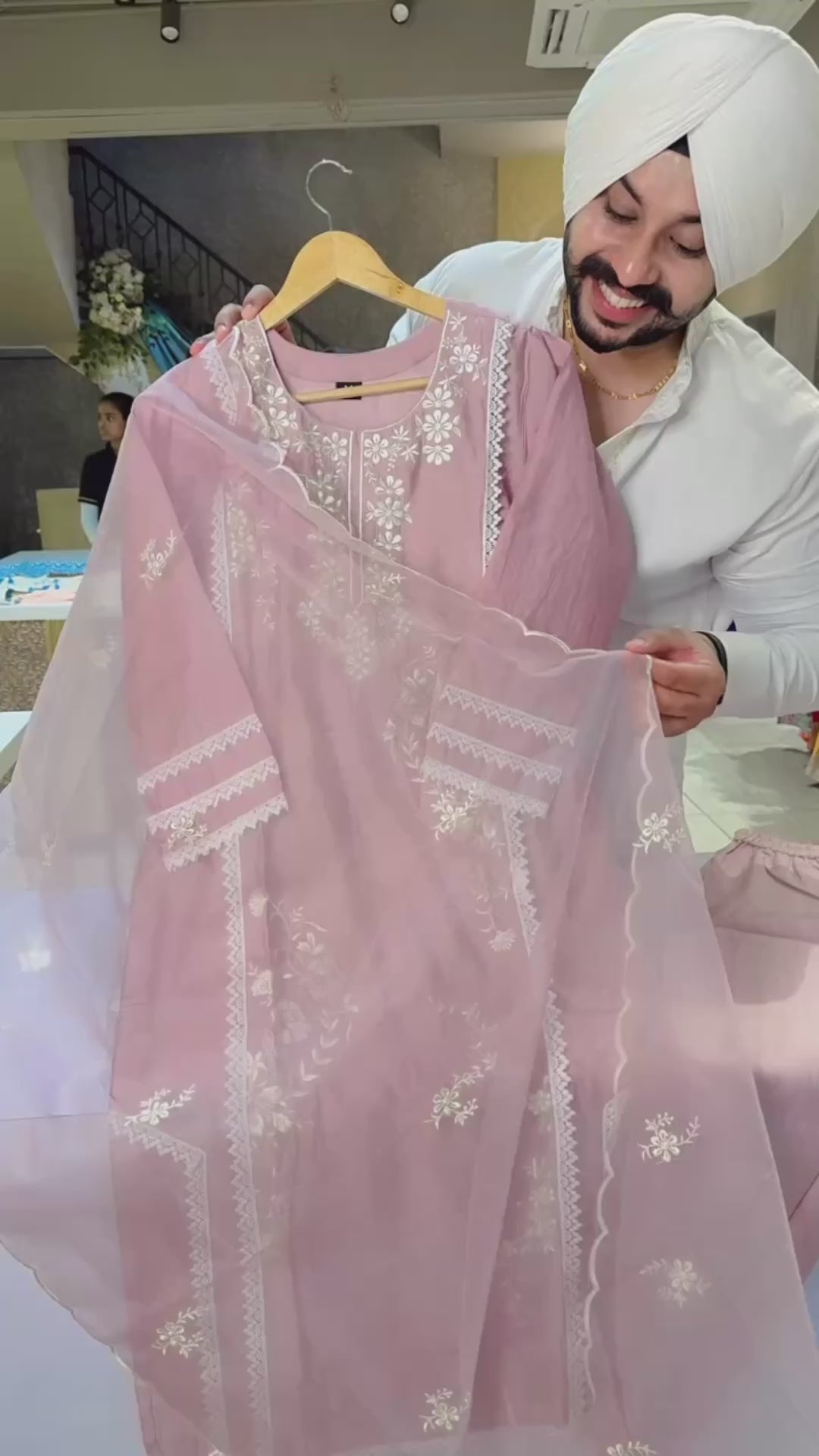 Light Onion Roman Silk Embroidered Straight Suit with beautiful Organza Duppata