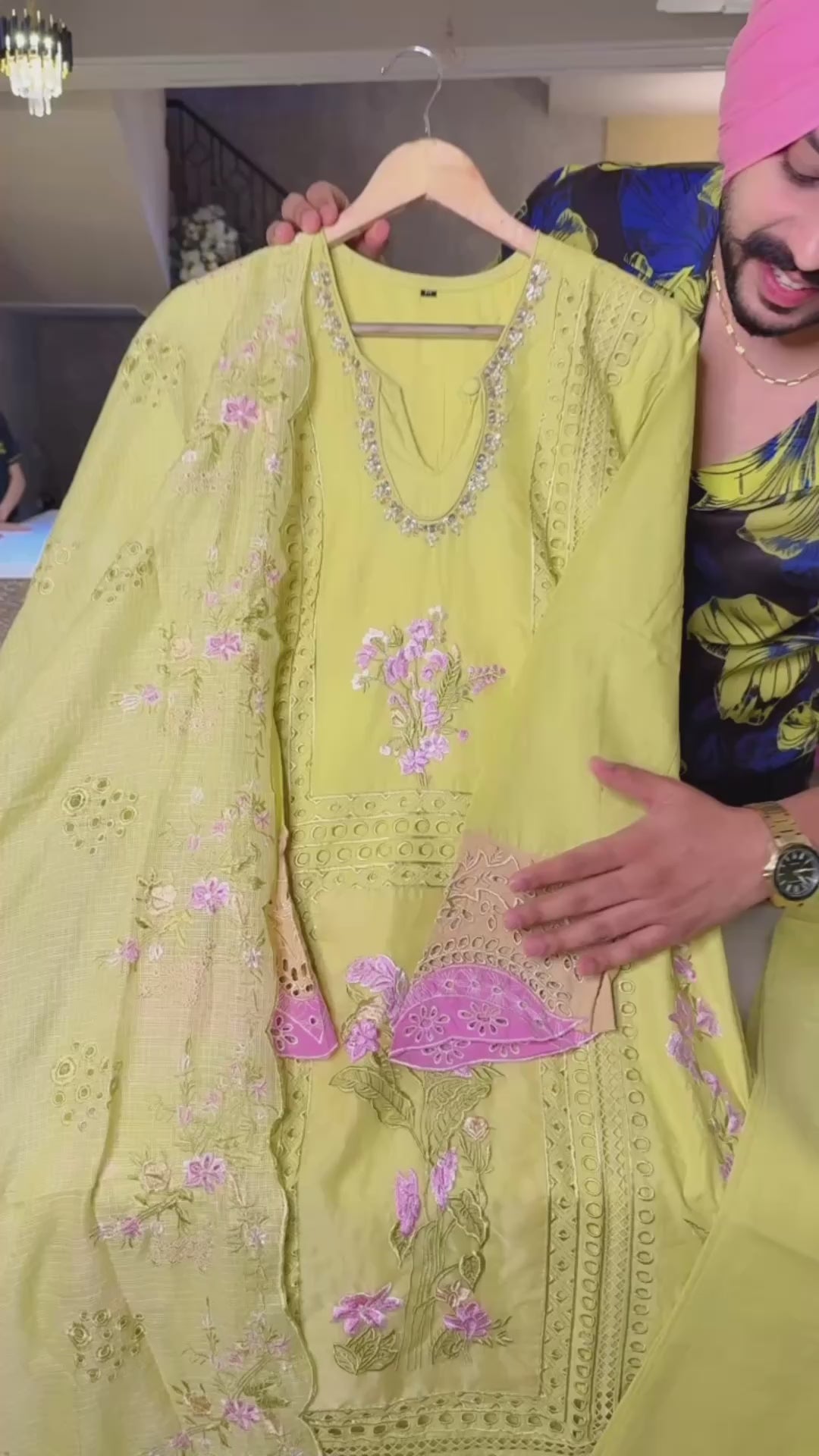 Mint Green Cotton Heavy Embroidered & Cut Work Kashmiri Suit with Beautiful Kota Duppata