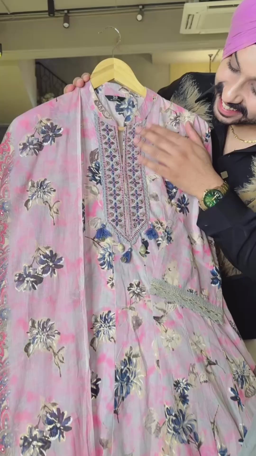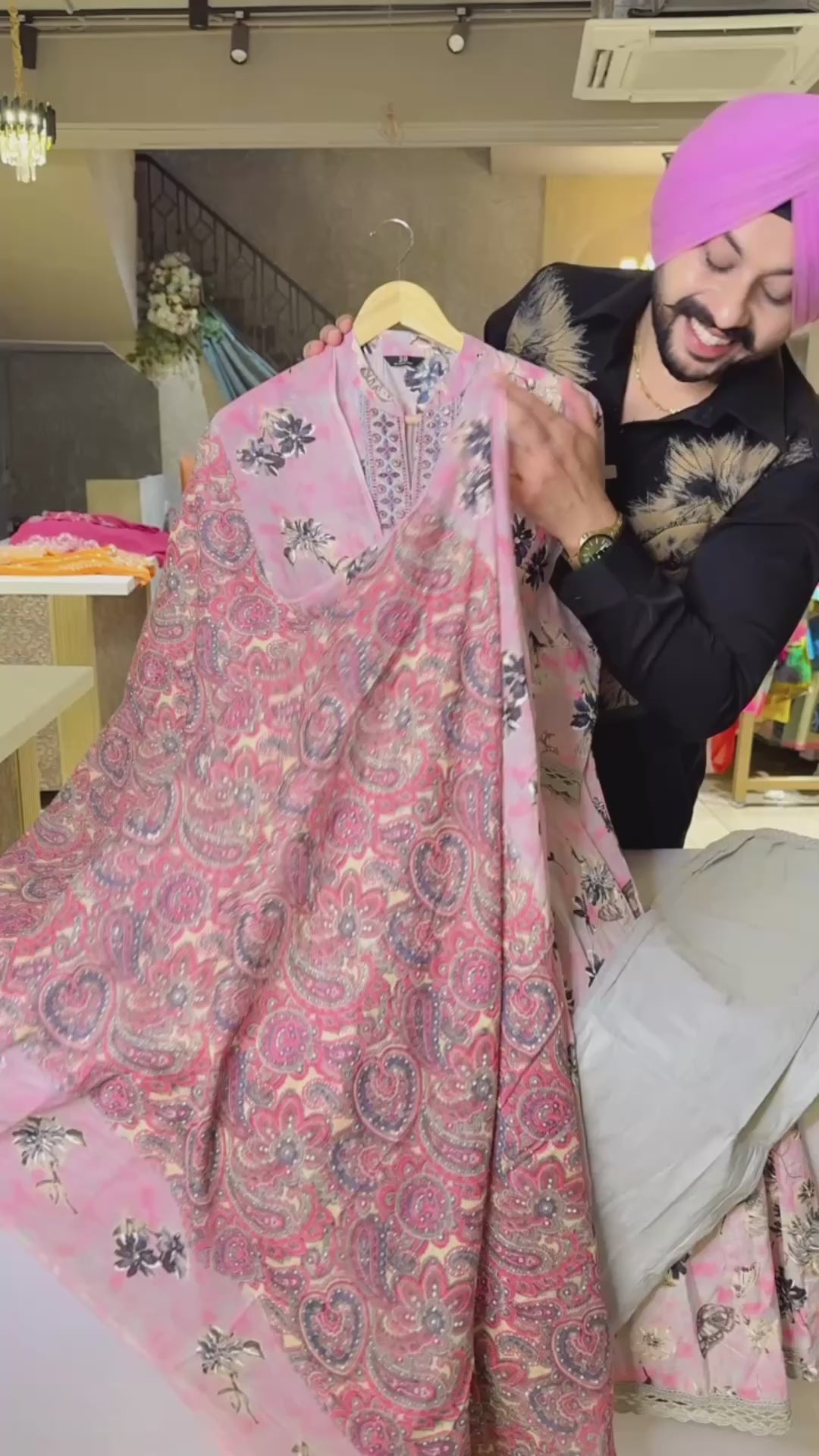 Light Grey & pink Pure Cotton Anarkali suit with Beautiful Duppata