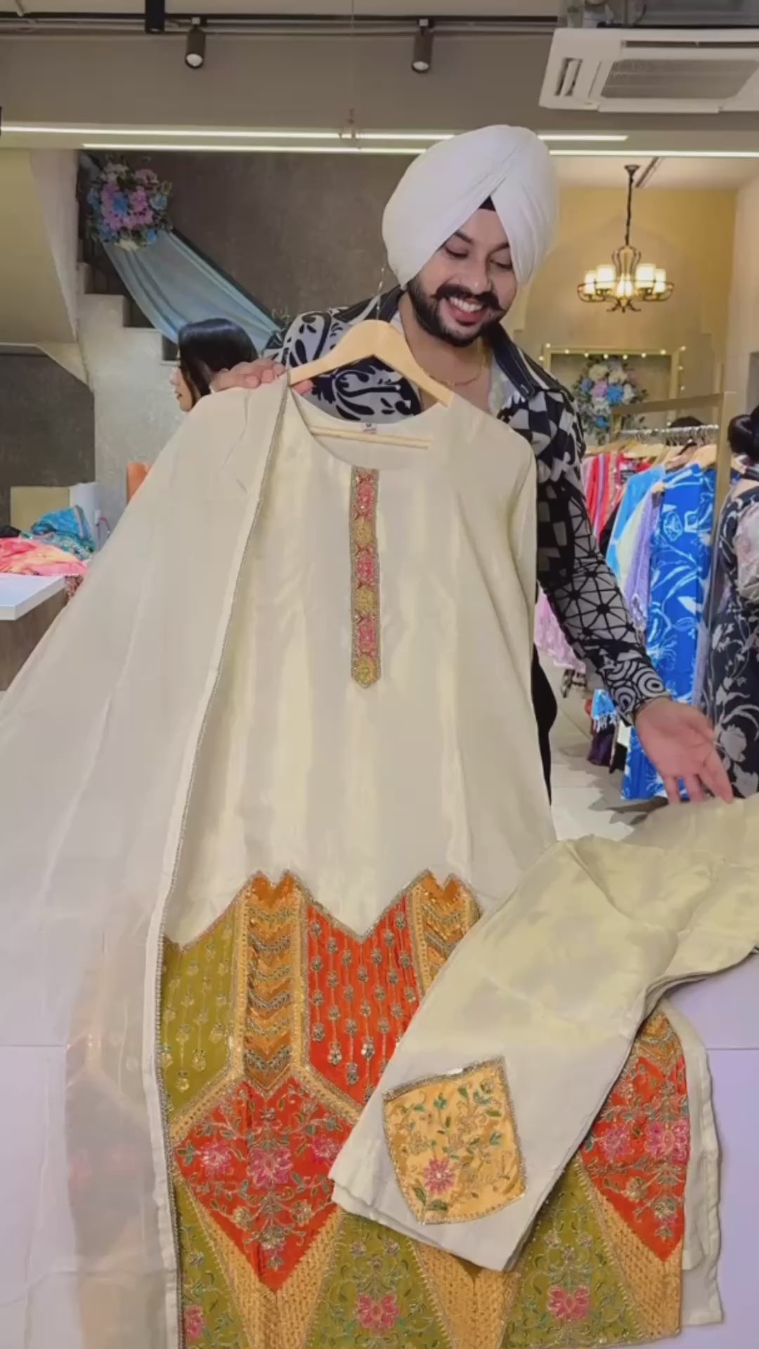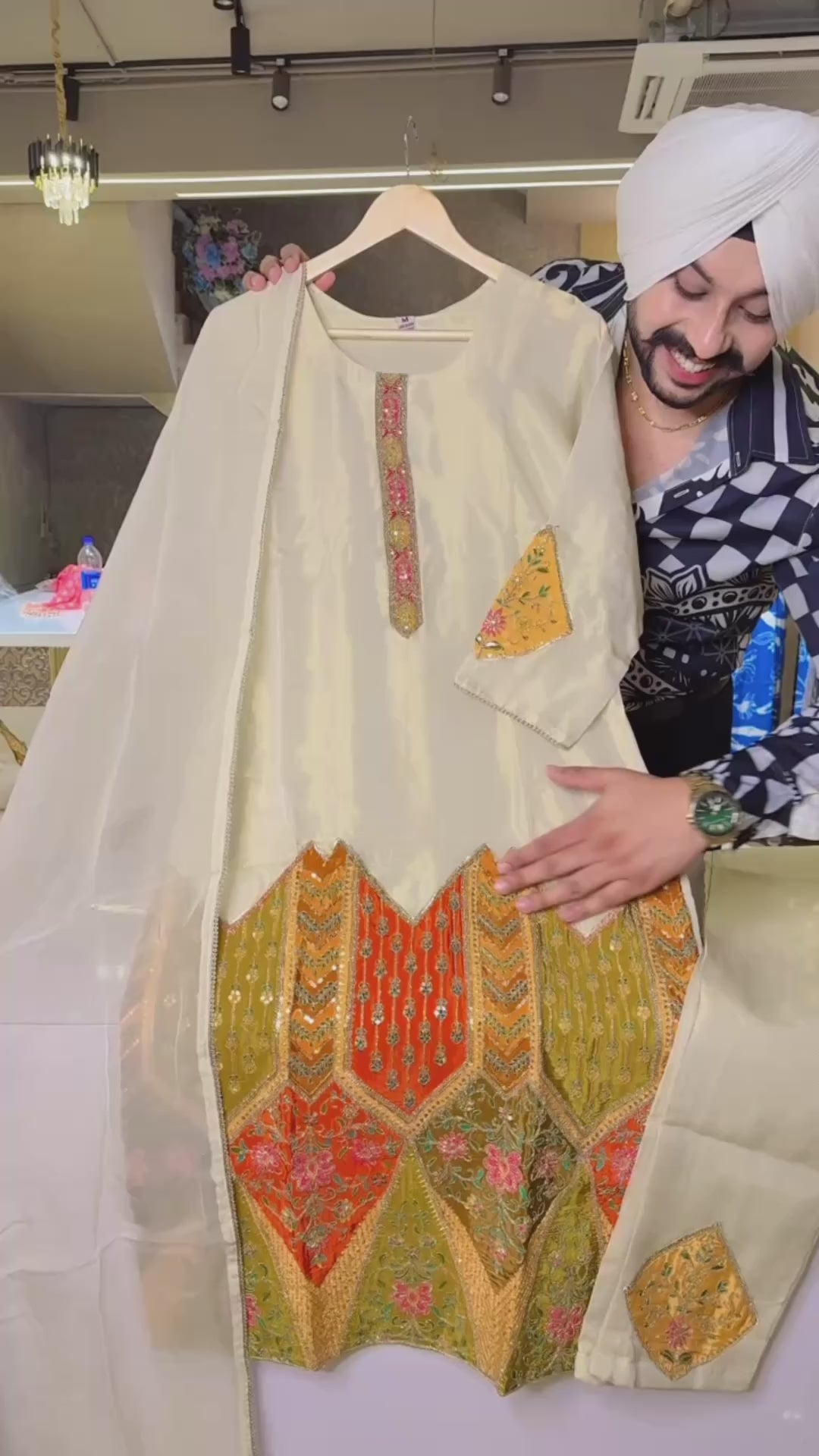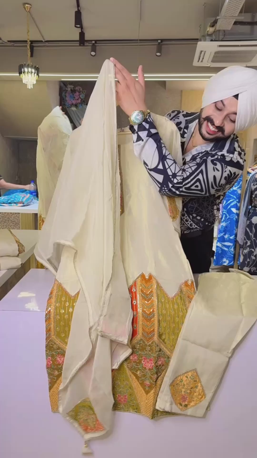 Ivory Gold premium Shimmer Silk Heavy Embroidered Straight Suit with Organza Duppata