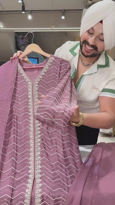 Onion Pure Chinon Heavy hand embroidered Indowestern Bell Bottom Suit