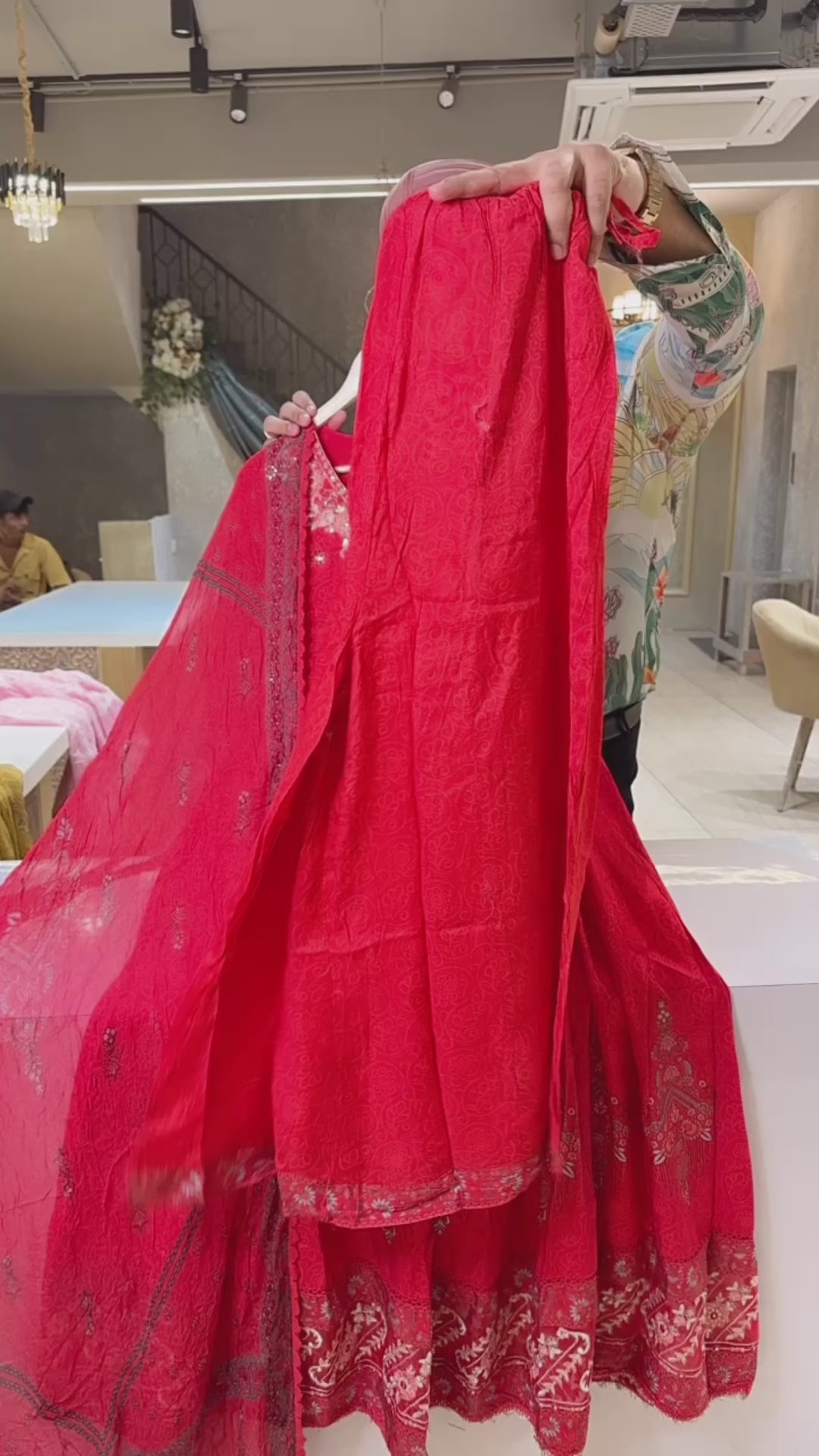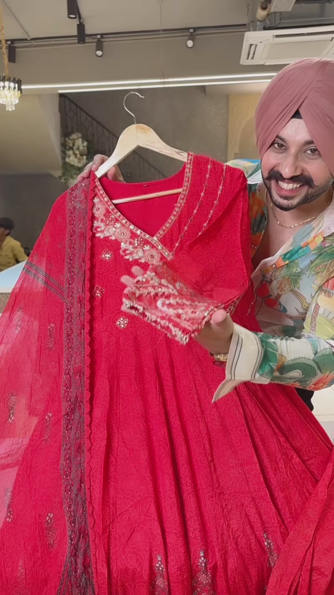 Deep Red Russian Crepe Angrakha heavy embroidered Anarkali Suits