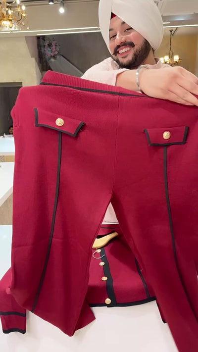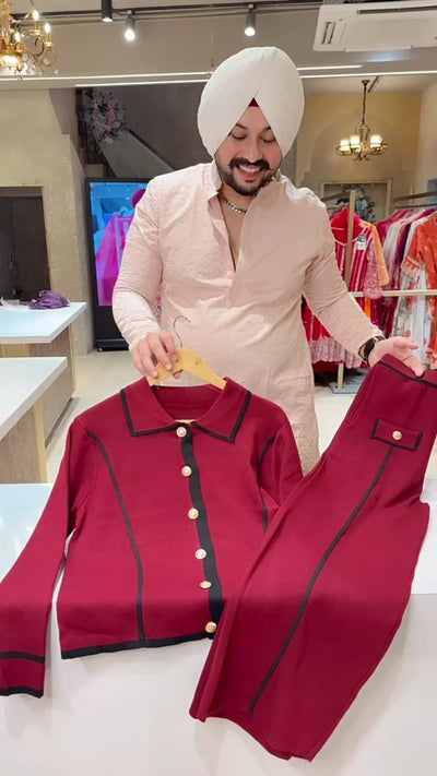 Maroon Imported Woolen Fully Strechable Coord set with Stylish pants