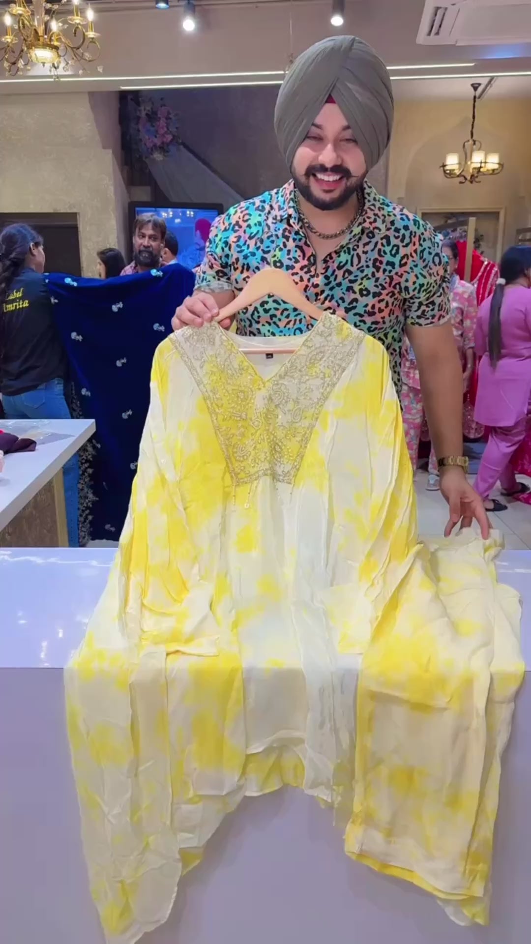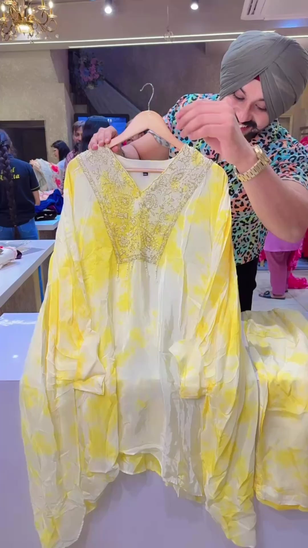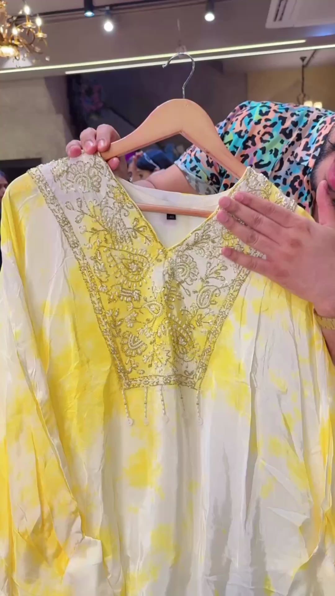 Ivory & yellow Crepe Designer Baggy Butterfly Coord set with Hand embroidery work on neck