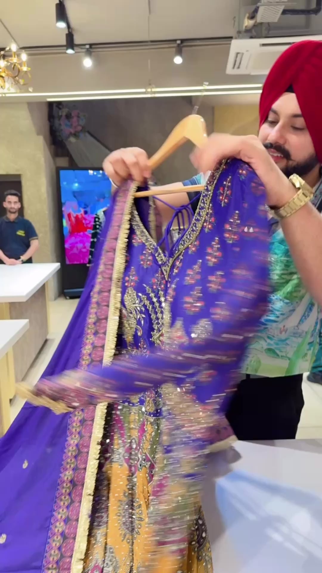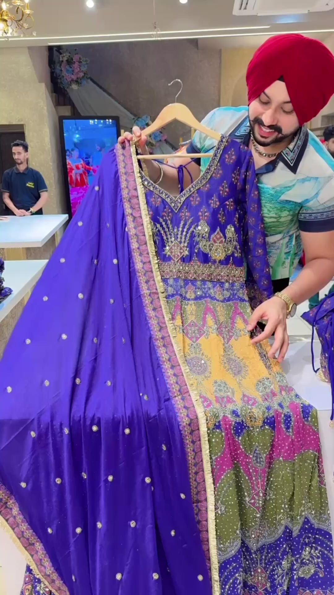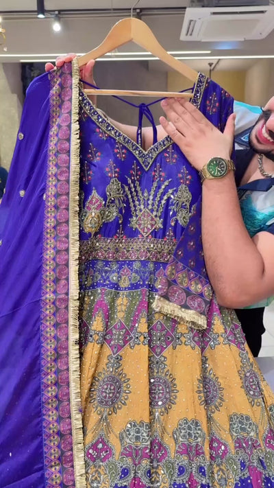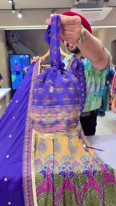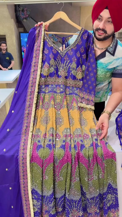 Purplish Blue Chinon Heavy Hand Embroidered & Mirror Pasting Anarkali Gown With Cute Potli & Sequins Worl Duppata