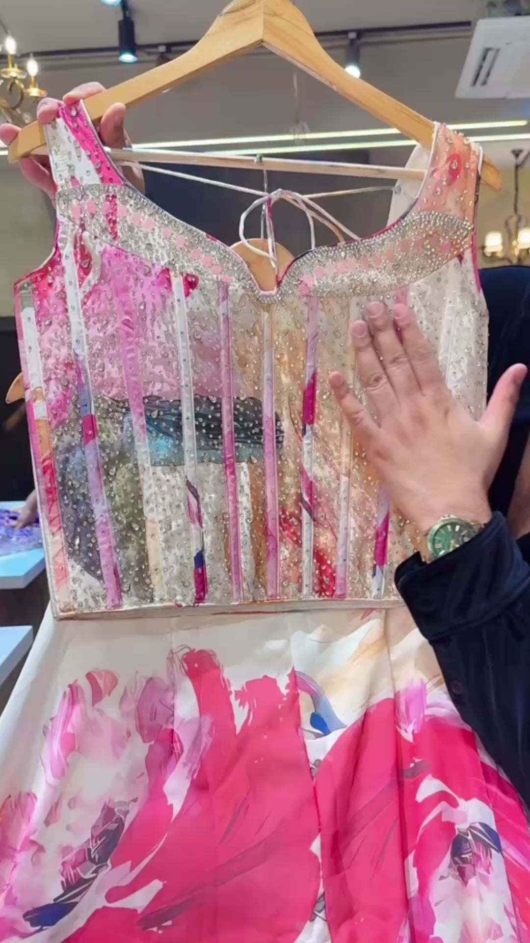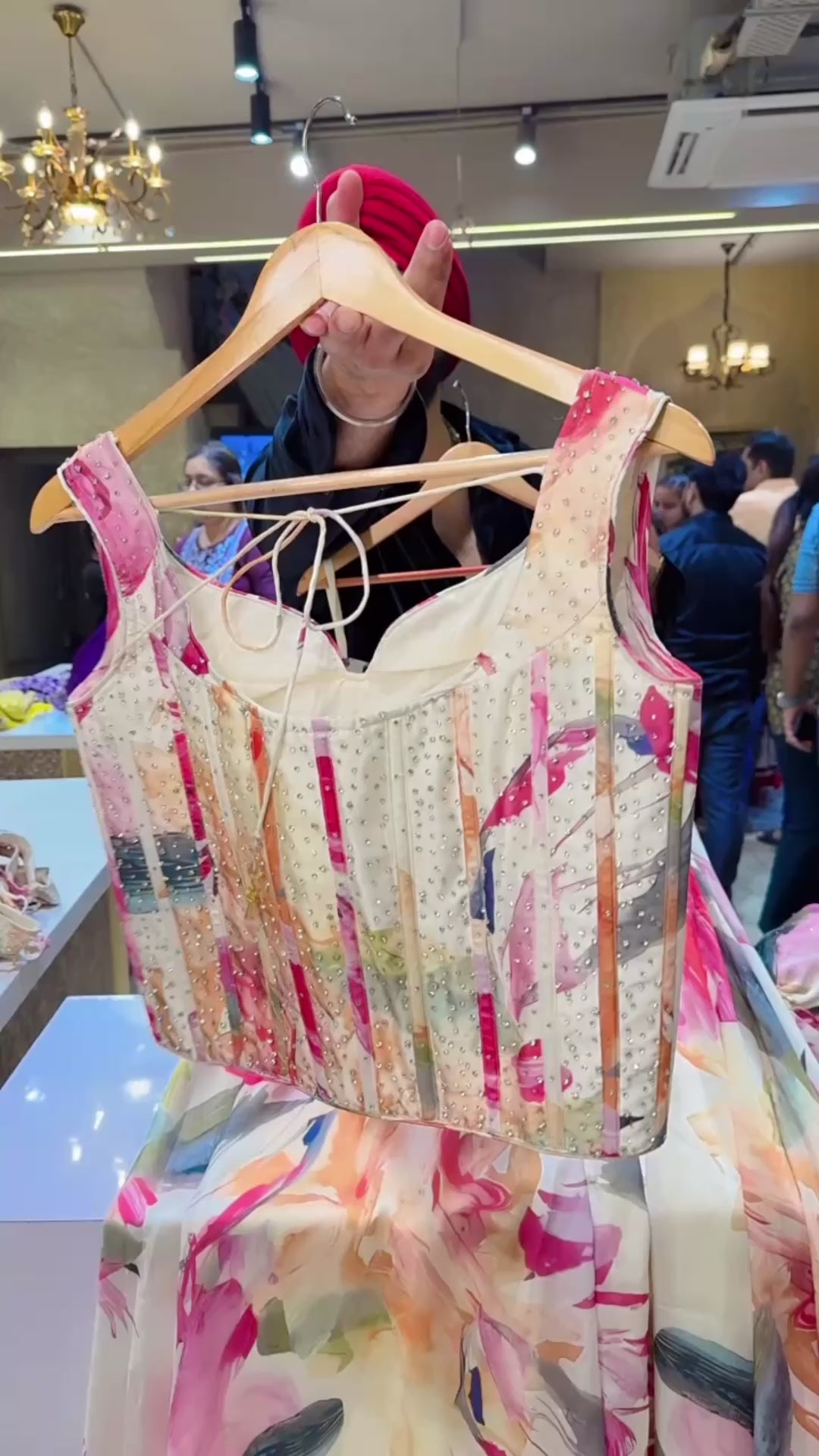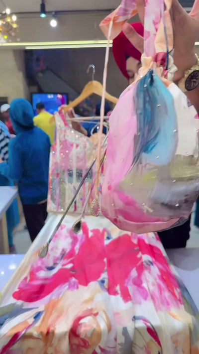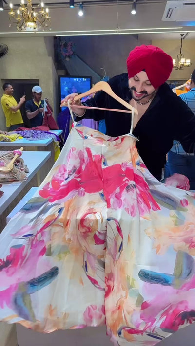Cream & Multicolored Satan Silk Full Fair bell bottom Set with Designer Corset