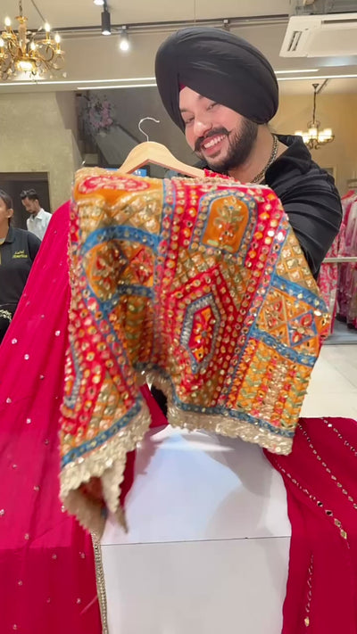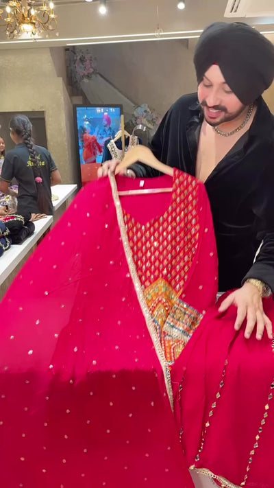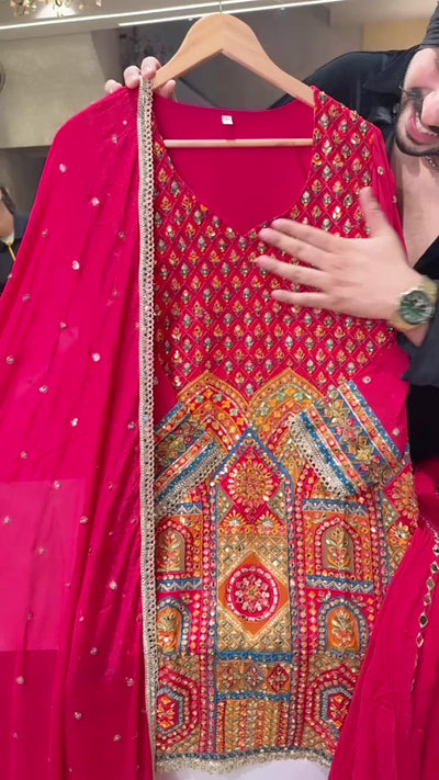 Rani Pink Embroidered & Mirror Work Full Flair Sharara suit with Beautiful Sequins Work Duppata