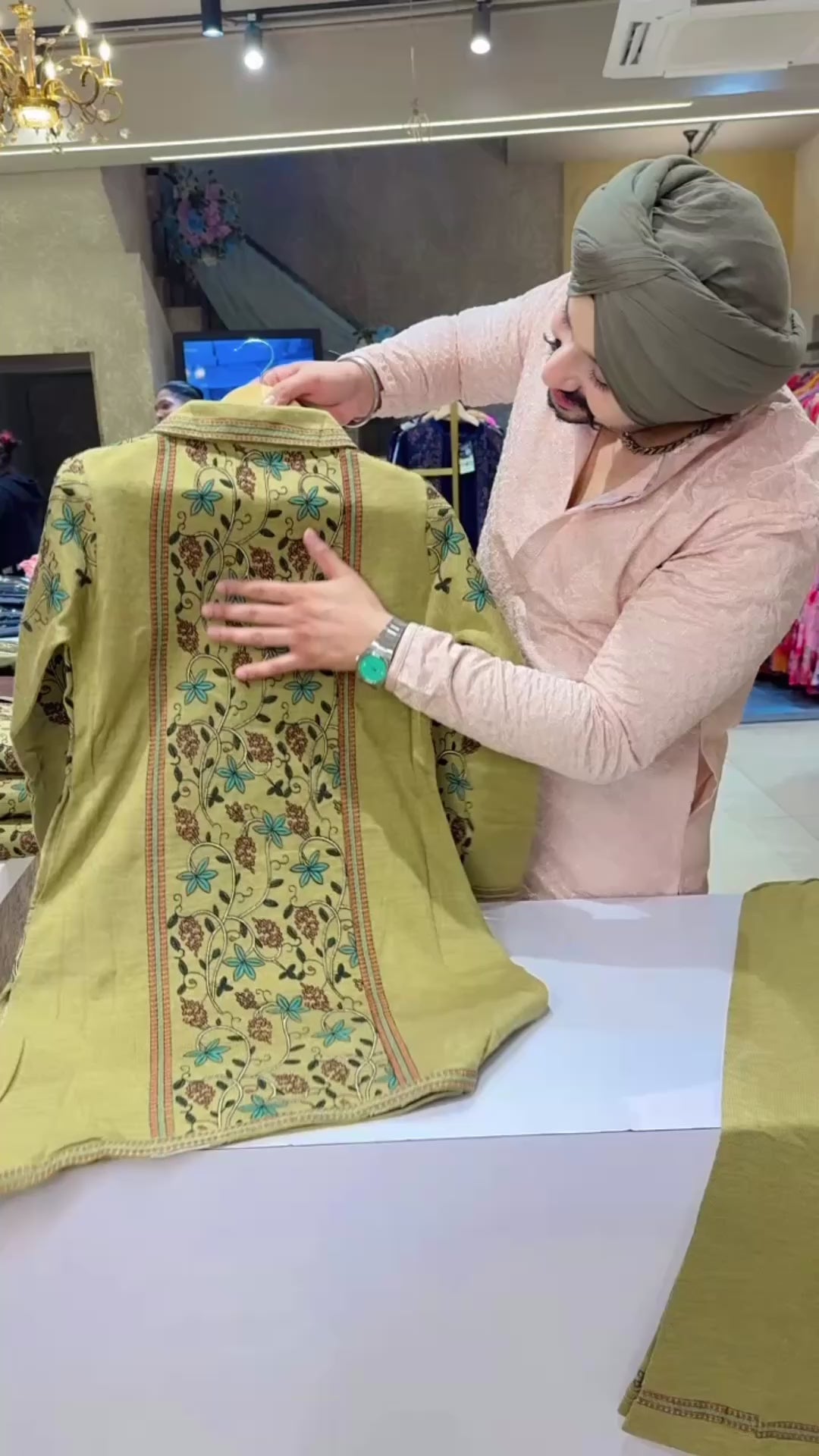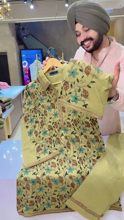Light olive Premium Woolen Front & Back Heavy Embroidered Party Wear Coord set