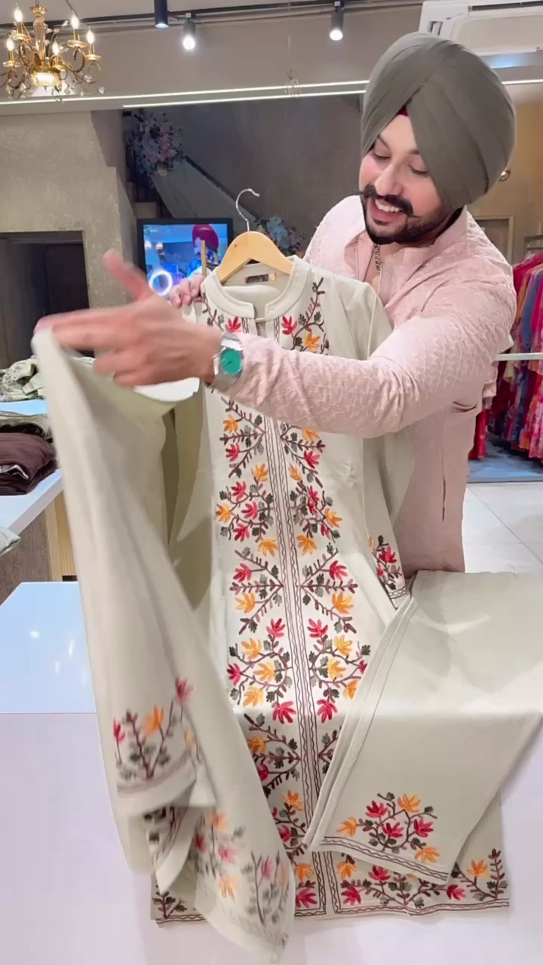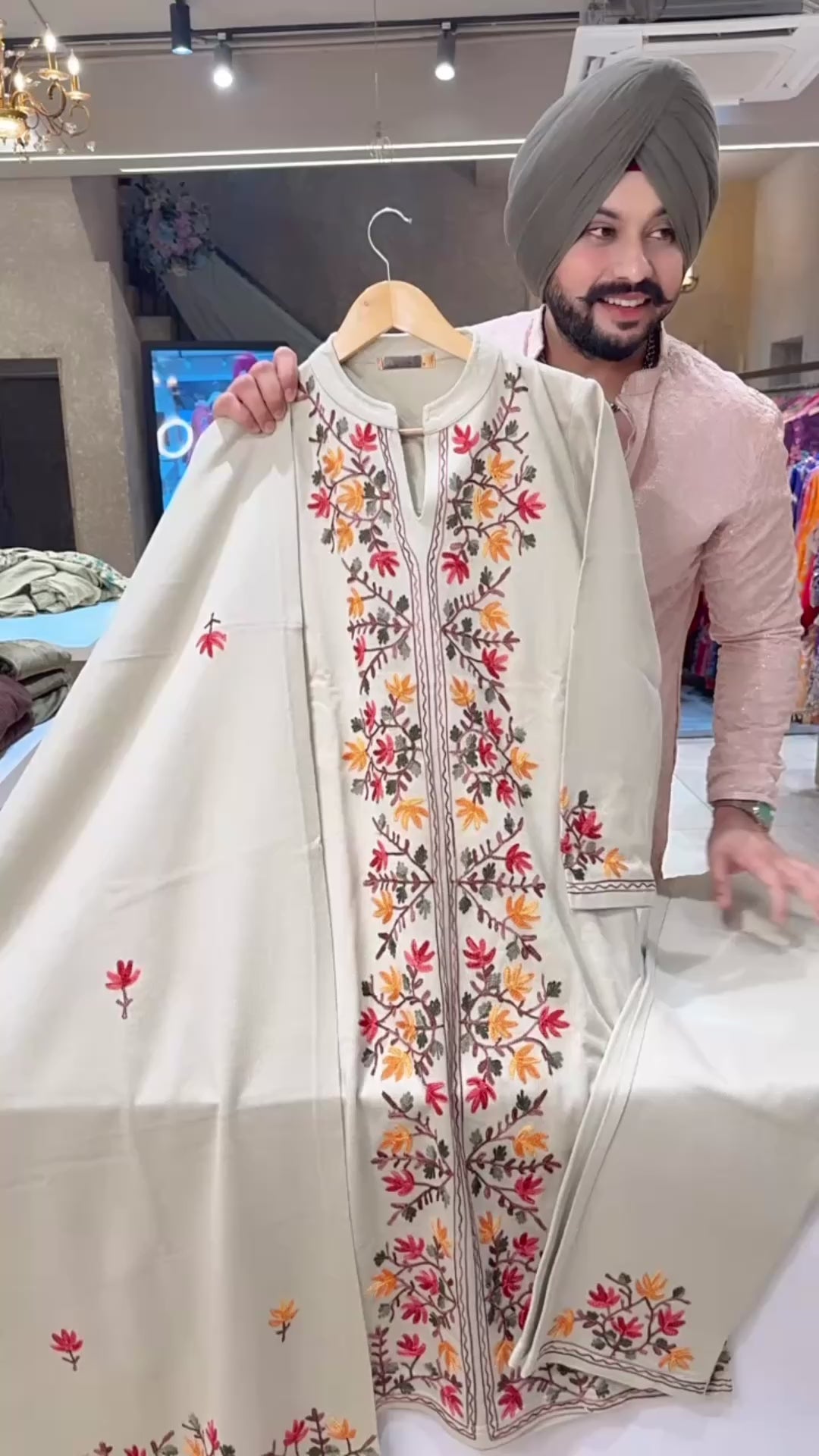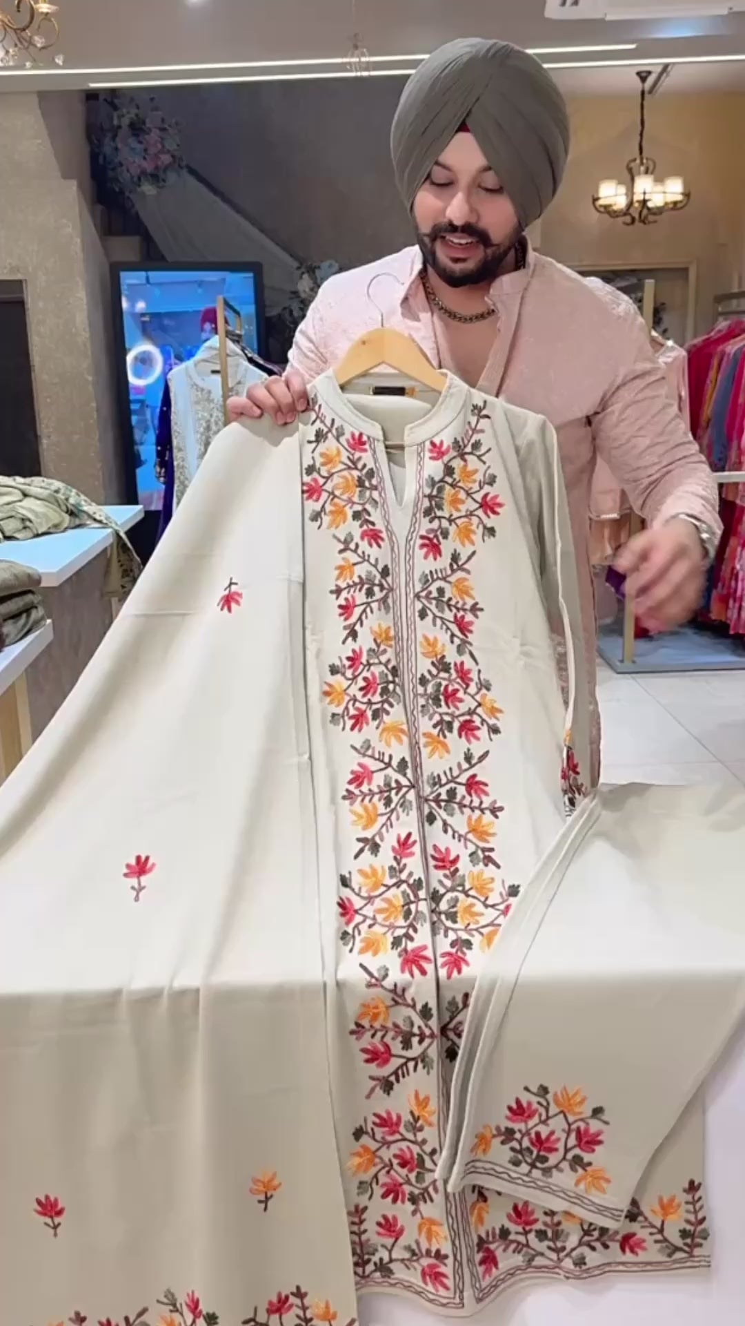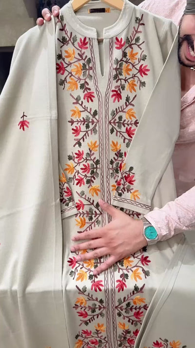 Light Beige Woolen Heavy Kashmiri Embroidered Party Wear Straight Suit with Beautiful Duppata