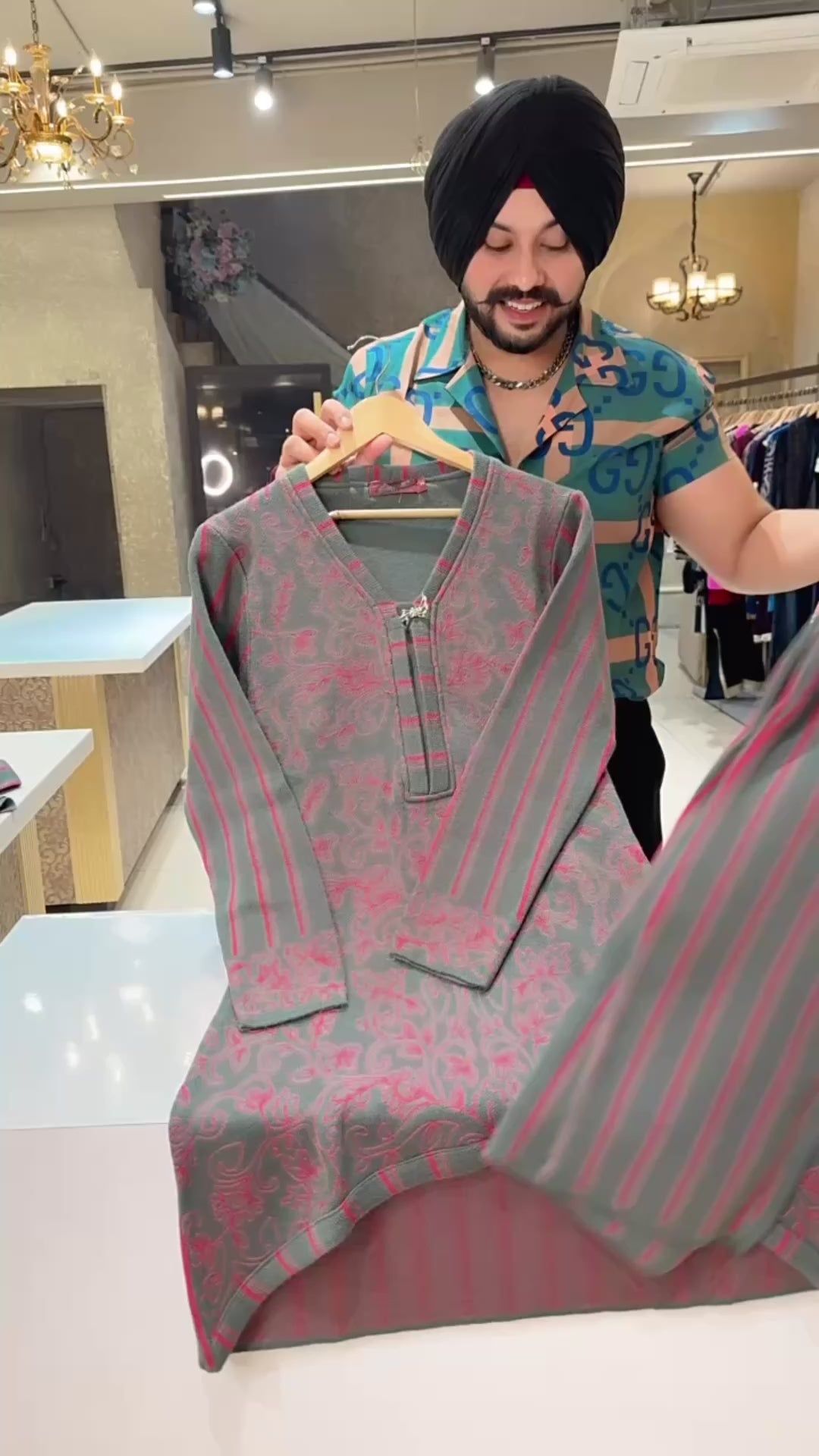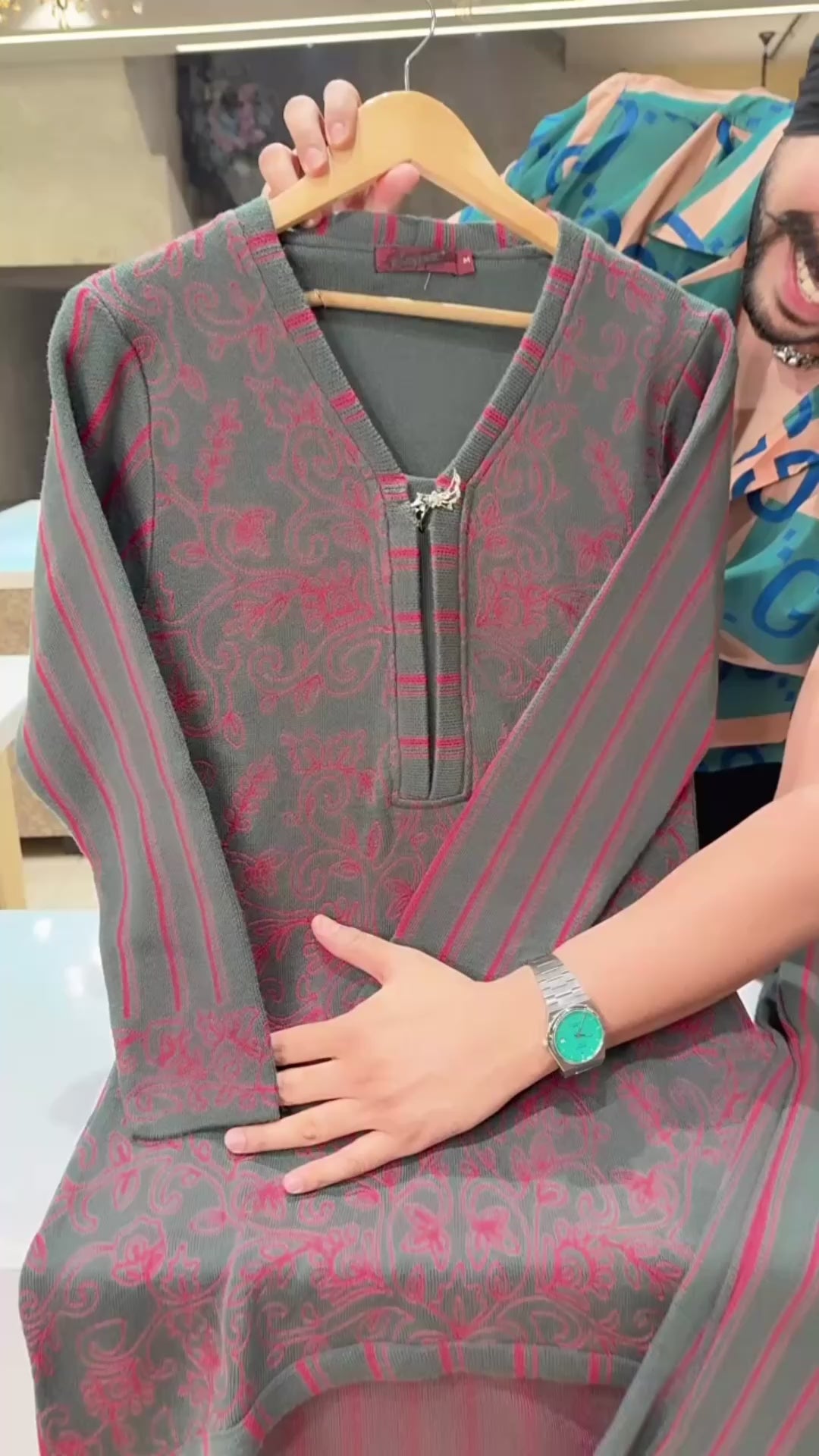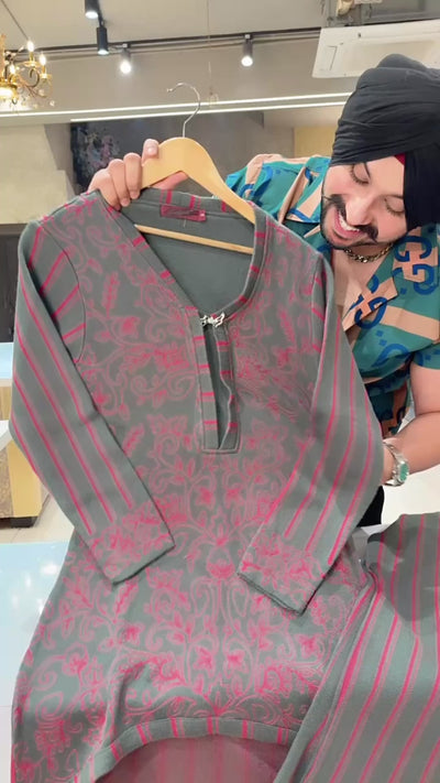 Grey & Pink knitting Woolen Embroidered High Low Coord set