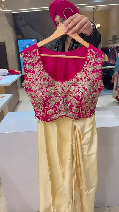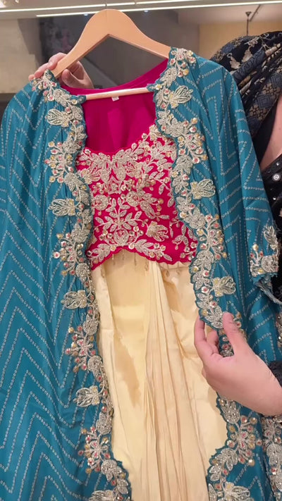 Rani & Teel Crepe Heavy embroidered Drape Crop Set with Stylish Embroidered Cape Shrug