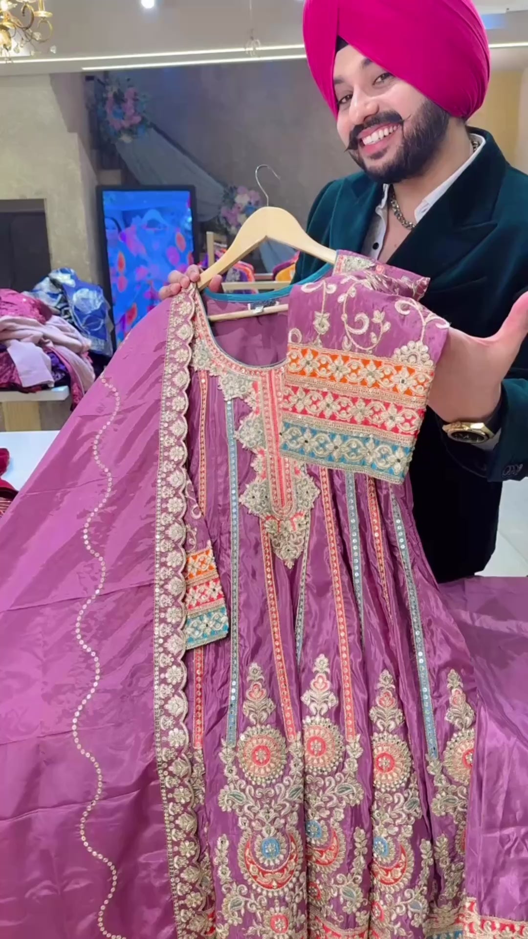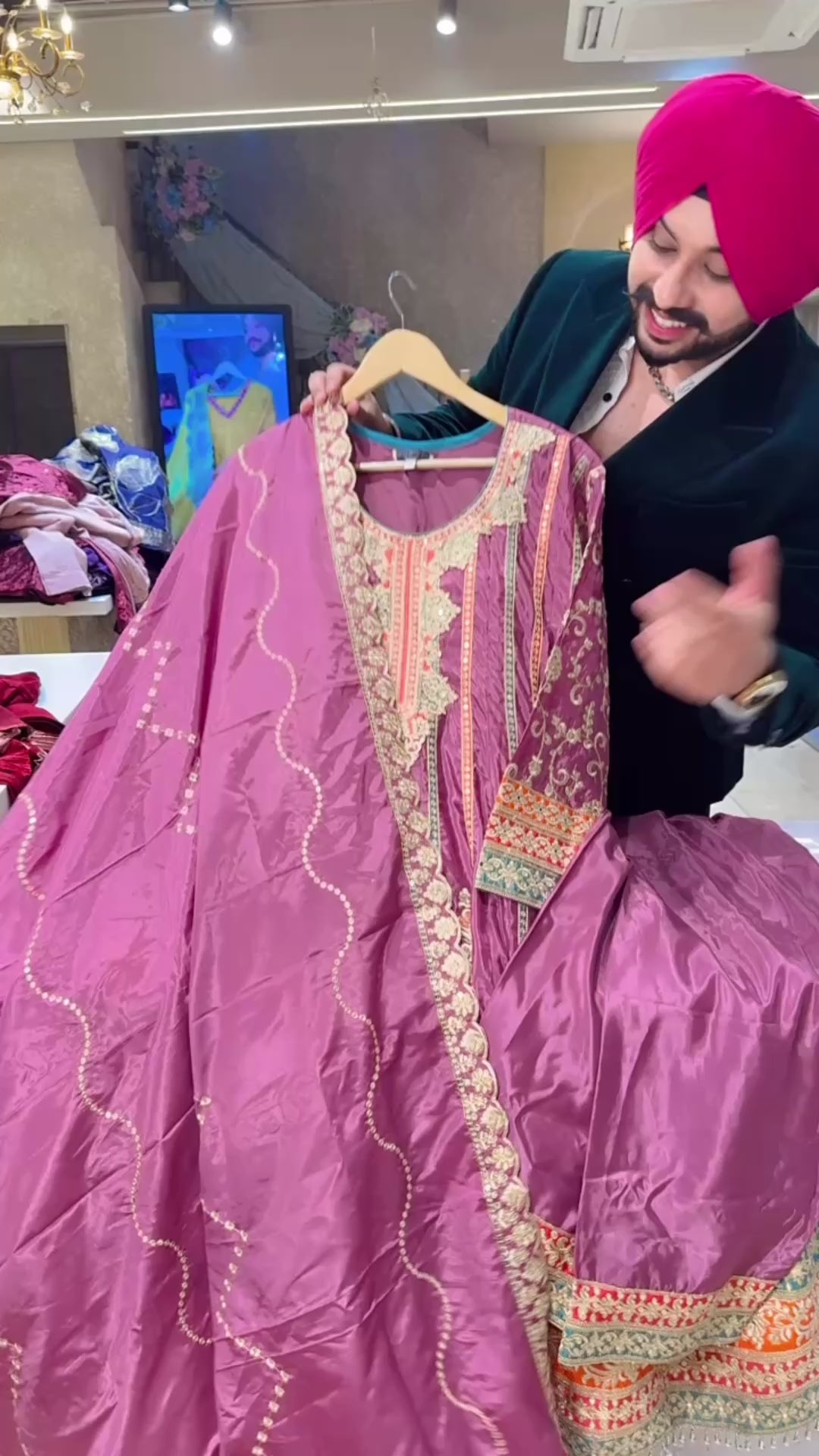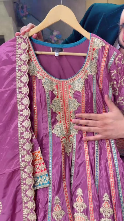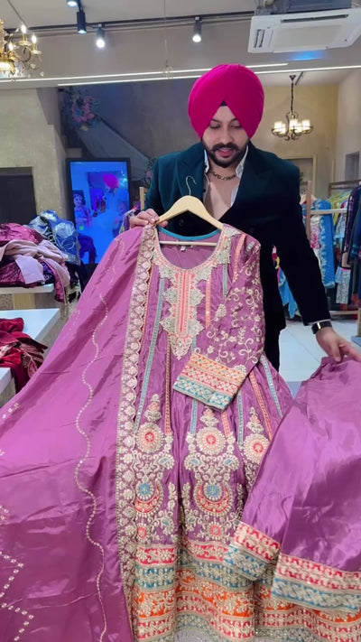 Onion pink Crepe Fully Embroidered heavy Anarkali suit With Beautiful Crepe Duppata