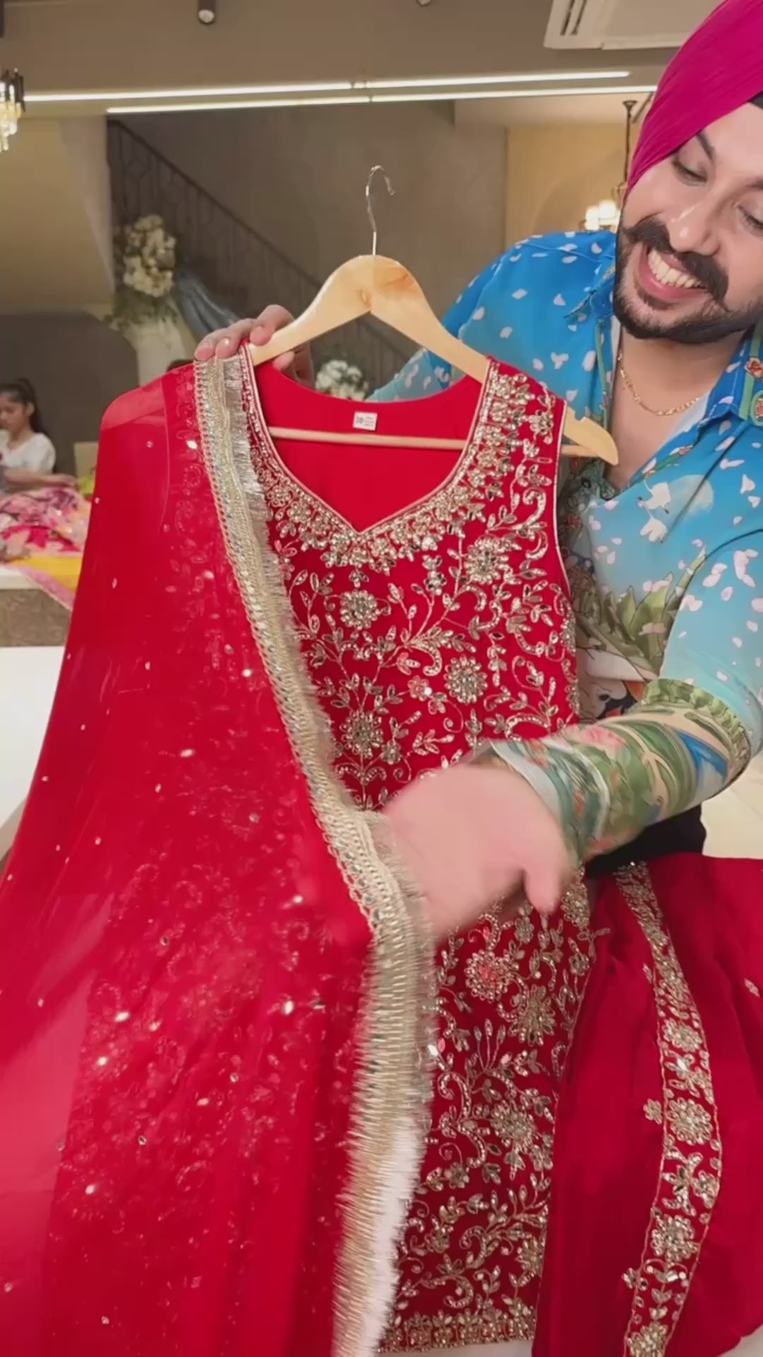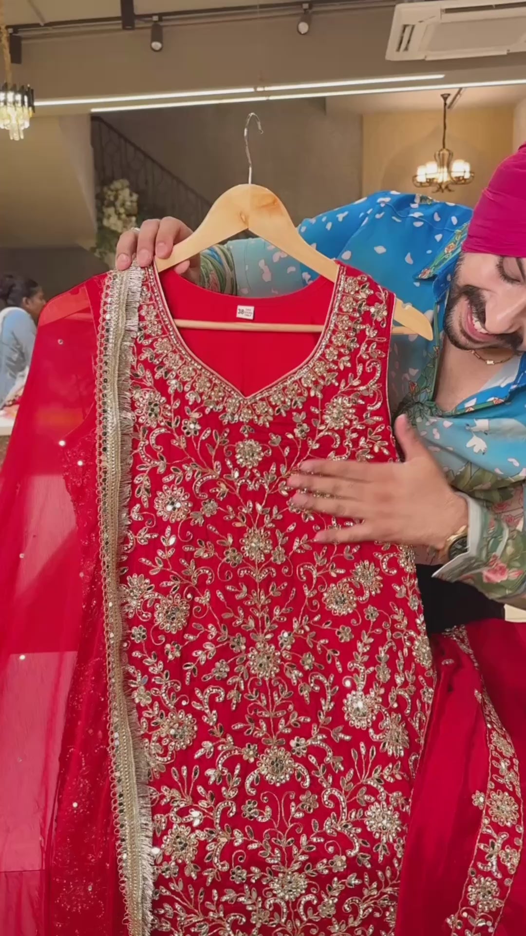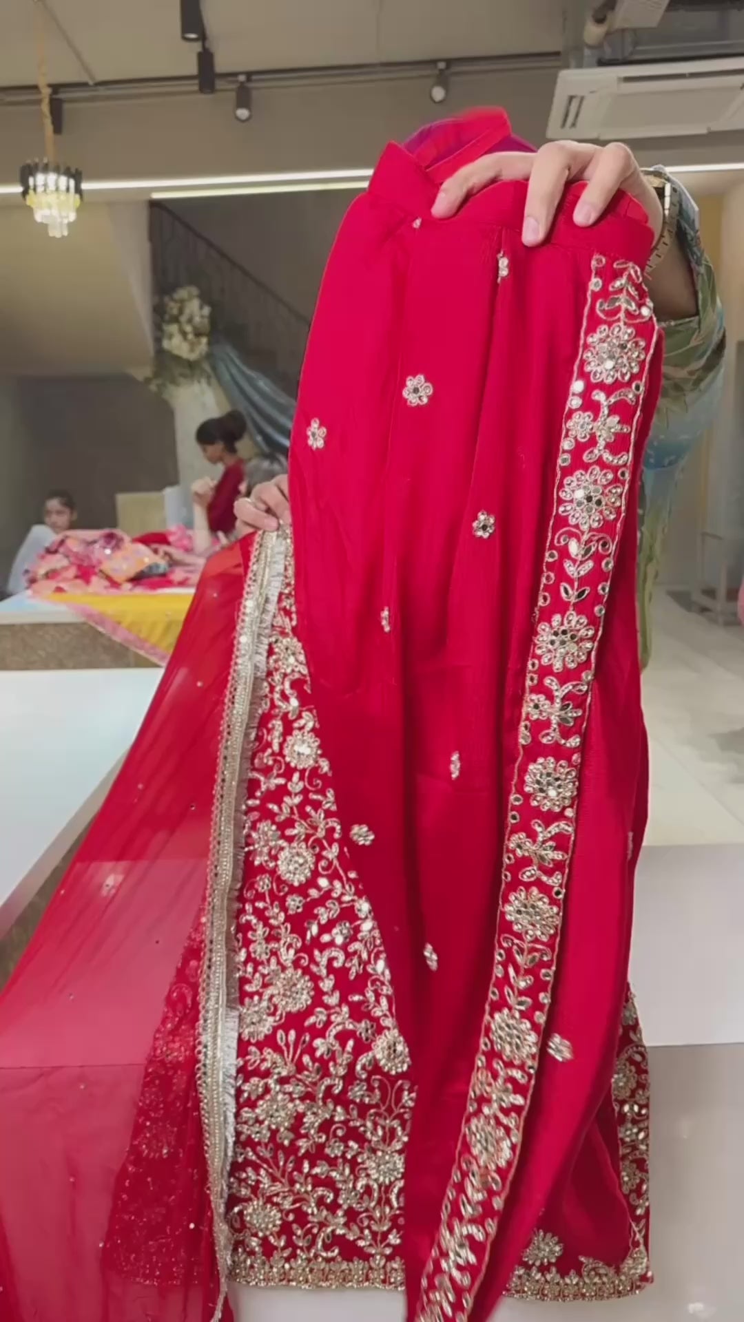 Vibrant Red Chinon Heavy embroidered & Mirror Pasting Tulip Salwar Suit