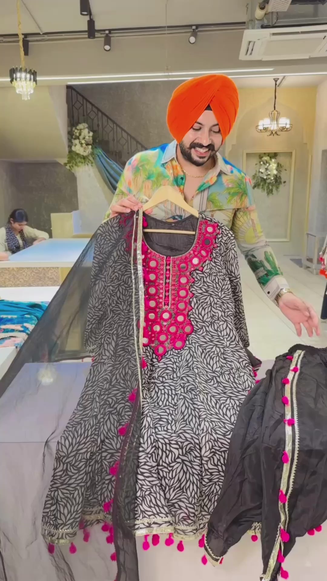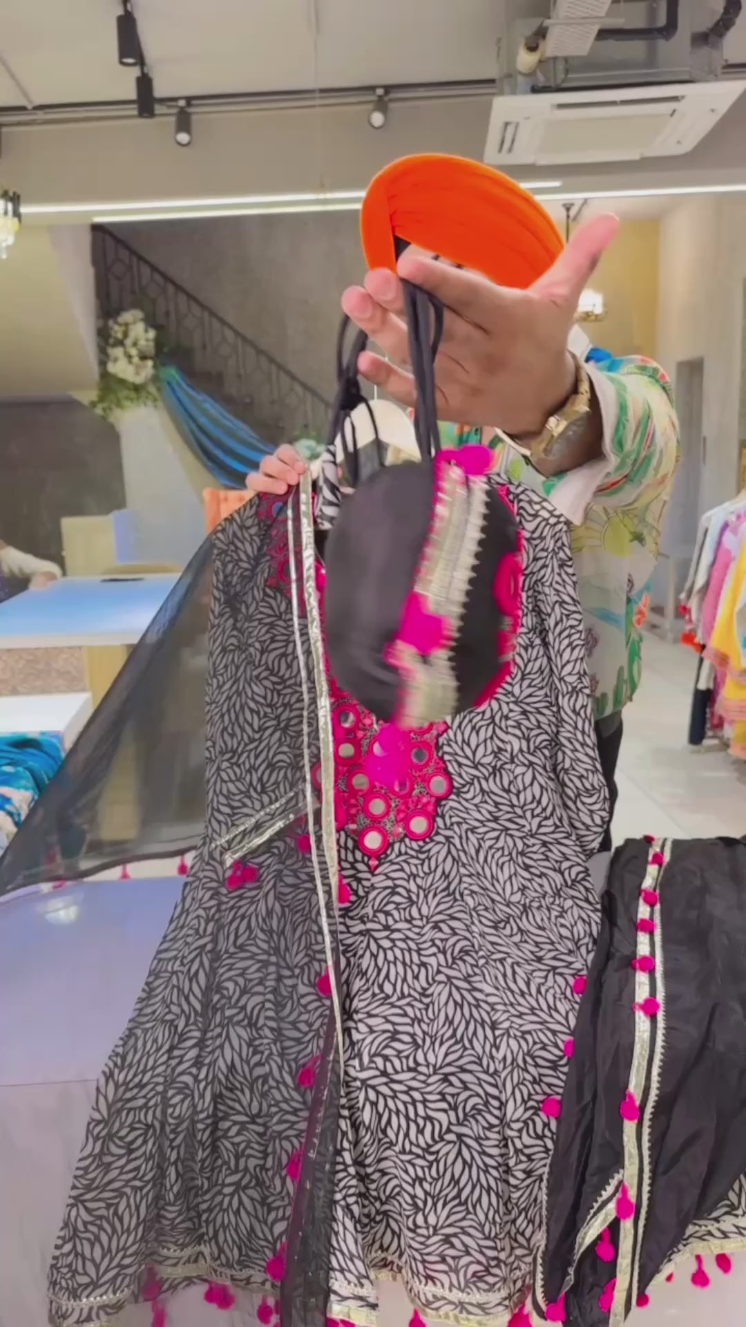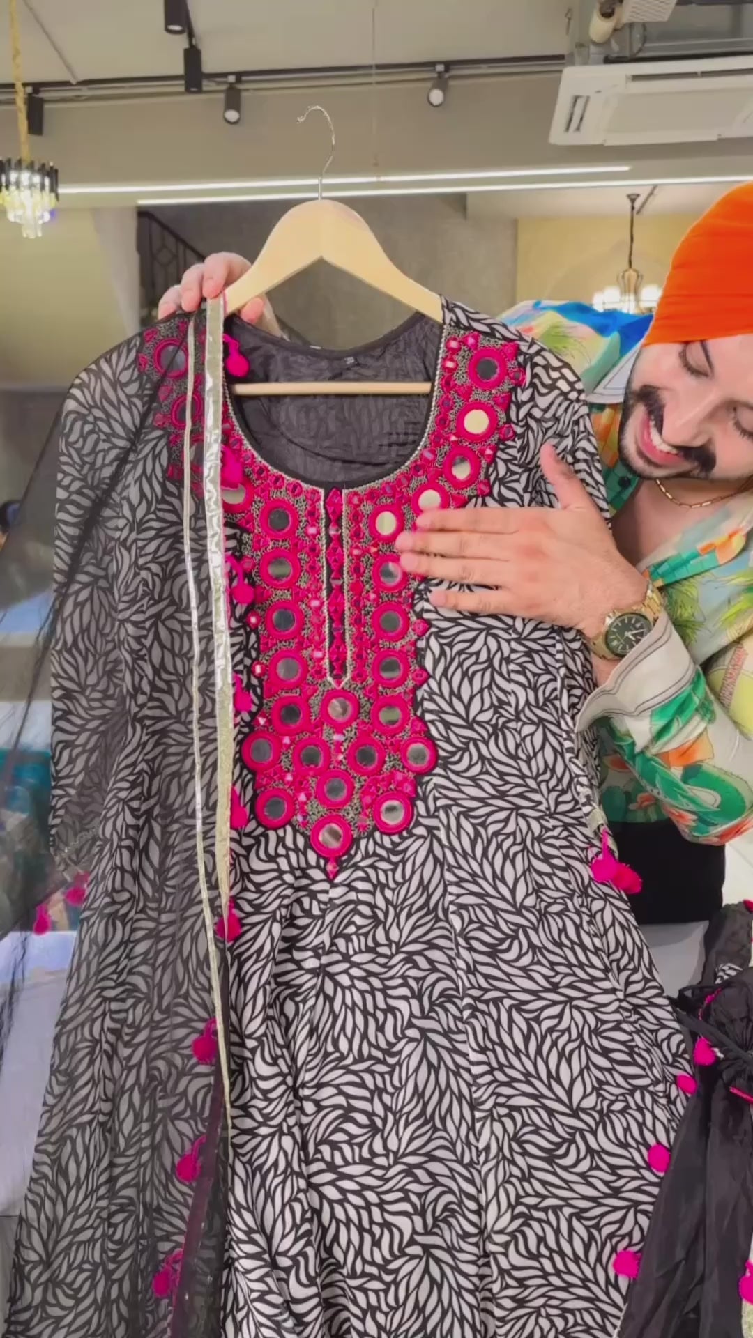 Black Georgette Girlish Pom Pom Paplum Dhoti suit with Cute Potli