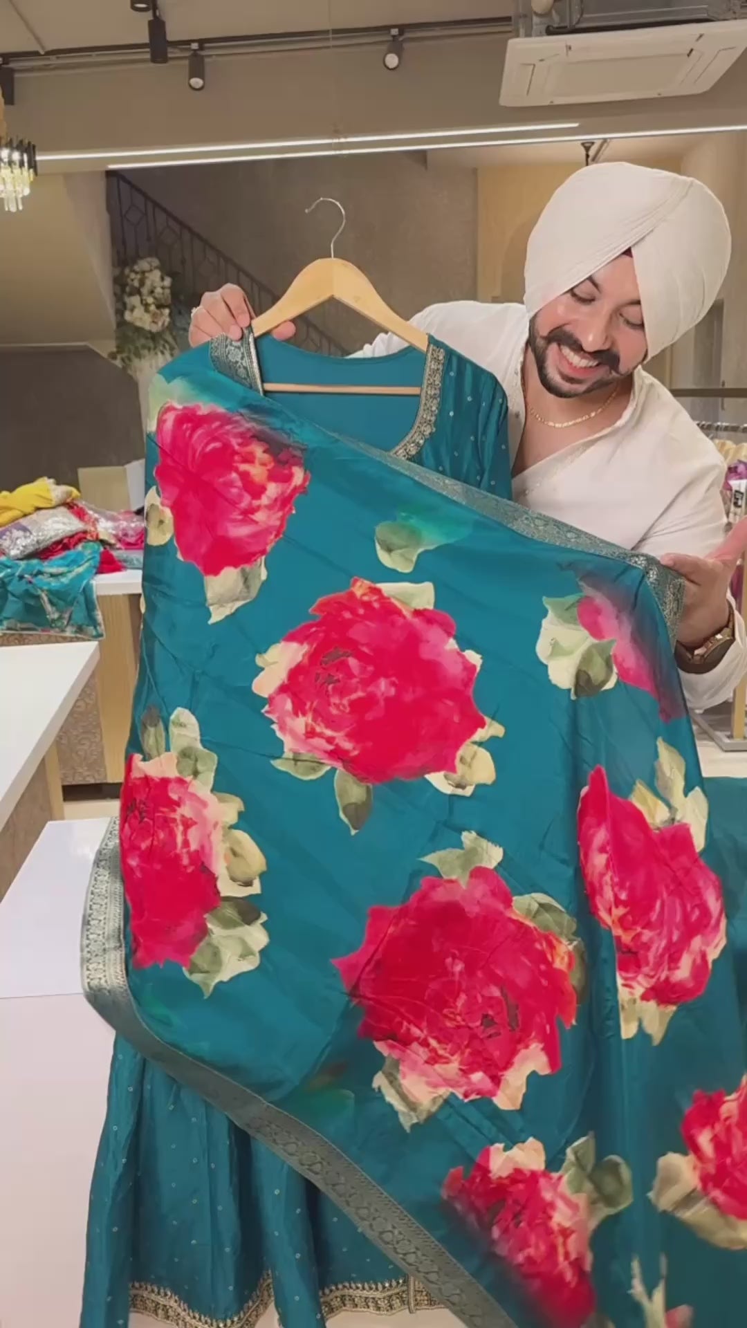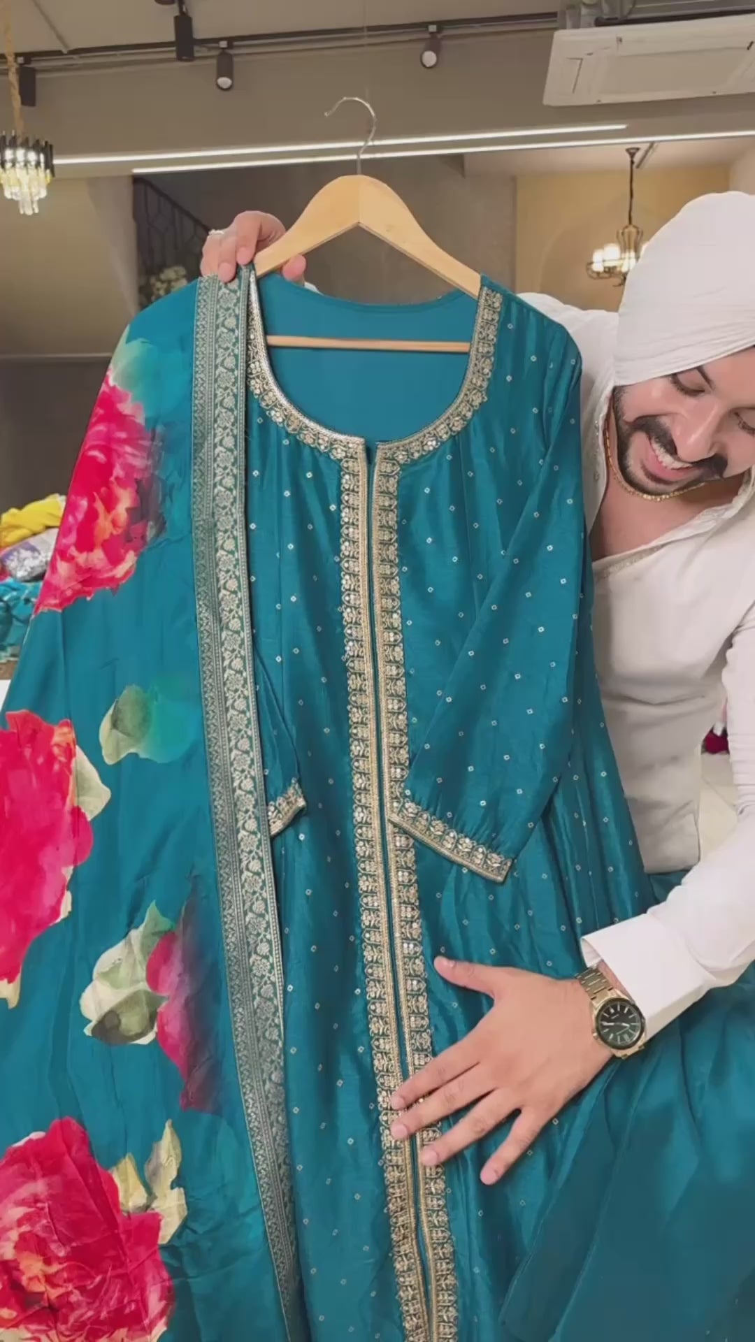 Peacock Chinon Embroidered Front slit Anarkali Suit with Beautiful Digital Floral print Duppata