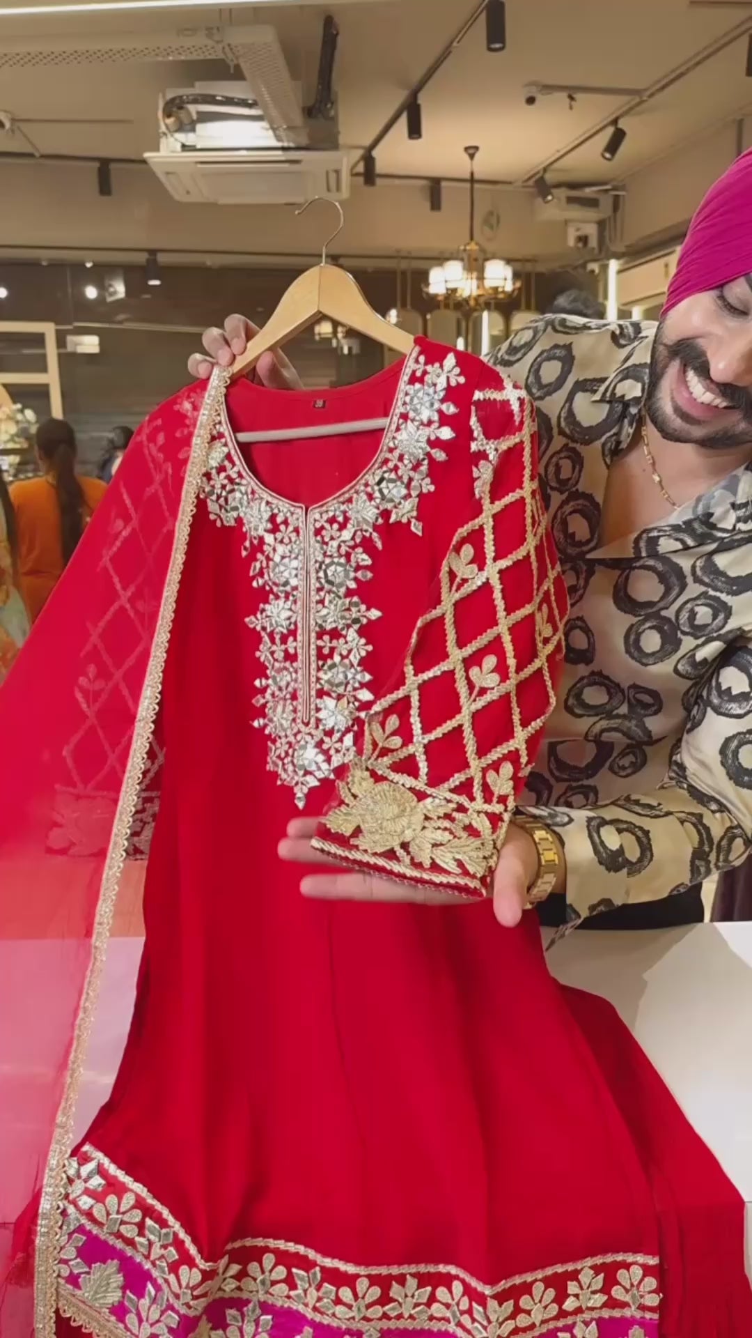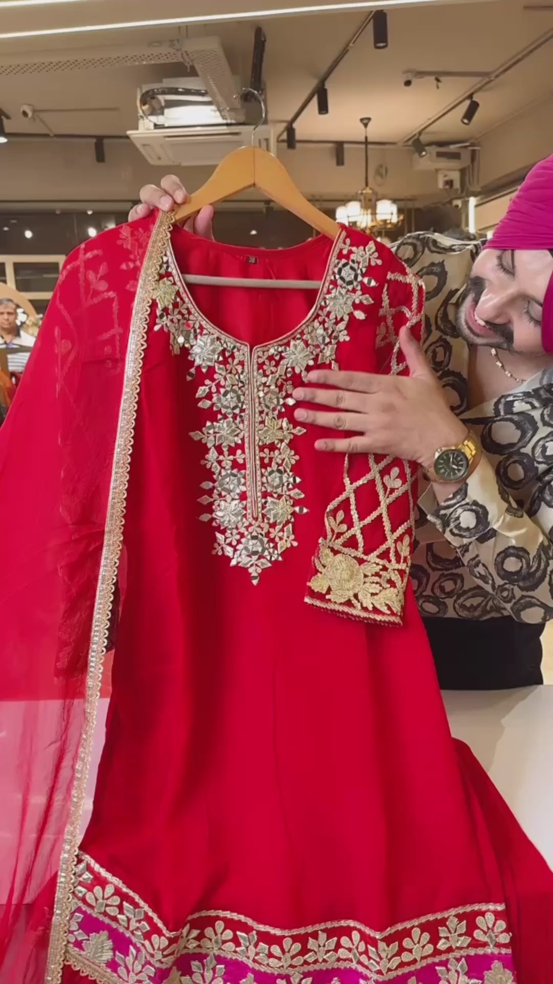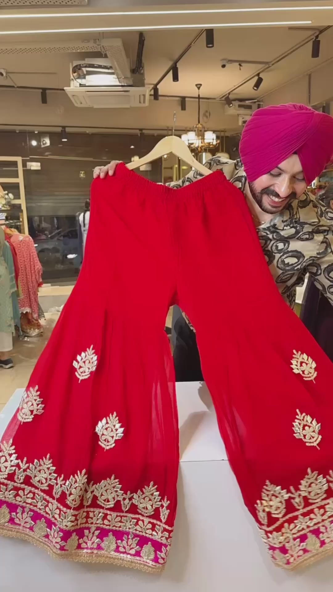 Vibrant Red Georgette Embroidered Garara set with Heavy gotta work on Sleeves & Garara
