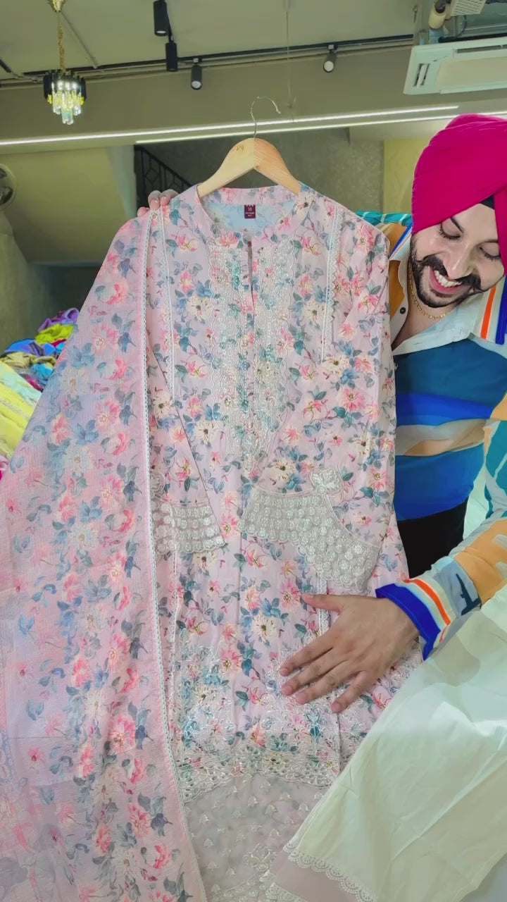 Baby pink Pure cotton embroidered Pakistani suit with Plazo