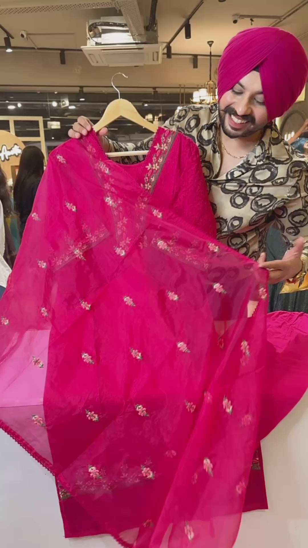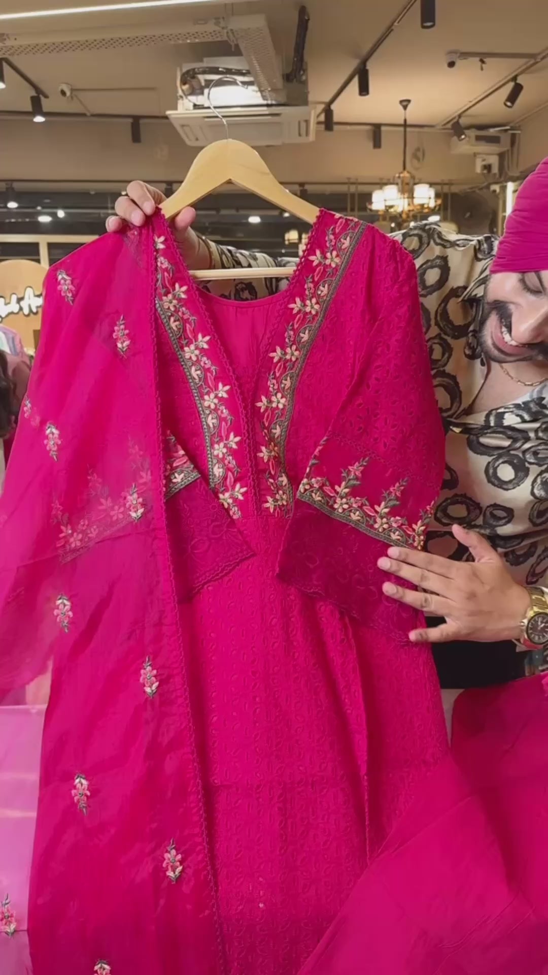 Hot Pink Pure Cotton Shifli Work Pakistani Suit with Embroidered organza Duppata