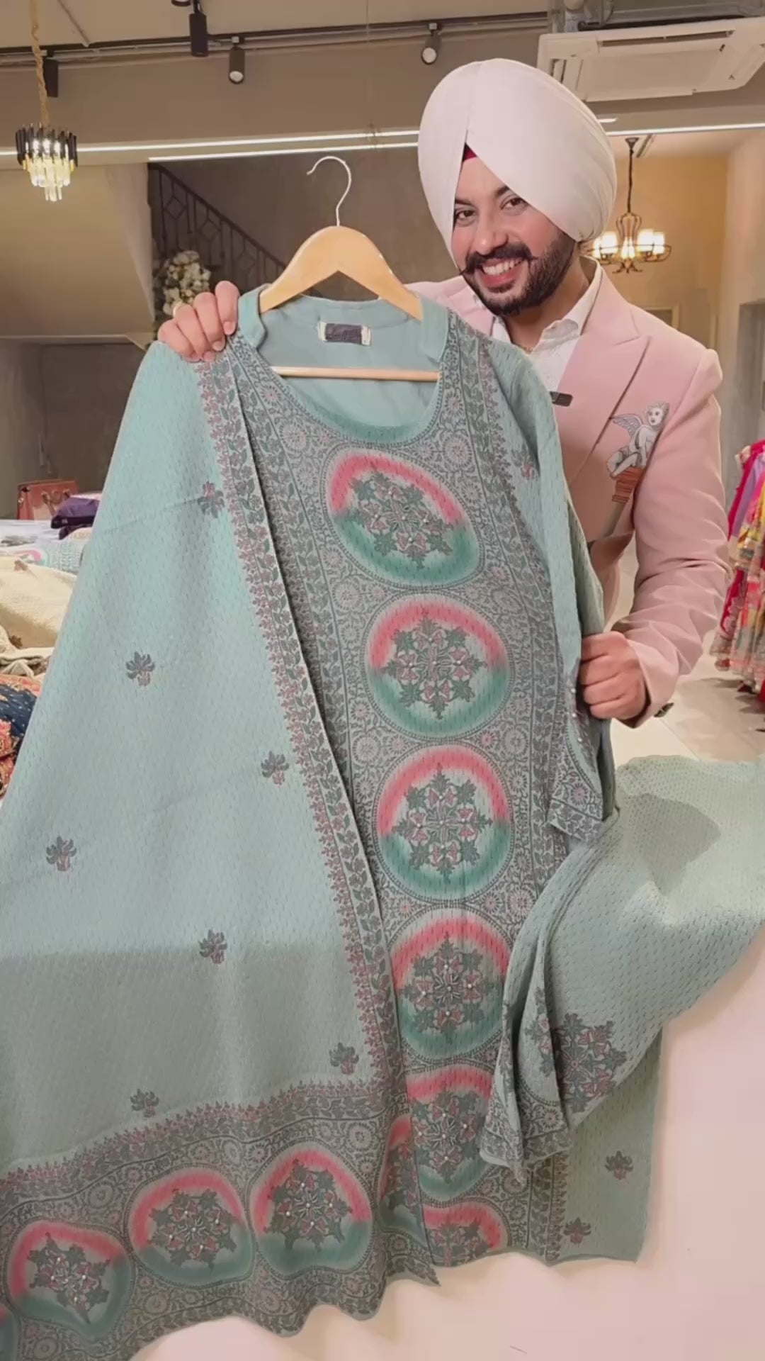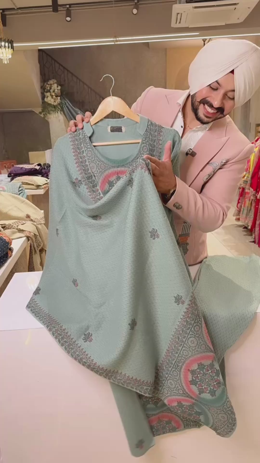 Light Sea Blue Premium Strechable Woolen Straight Suit with Beautiful Duppata