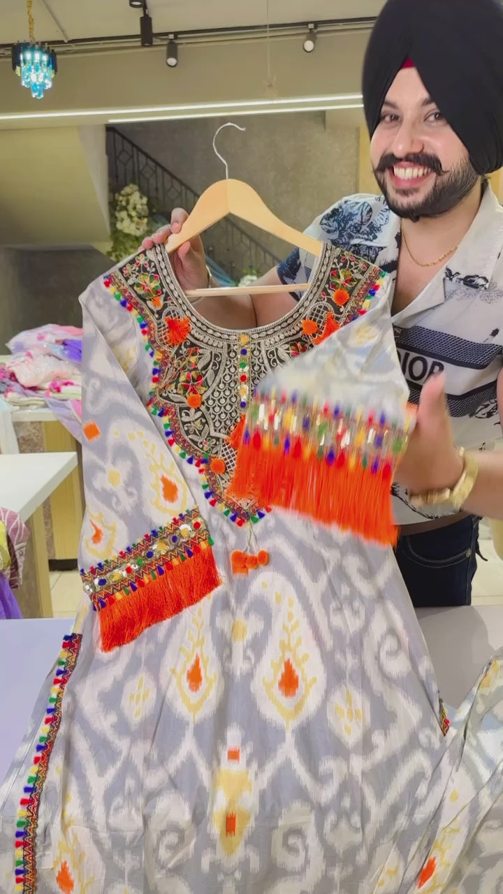 Grey pure cotton Semiformal Coord set with heavy embroidery patch on neck