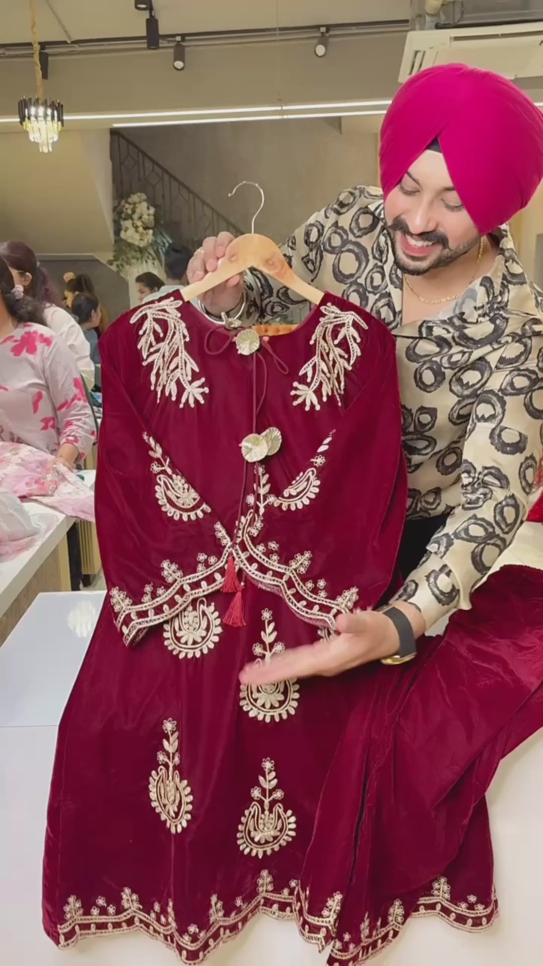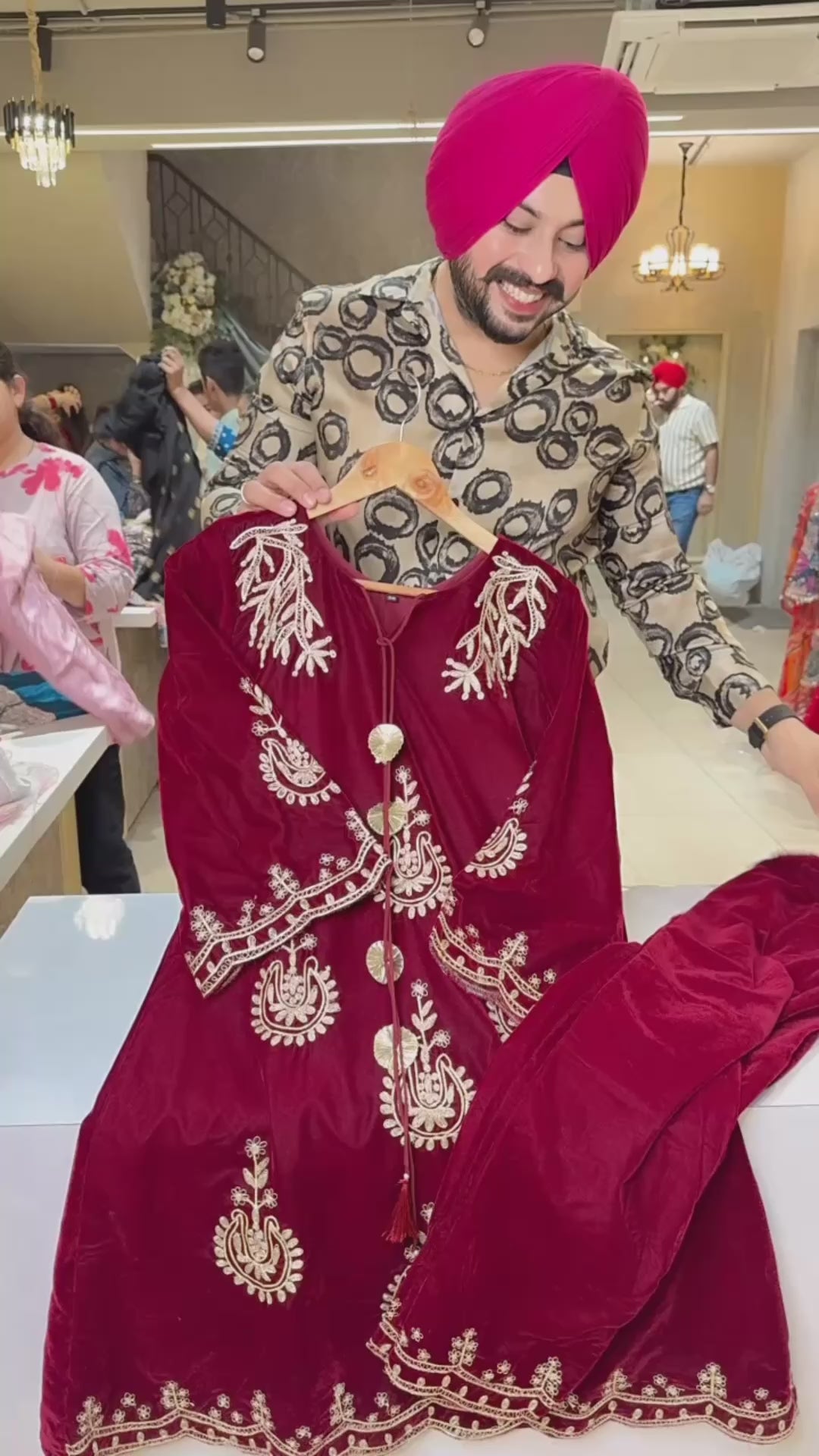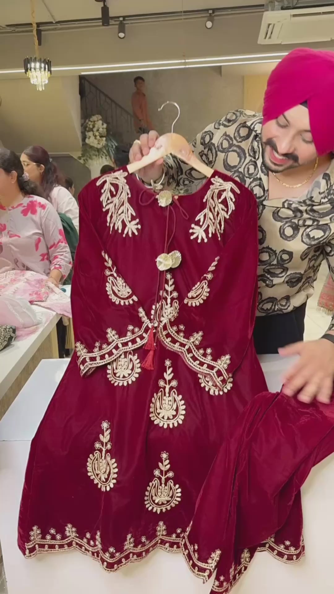 Maroon Velvet Heavy Embroidered Pakistani Coord set