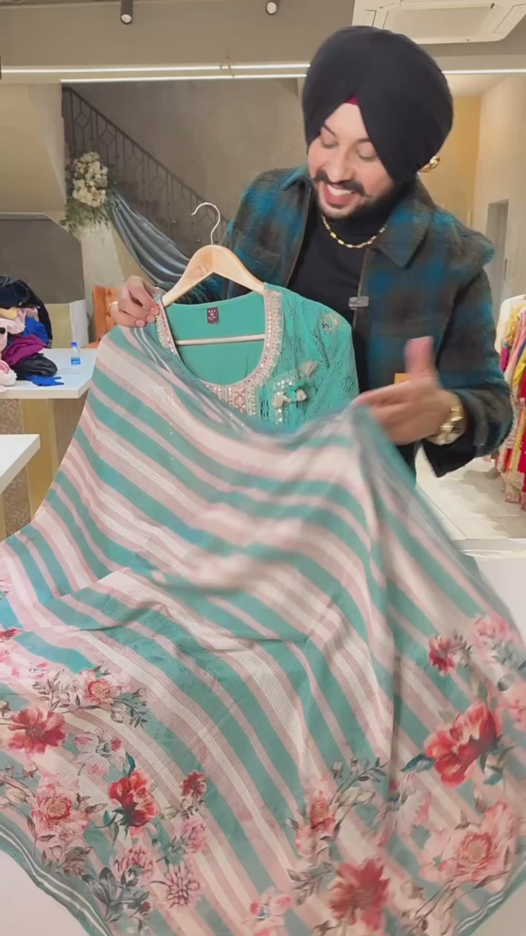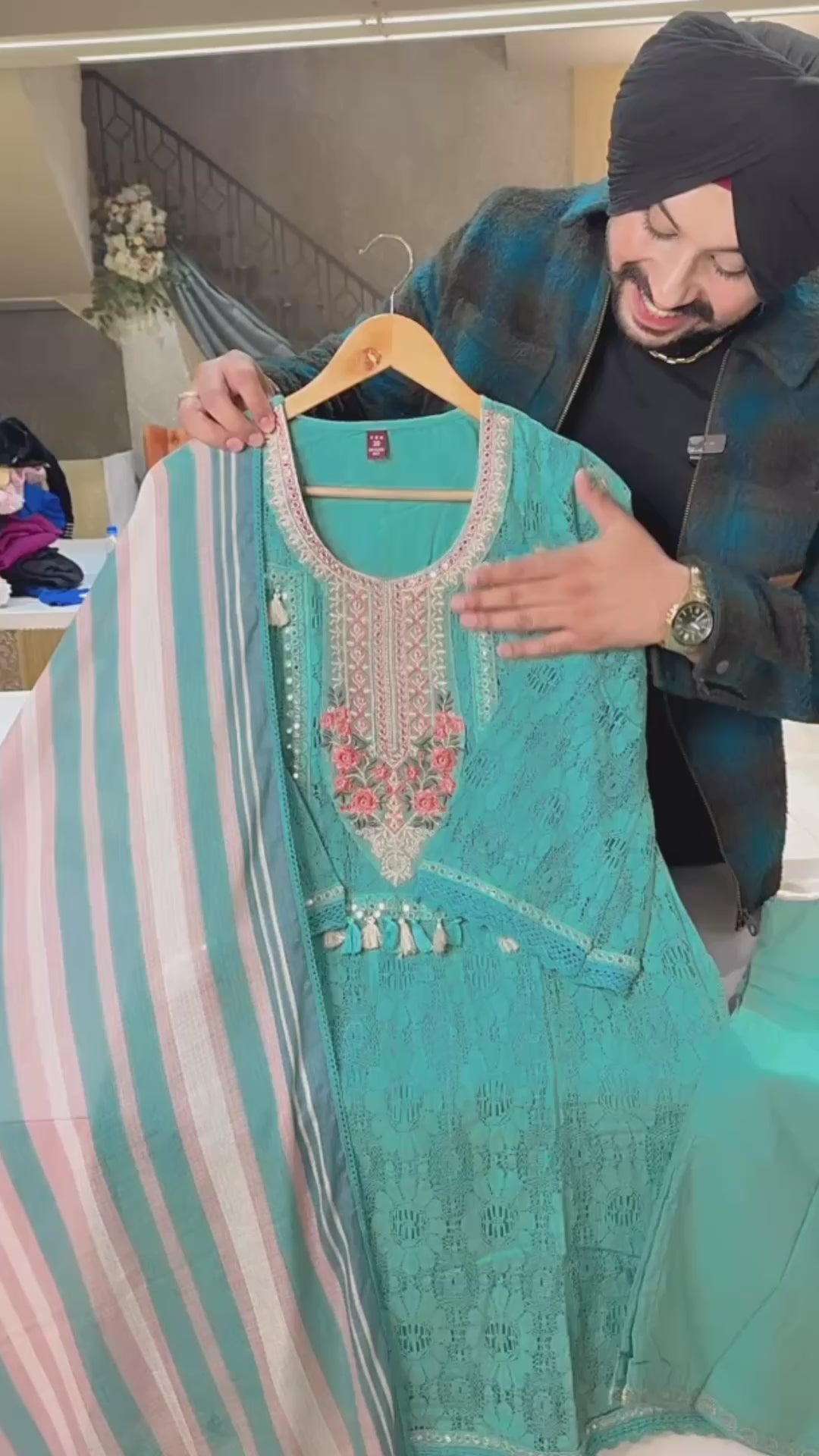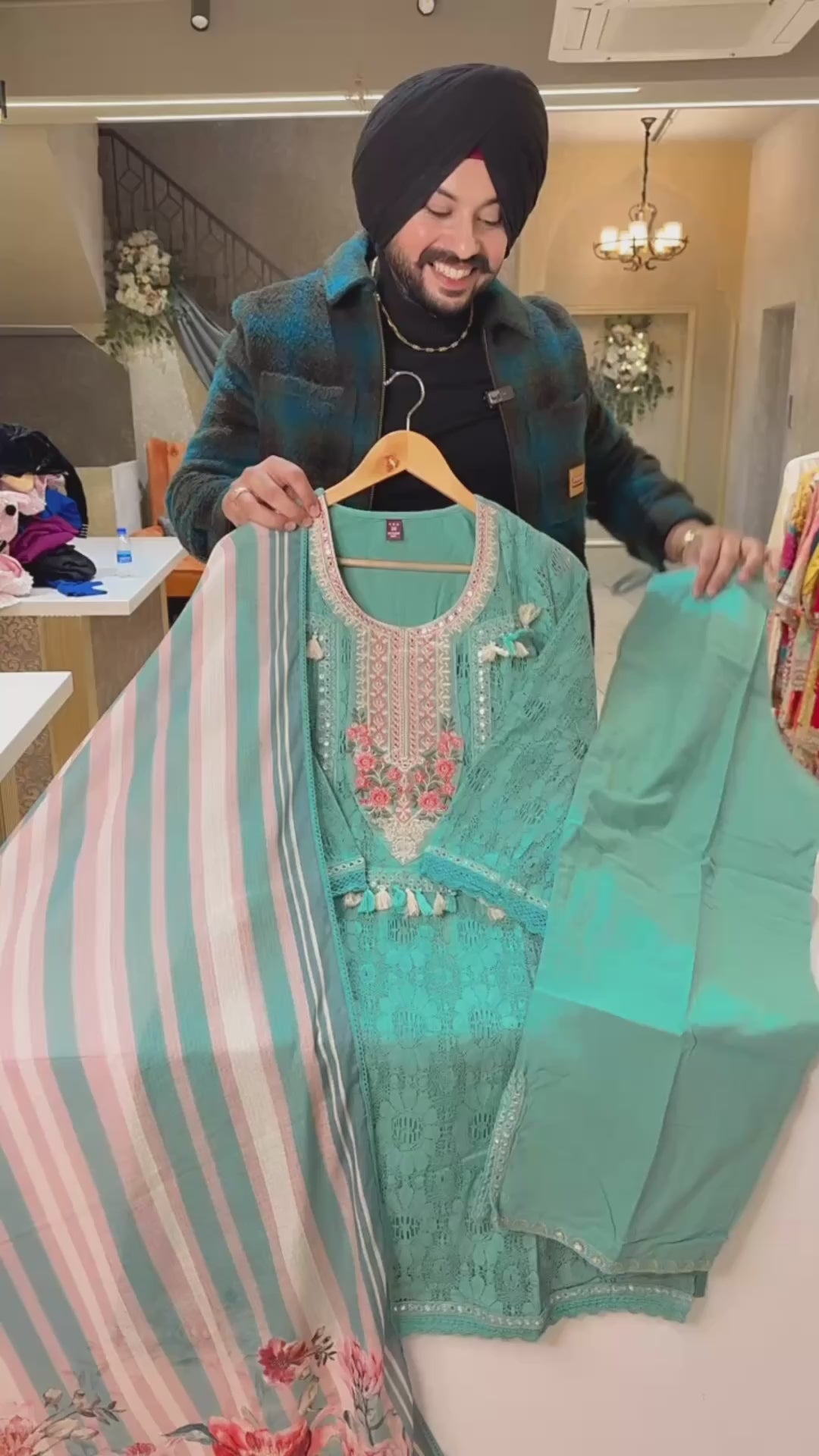 Sea Green Crochet Lace Indo western Suit with Floral Duppata