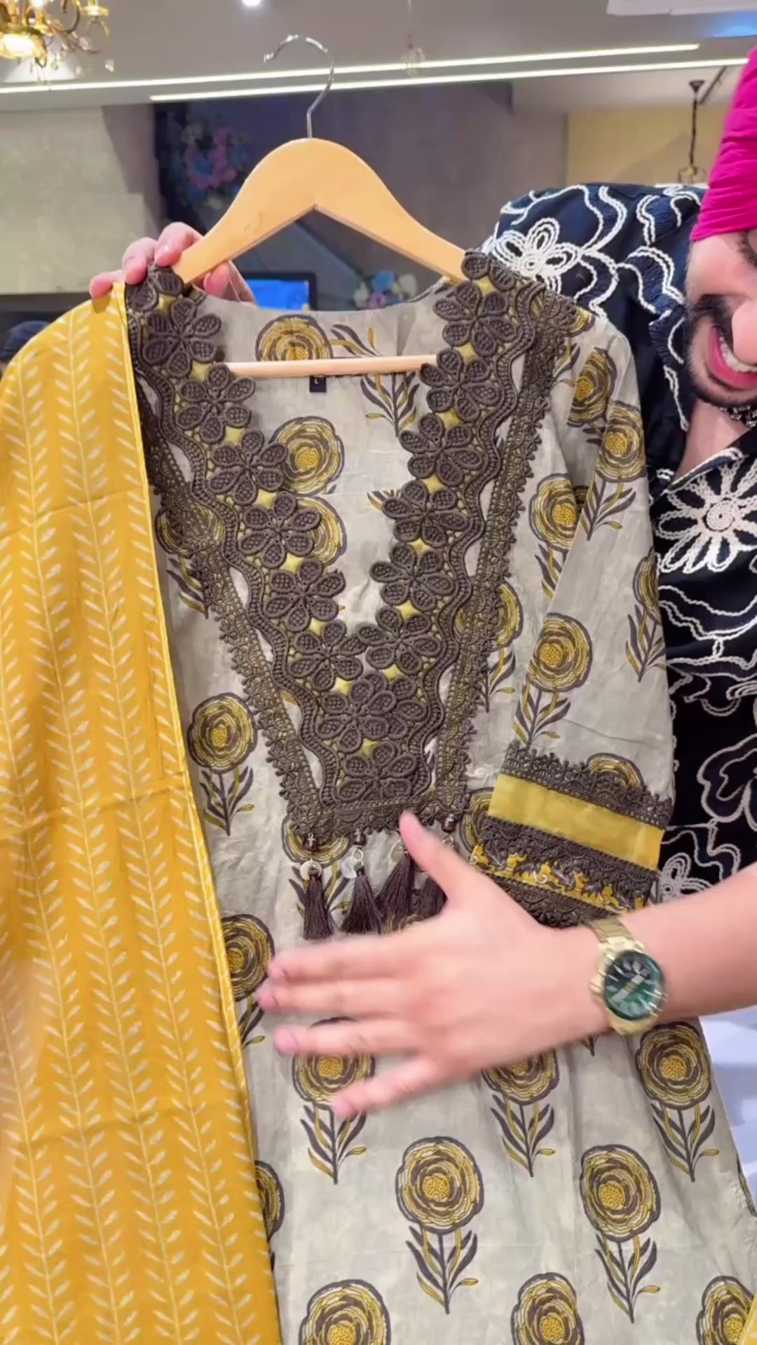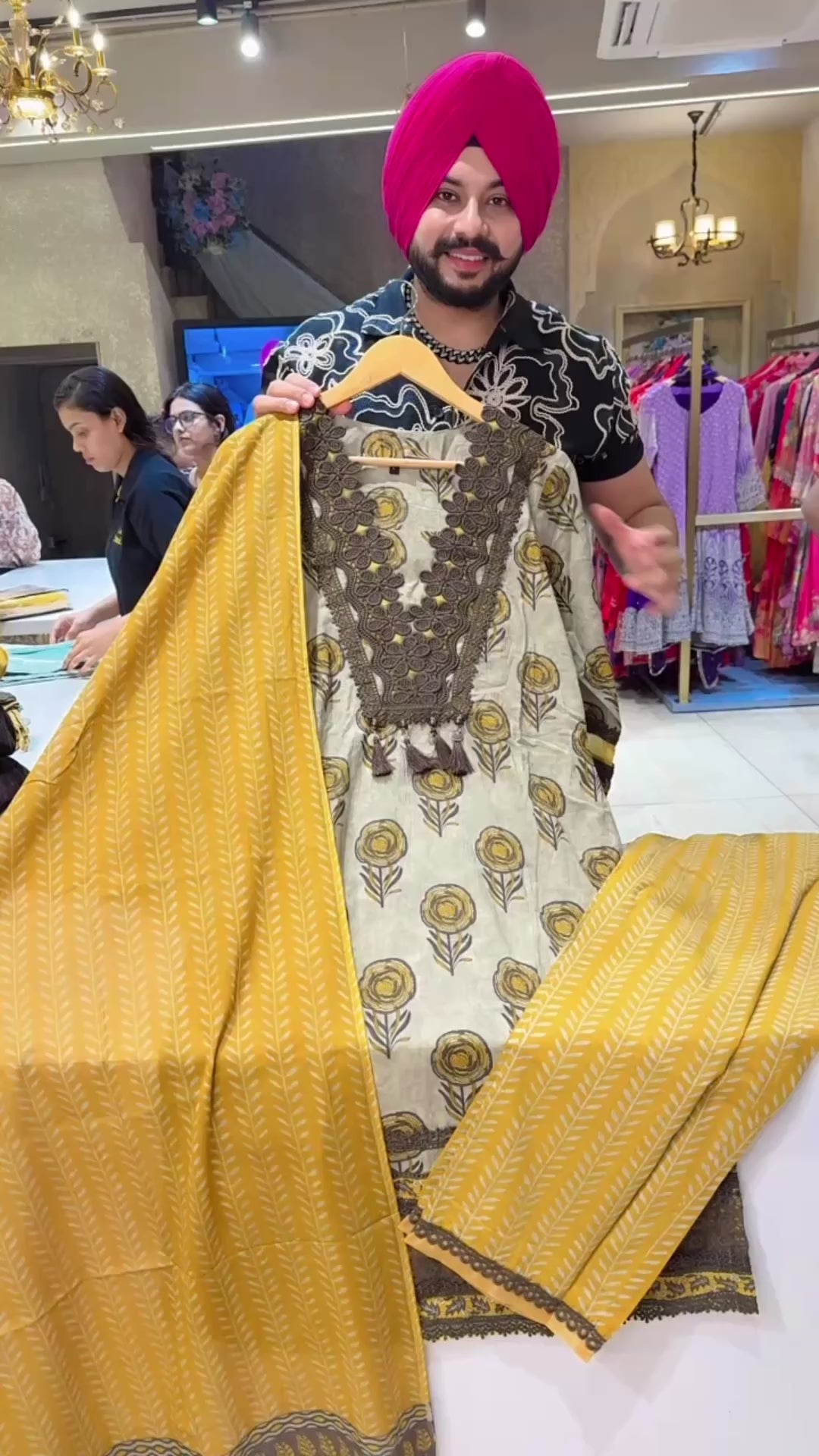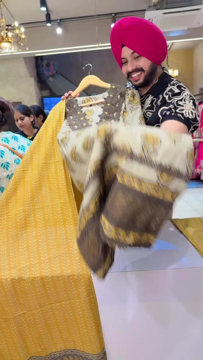Dark Beige & Mustard Cotton Heavy Crochet Work Kashmiri Suit