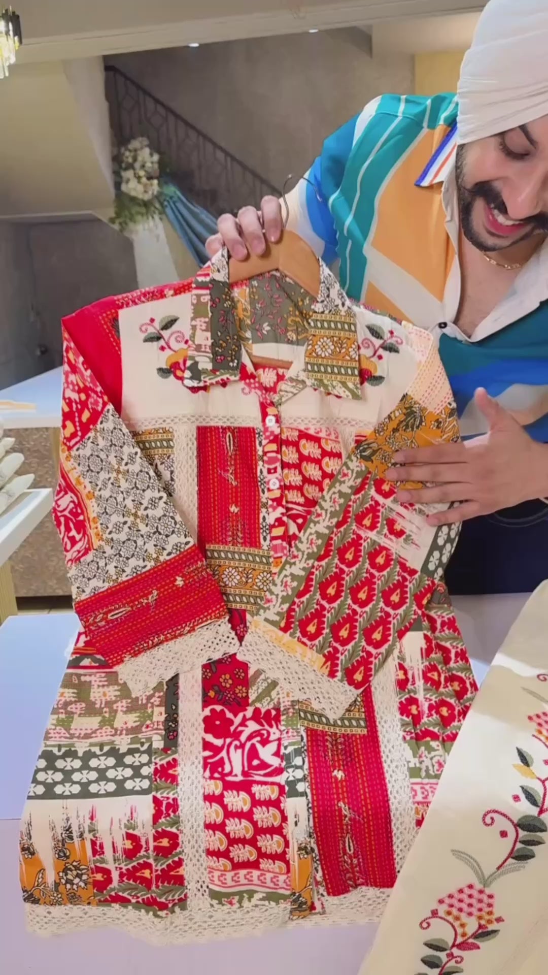 Pure Cotton Digital Print Collar Neck Coord set with Beautiful Embroidery Work Plazo